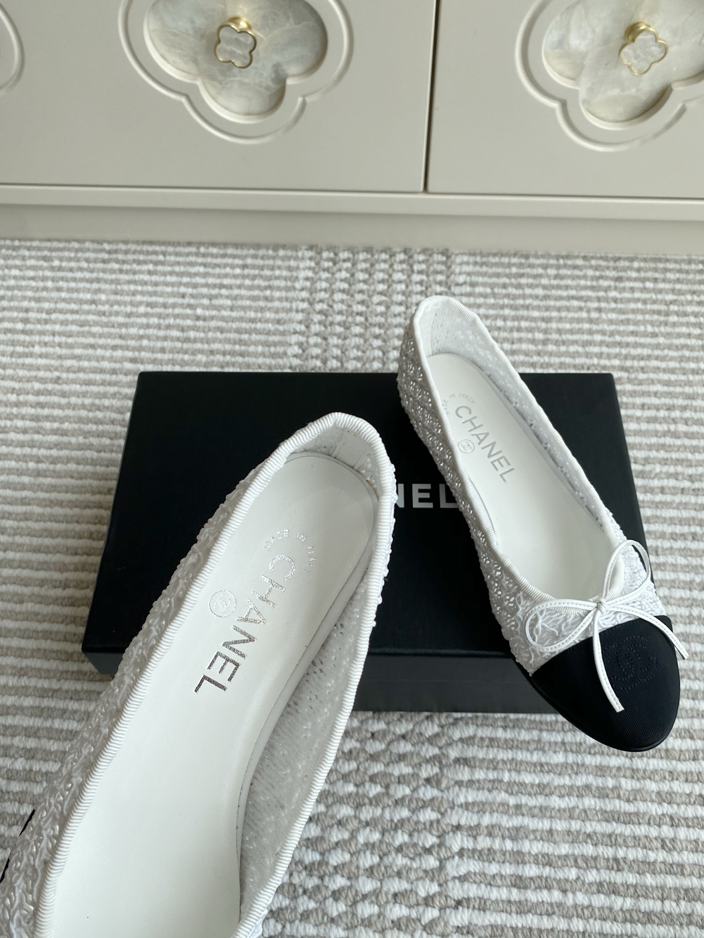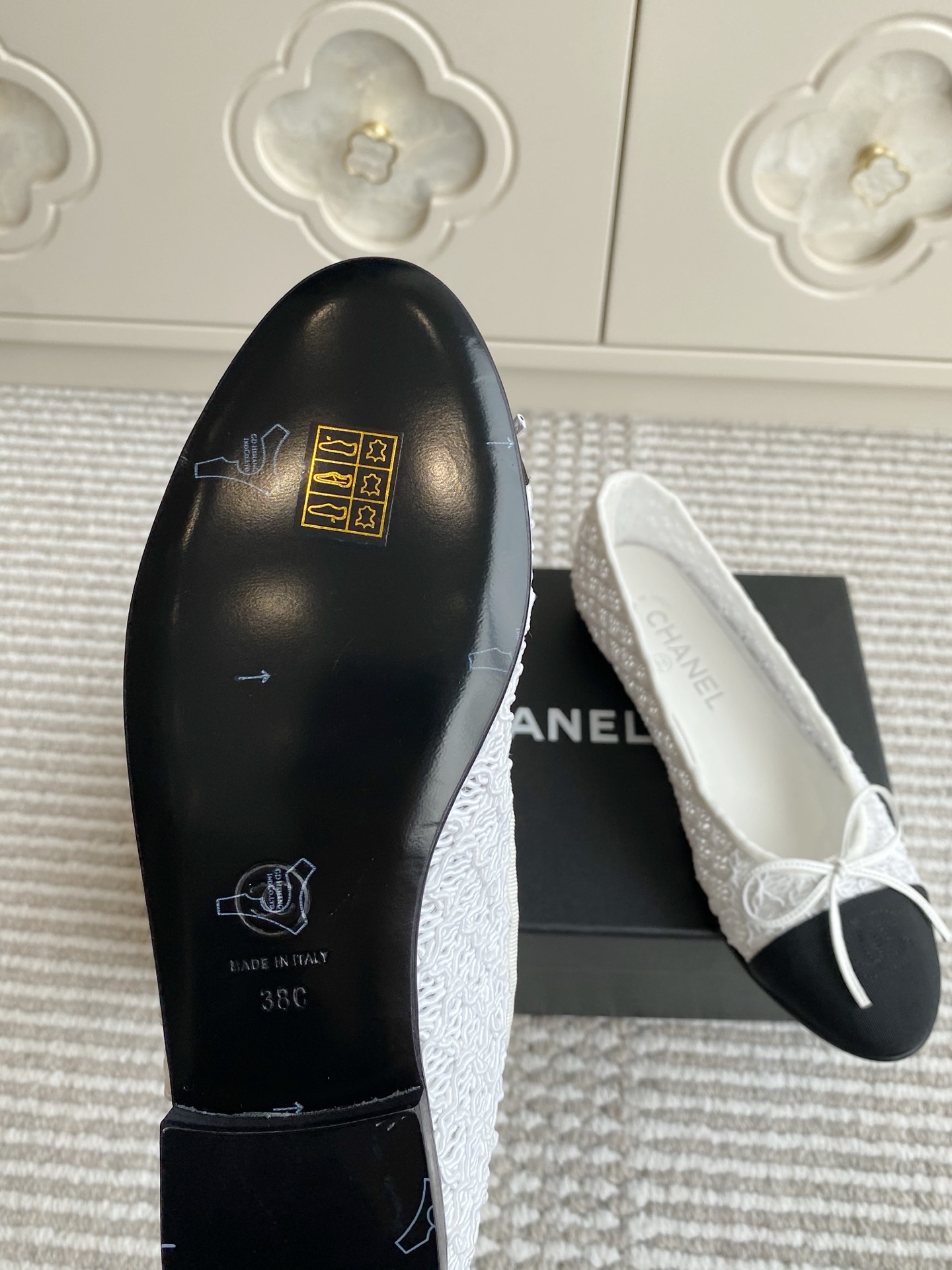 这款鞋子是AAAAA 1:1 质量 (非常棒). 使用了和原版一模一样的材料. 商标部分也保持了和香奈儿/Chanel一样. 图片拍摄是实物鞋子拍摄, 您所收到的实物保证和我们图片一模一样.