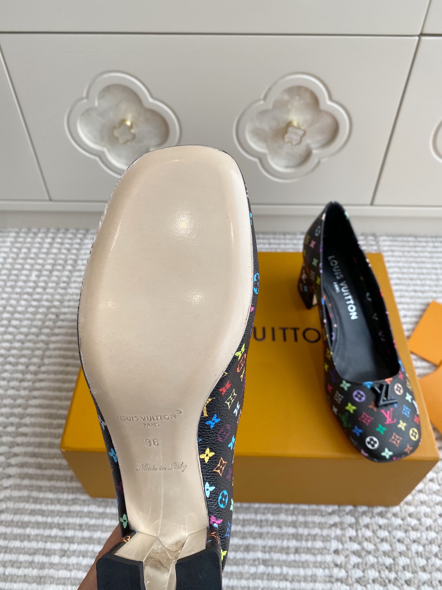 这款鞋子是AAAAA 1:1 质量 (非常棒). 使用了和原版一模一样的材料. 商标部分也保持了和路易威登/Louis Vuitton一样. 图片拍摄是实物鞋子拍摄, 您所收到的实物保证和我们图片一模一样.