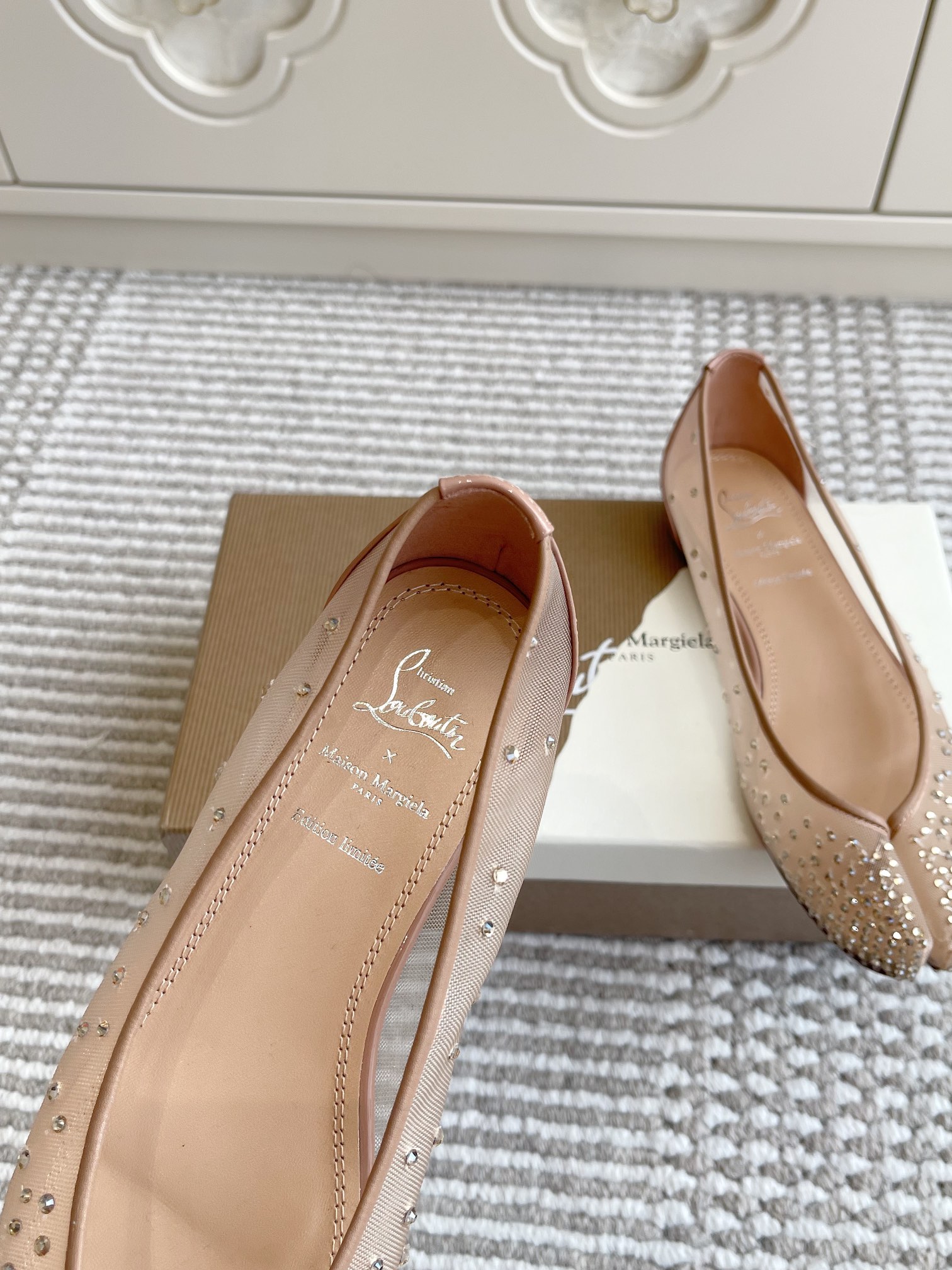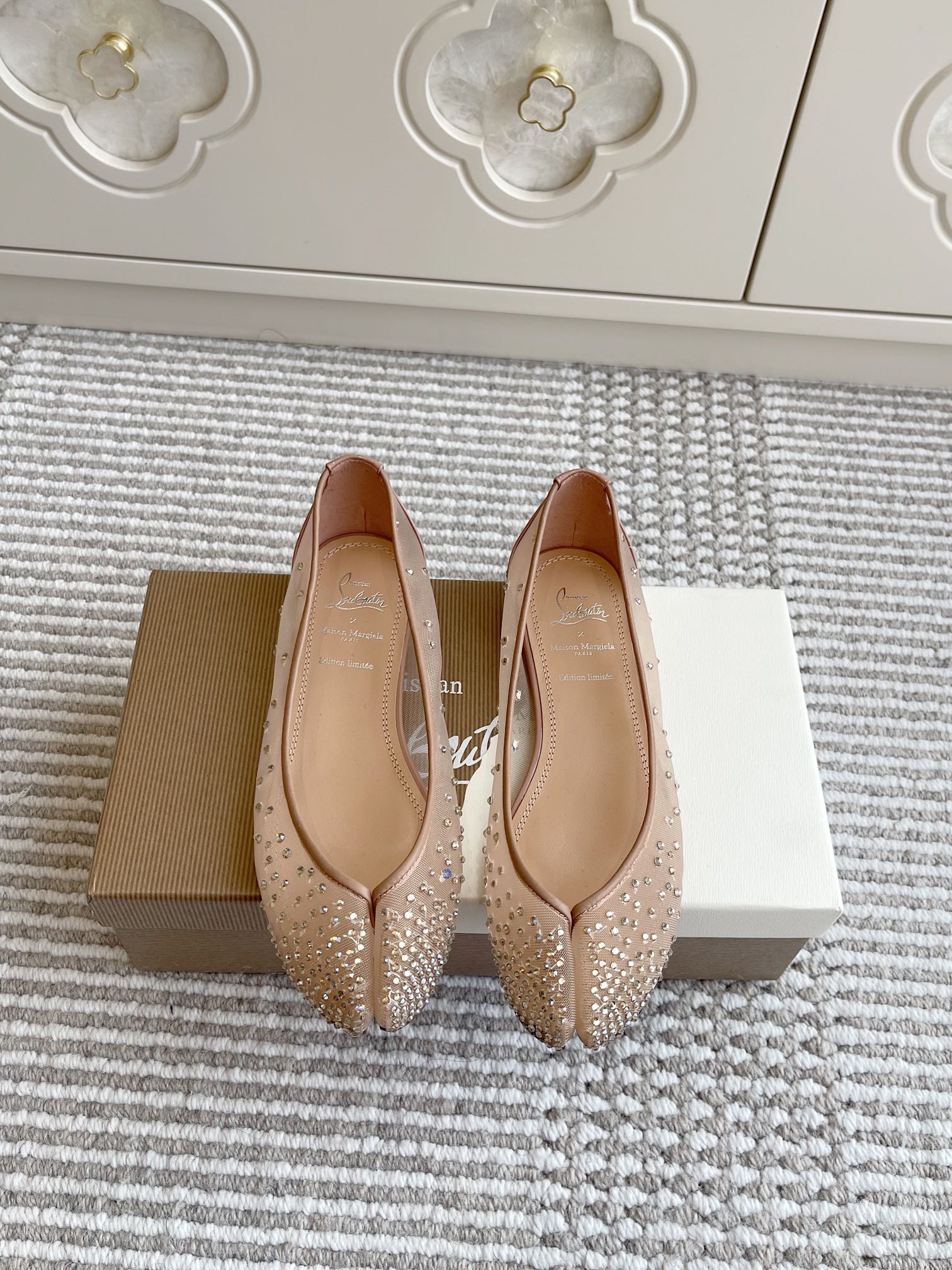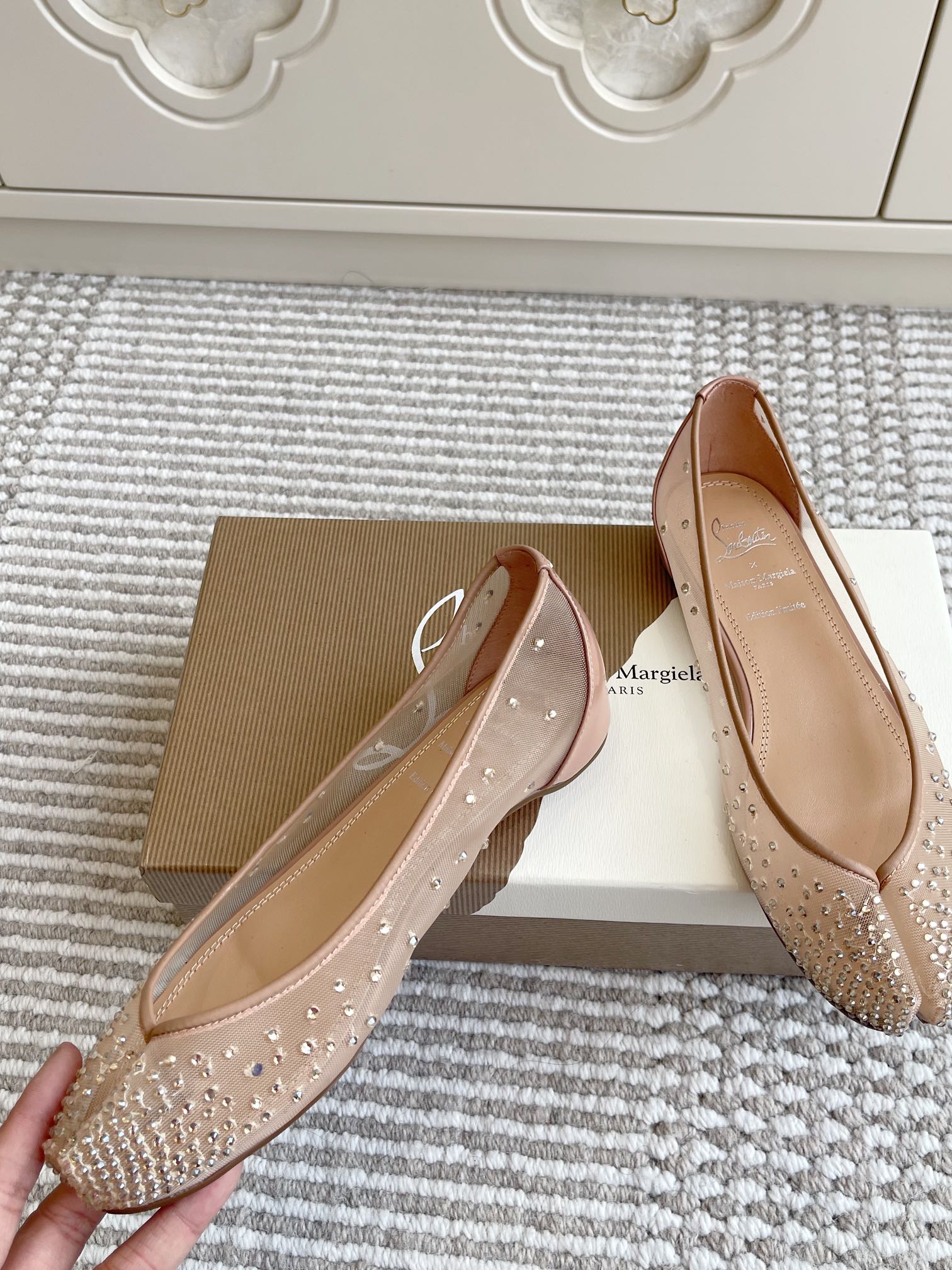 这款鞋子是AAAAA 1:1 质量 (非常棒). 使用了和原版一模一样的材料. 商标部分也保持了和克里斯提·鲁布托/Christian Louboutin一样. 图片拍摄是实物鞋子拍摄, 您所收到的实物保证和我们图片一模一样.