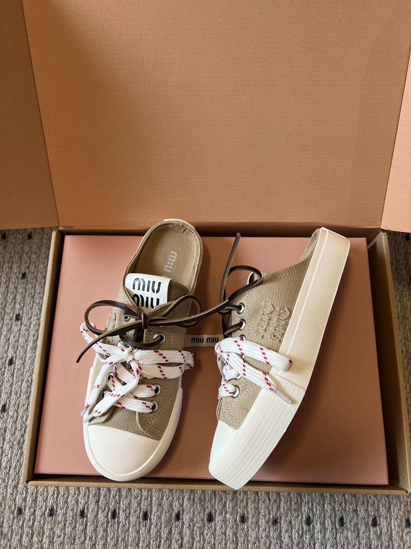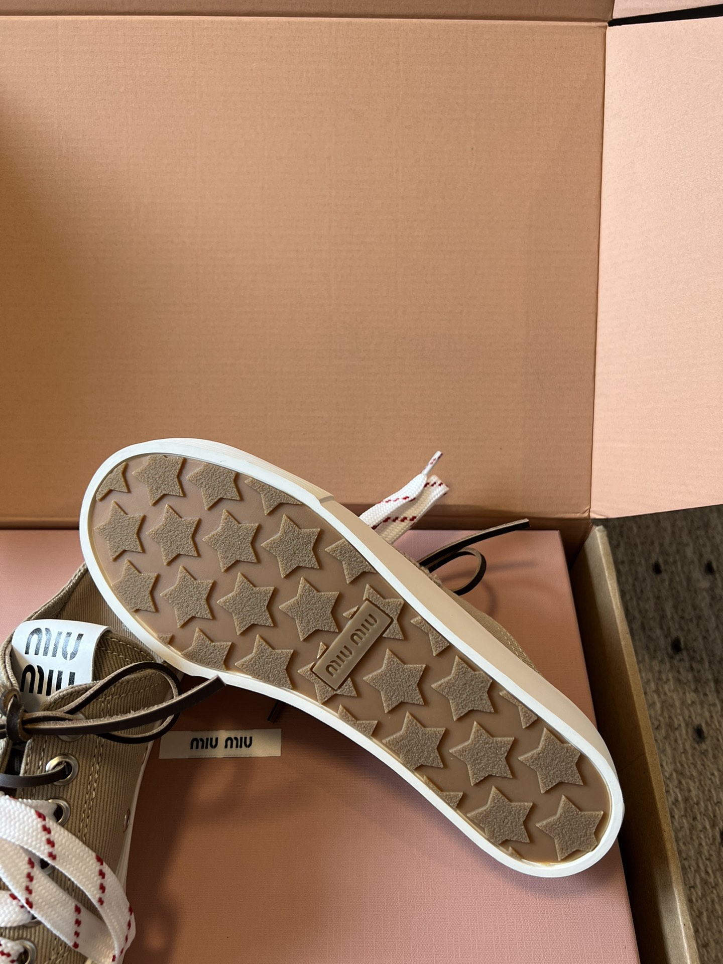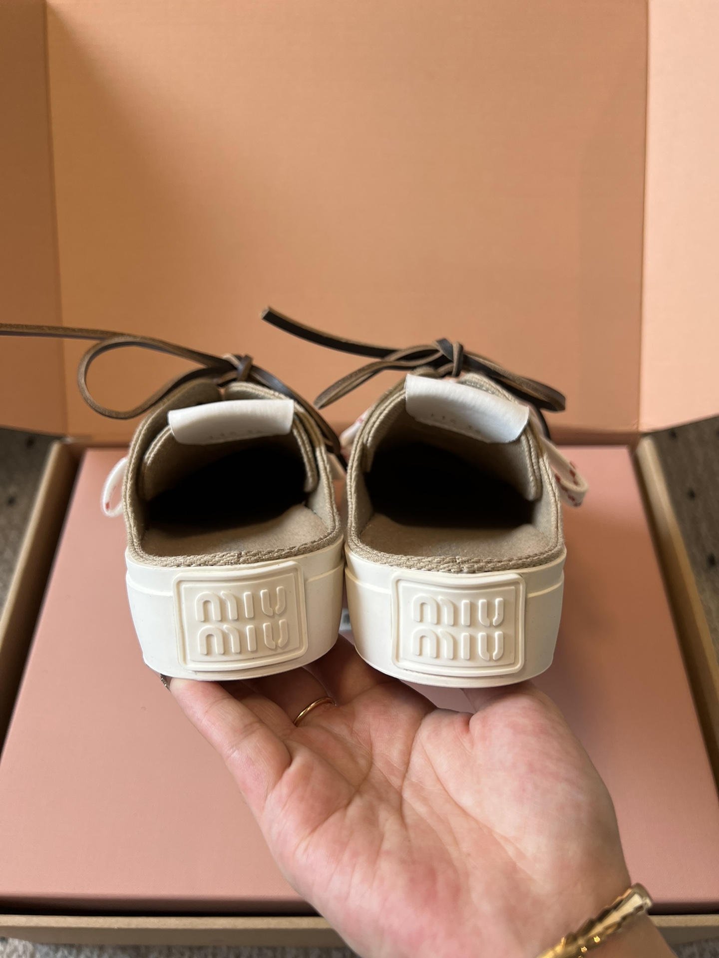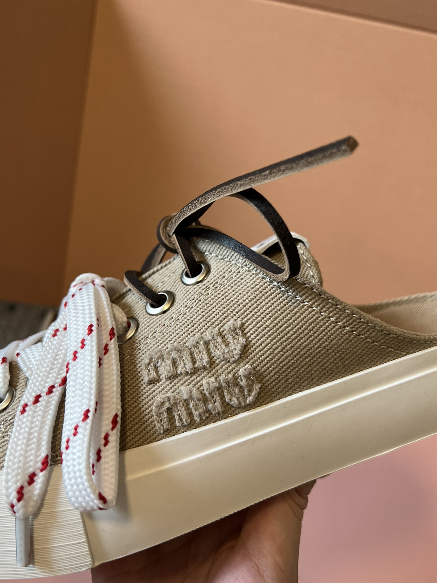 这款鞋子是AAAAA 1:1 质量 (非常棒). 使用了和原版一模一样的材料. 商标部分也保持了和缪缪/Miu Miu一样. 图片拍摄是实物鞋子拍摄, 您所收到的实物保证和我们图片一模一样.