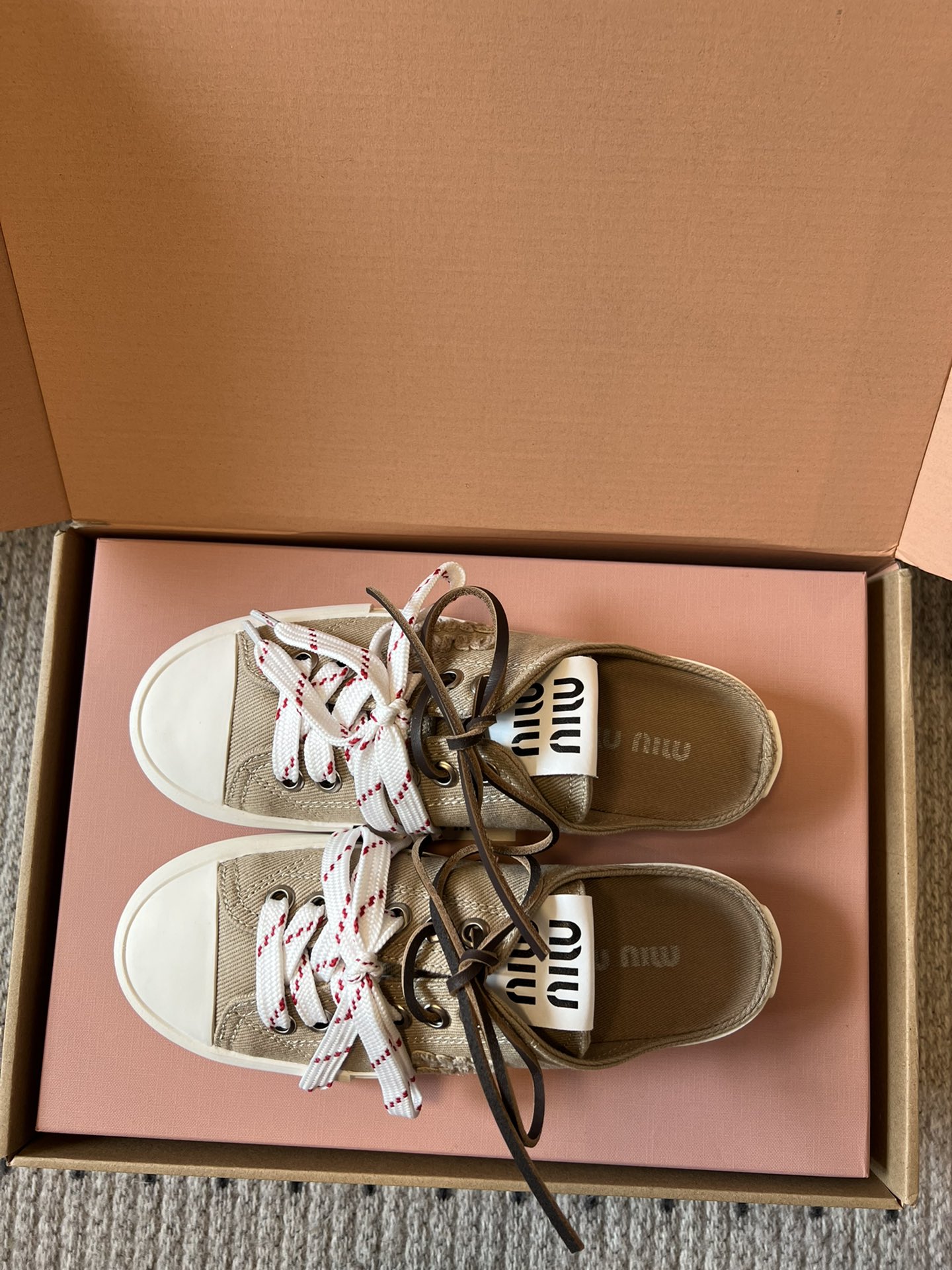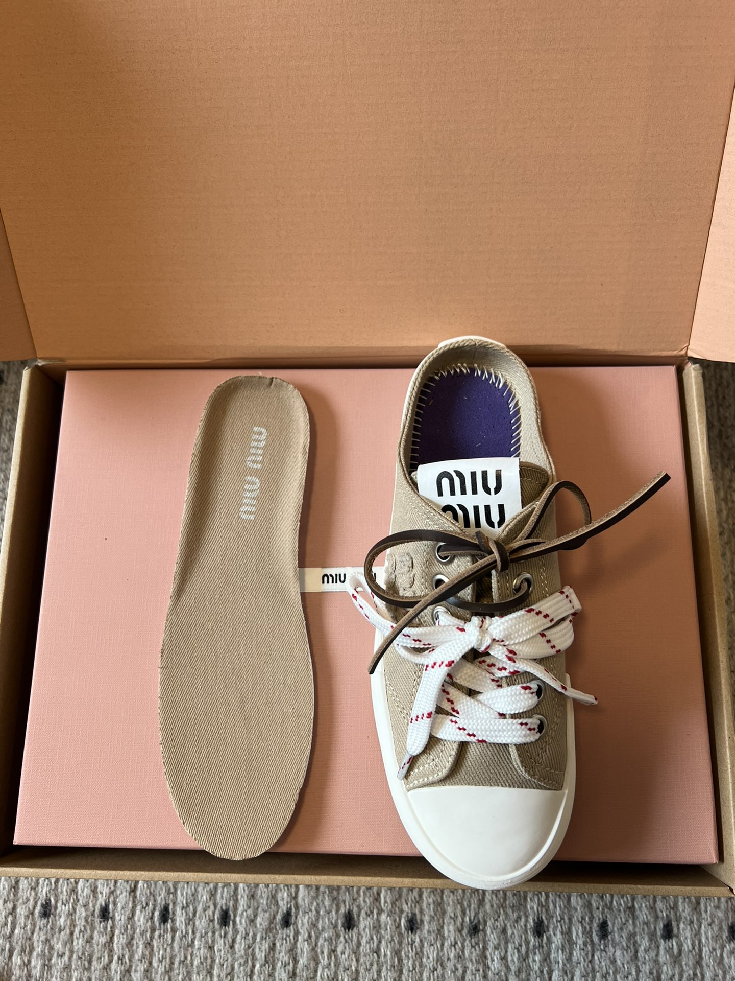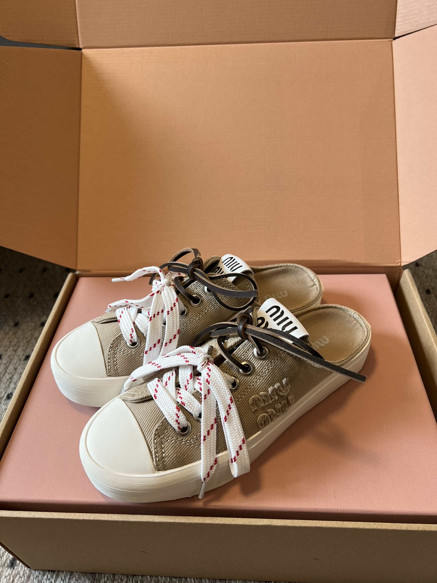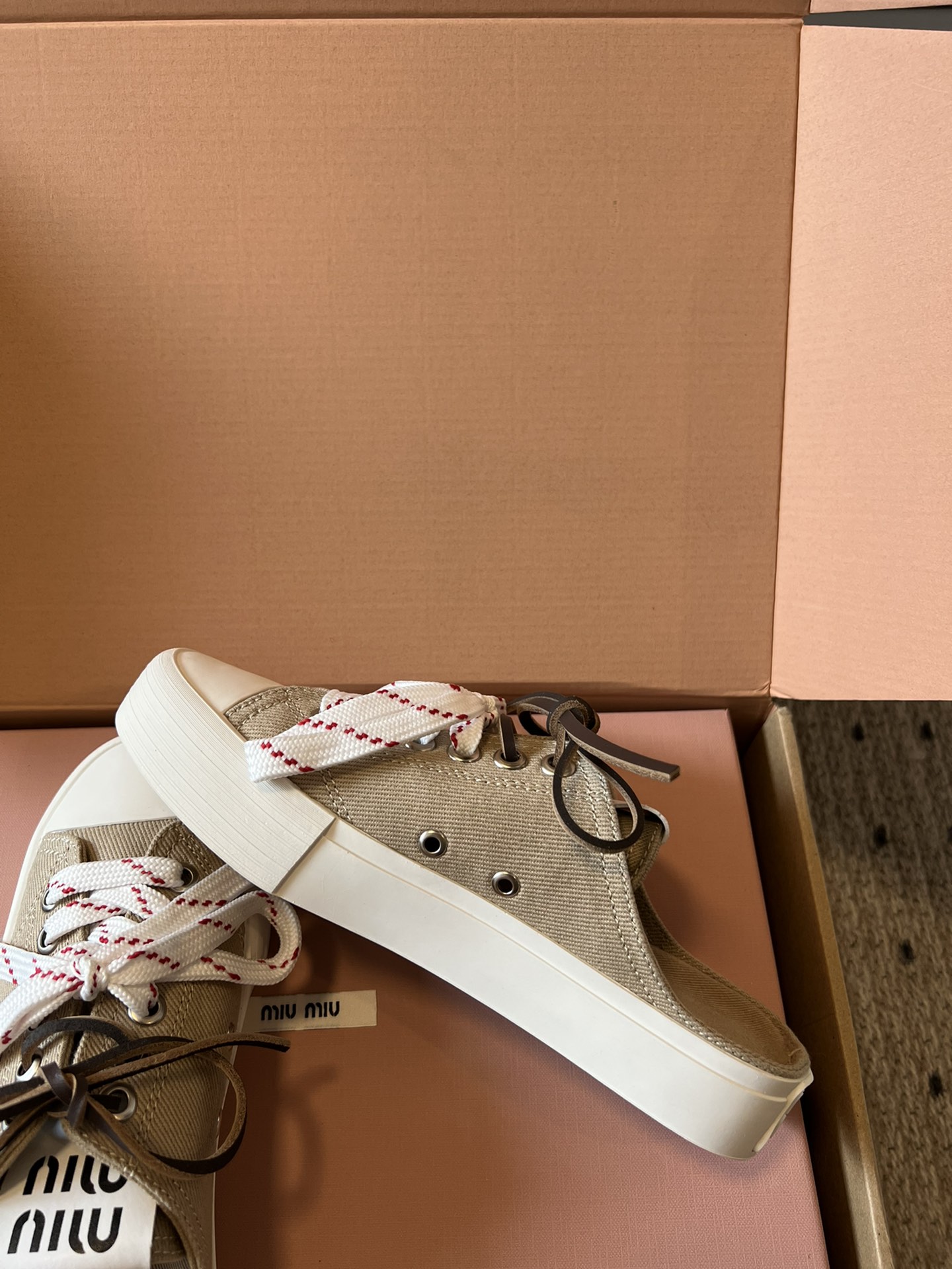 这款鞋子是AAAAA 1:1 质量 (非常棒). 使用了和原版一模一样的材料. 商标部分也保持了和缪缪/Miu Miu一样. 图片拍摄是实物鞋子拍摄, 您所收到的实物保证和我们图片一模一样.
