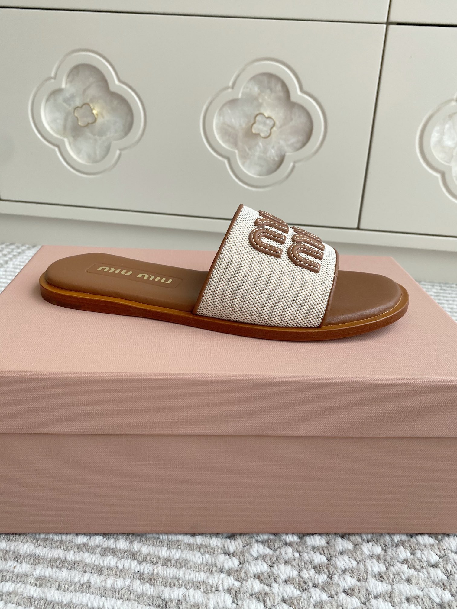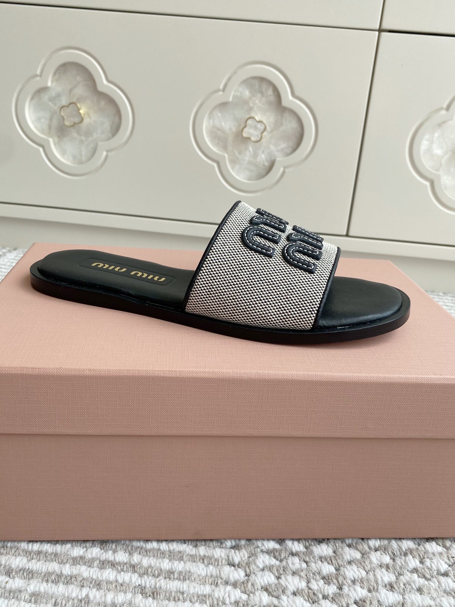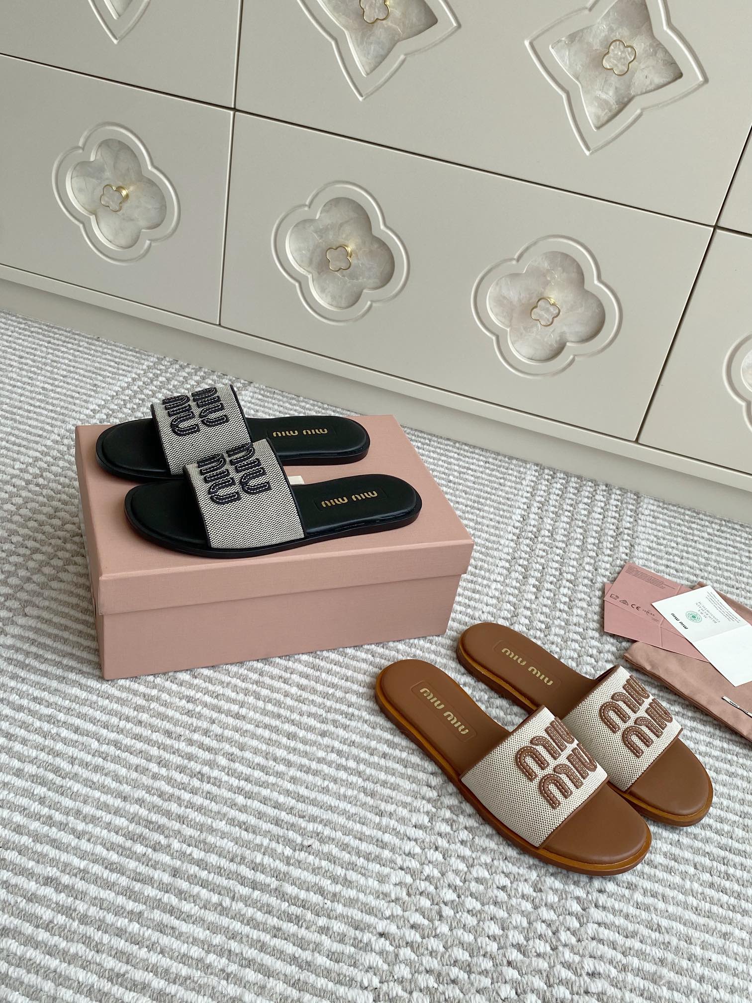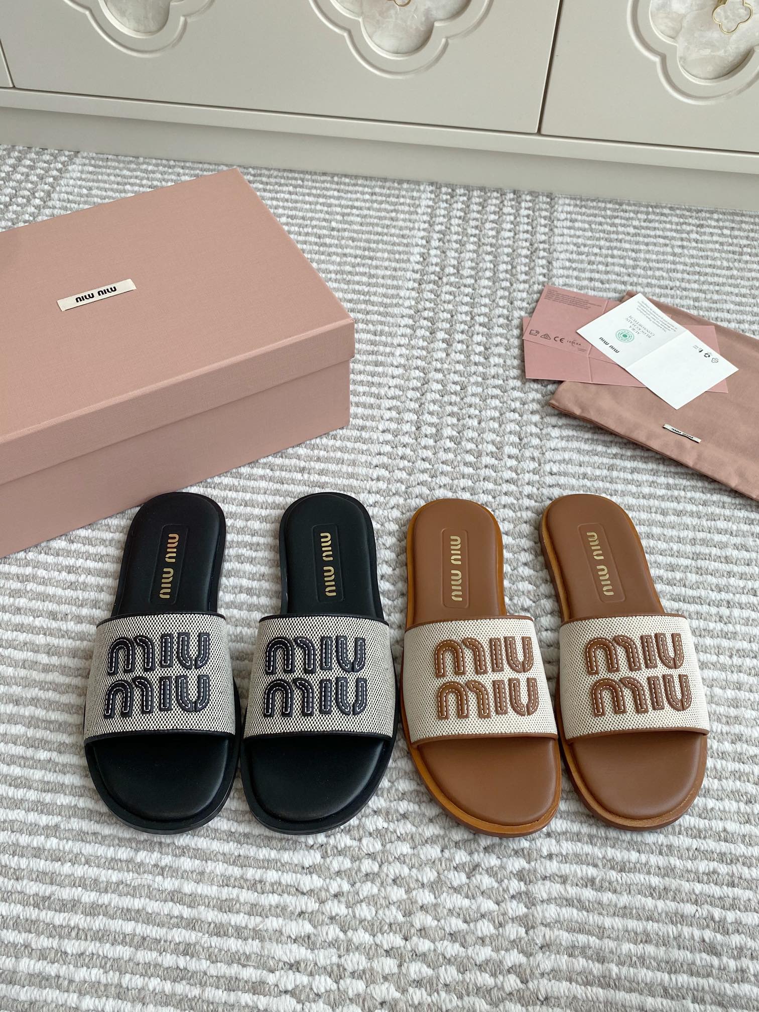 这款鞋子是AAAAA 1:1 质量 (非常棒). 使用了和原版一模一样的材料. 商标部分也保持了和缪缪/Miu Miu一样. 图片拍摄是实物鞋子拍摄, 您所收到的实物保证和我们图片一模一样.