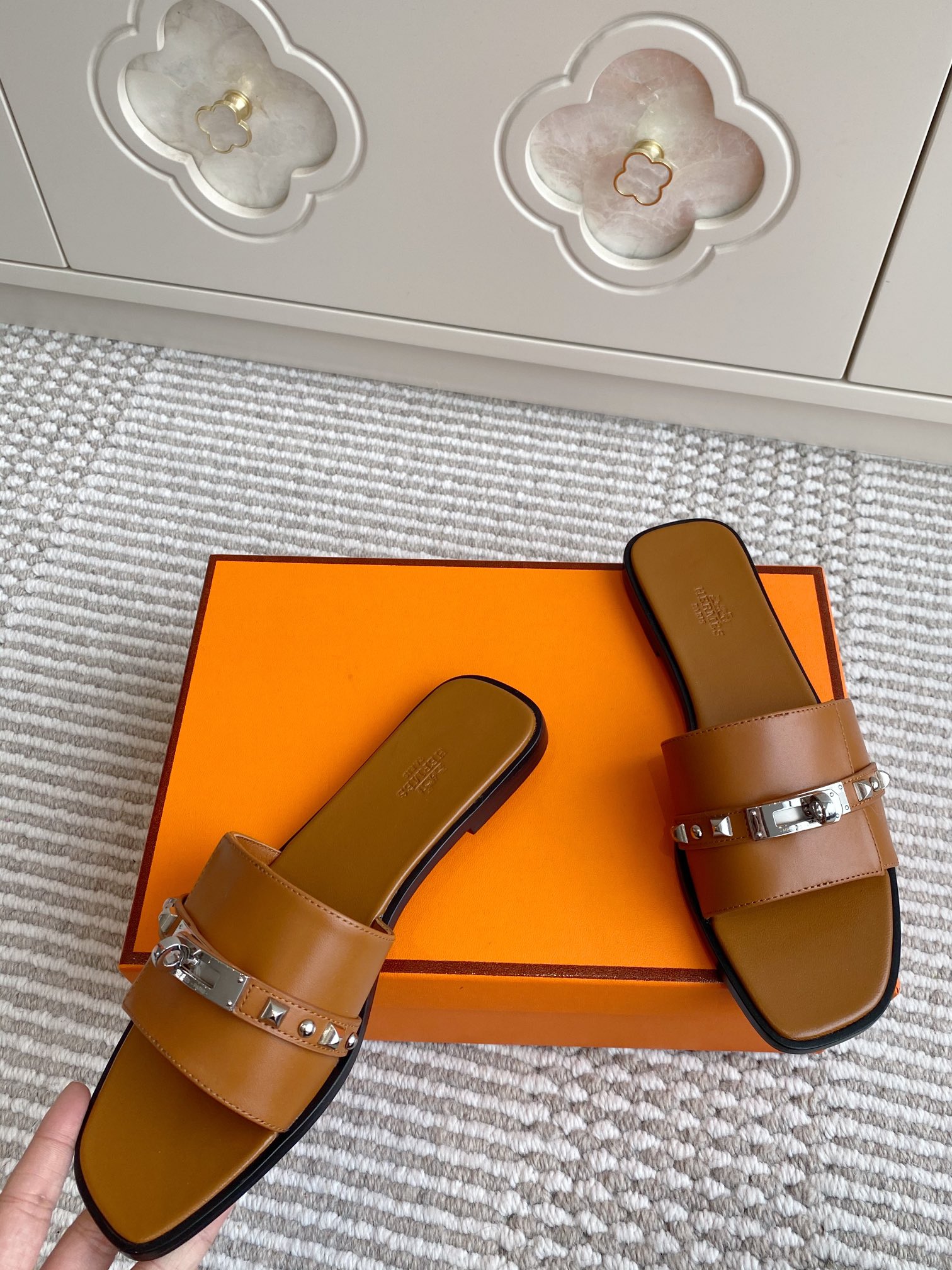 这款鞋子是AAAAA 1:1 质量 (非常棒). 使用了和原版一模一样的材料. 商标部分也保持了和爱马仕/Hermes一样. 图片拍摄是实物鞋子拍摄, 您所收到的实物保证和我们图片一模一样.