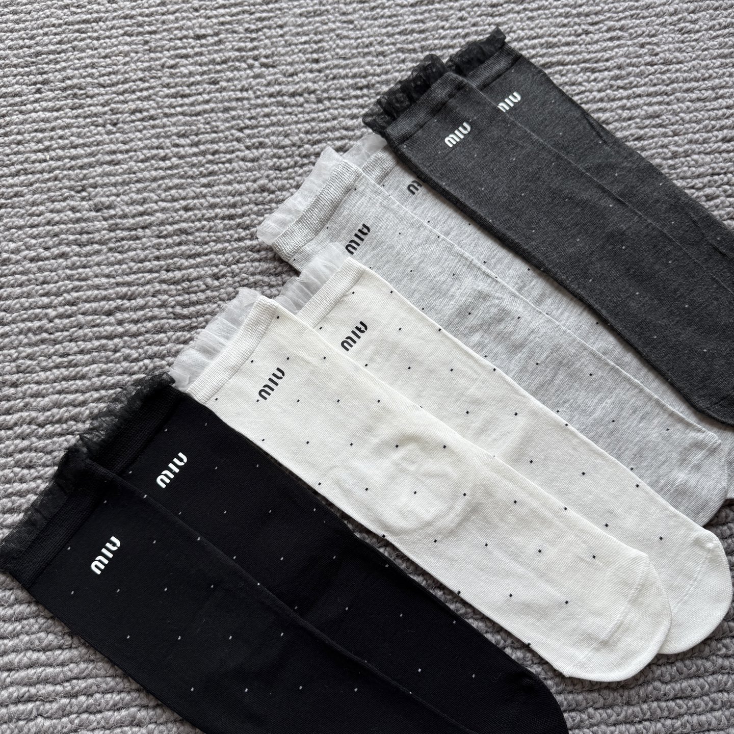 这款sock是AAAAA 1:1 质量 (非常棒). 使用了和原版一模一样的材料. 商标部分也保持了和缪缪/Miu Miu一样. 图片拍摄是实物sock拍摄, 您所收到的实物保证和我们图片一模一样.