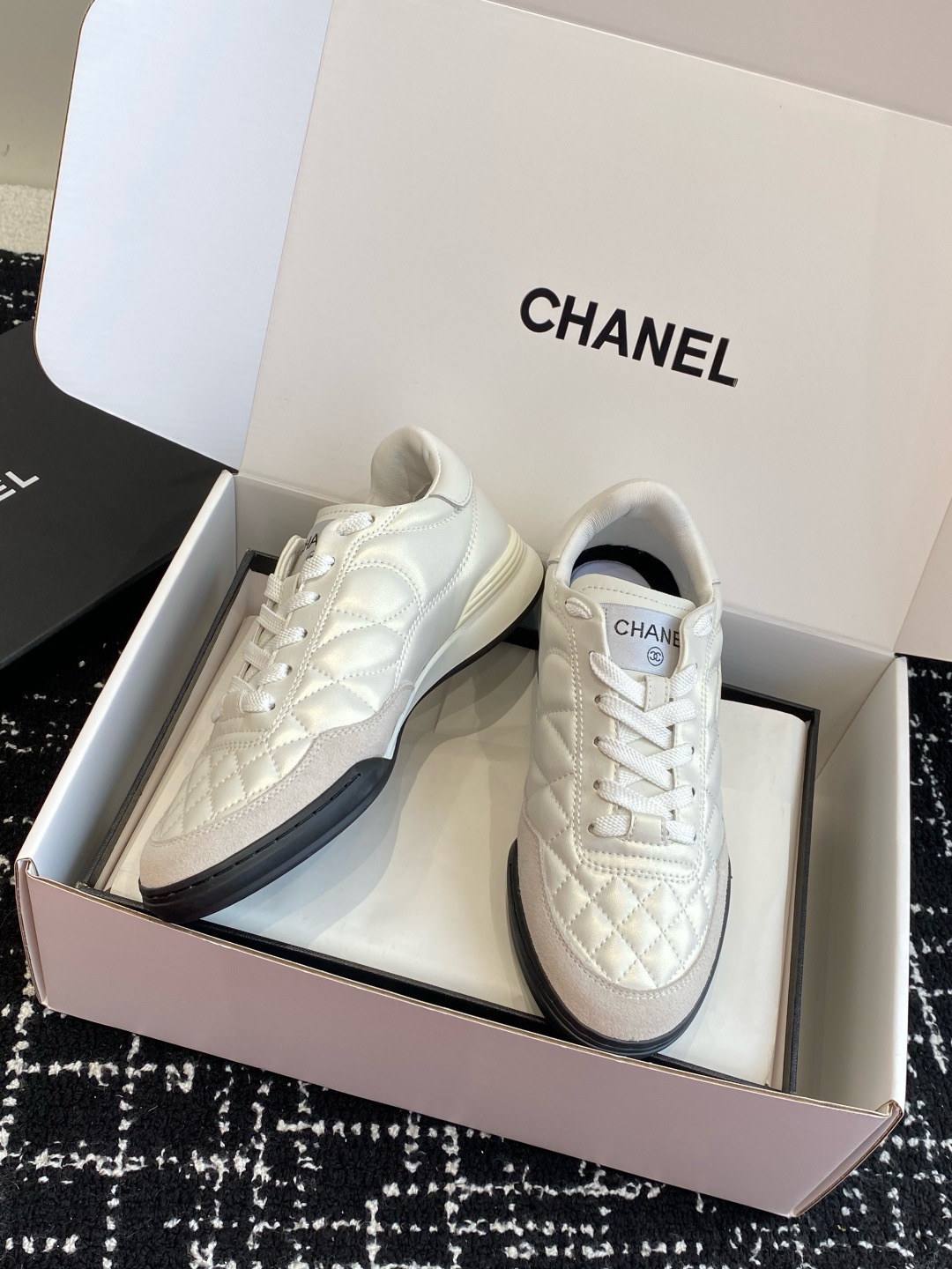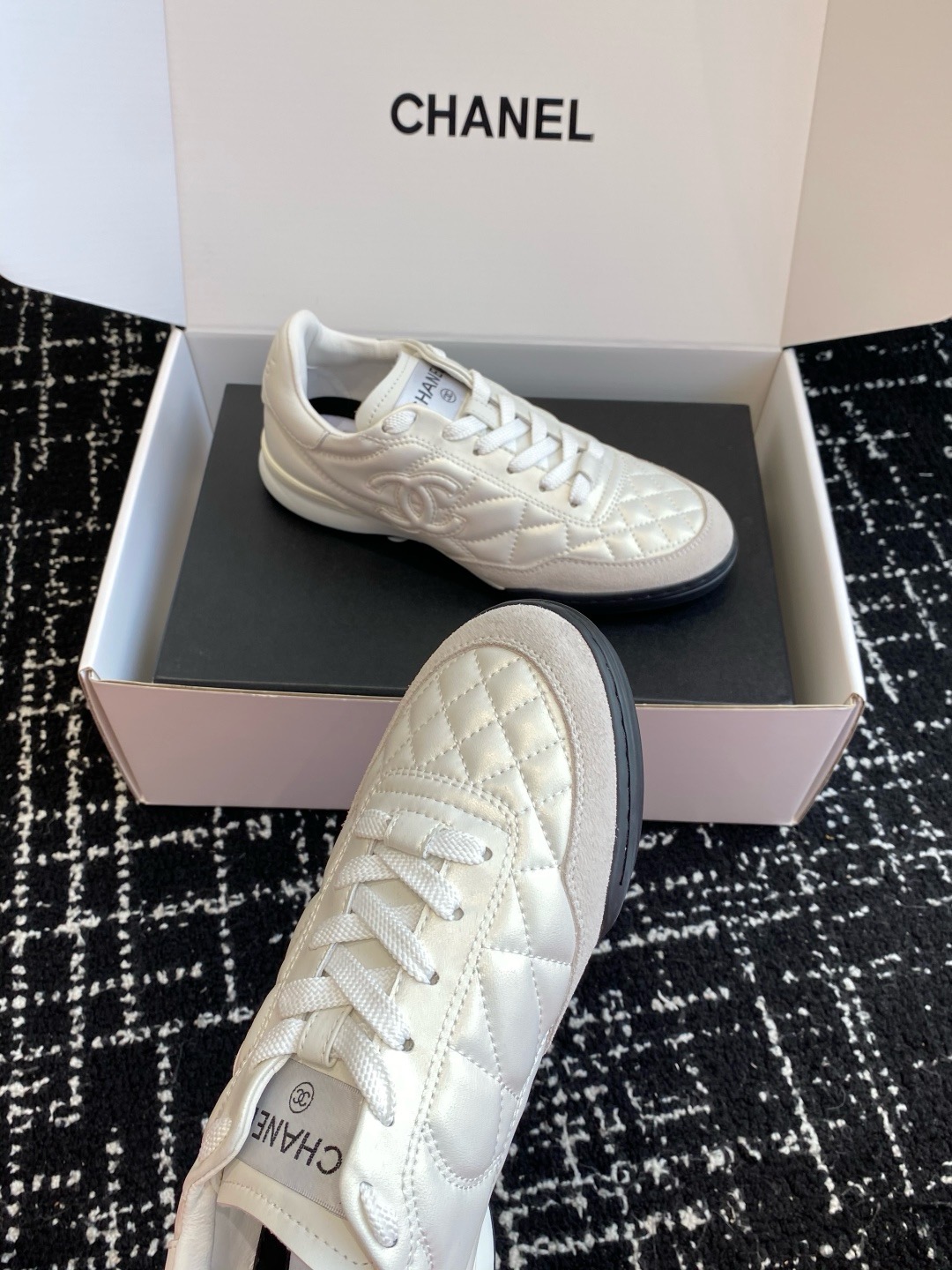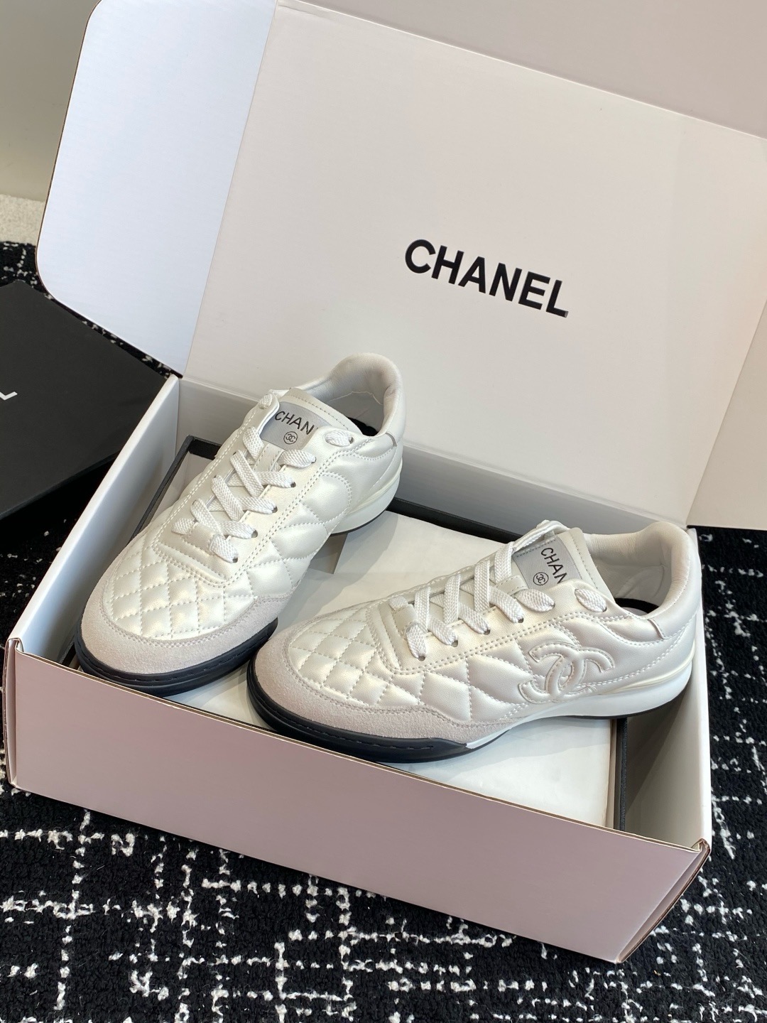 这款鞋子是AAAAA 1:1 质量 (非常棒). 使用了和原版一模一样的材料. 商标部分也保持了和香奈儿/Chanel一样. 图片拍摄是实物鞋子拍摄, 您所收到的实物保证和我们图片一模一样.