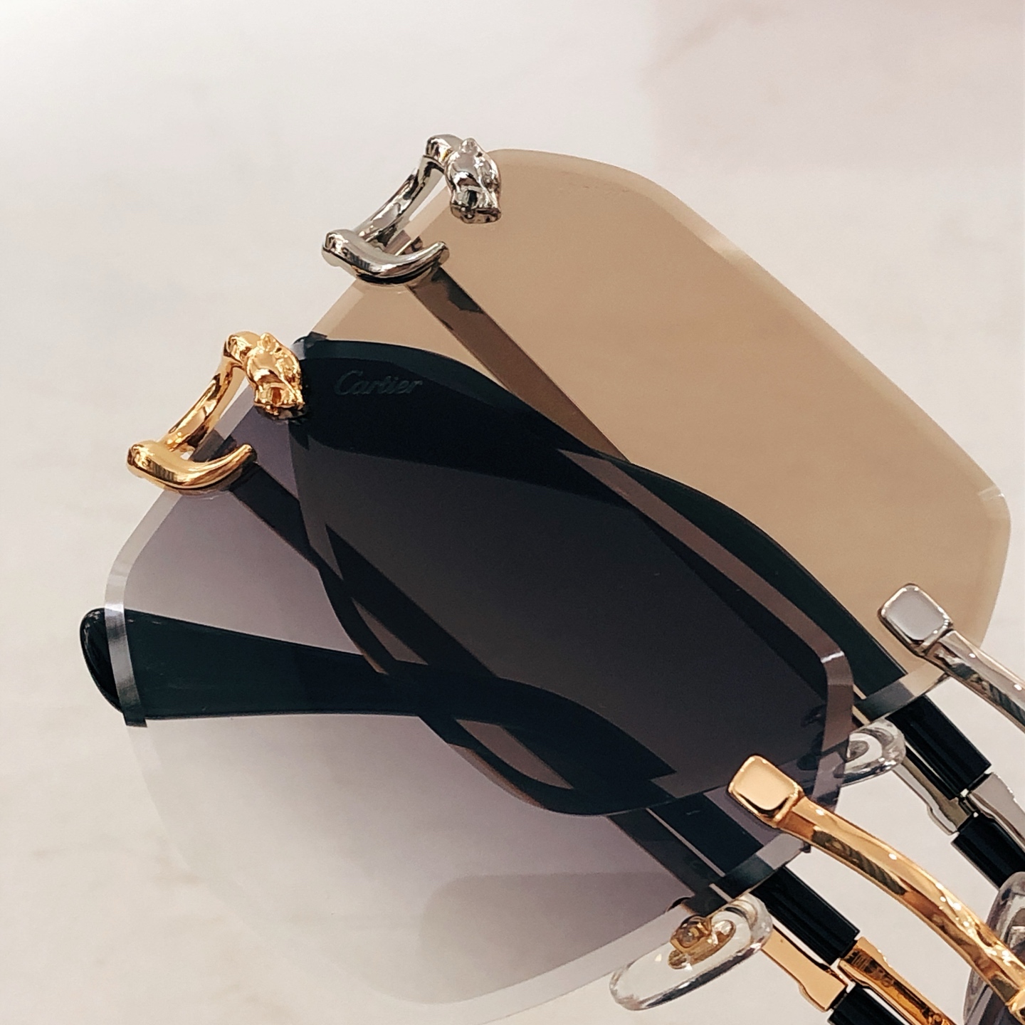 这款太阳眼镜是AAAAA 1:1 质量 (非常棒). 使用了和原版一模一样的材料. 商标部分也保持了和卡地亚/Cartier一样. 图片拍摄是实物太阳眼镜拍摄, 您所收到的实物保证和我们图片一模一样.