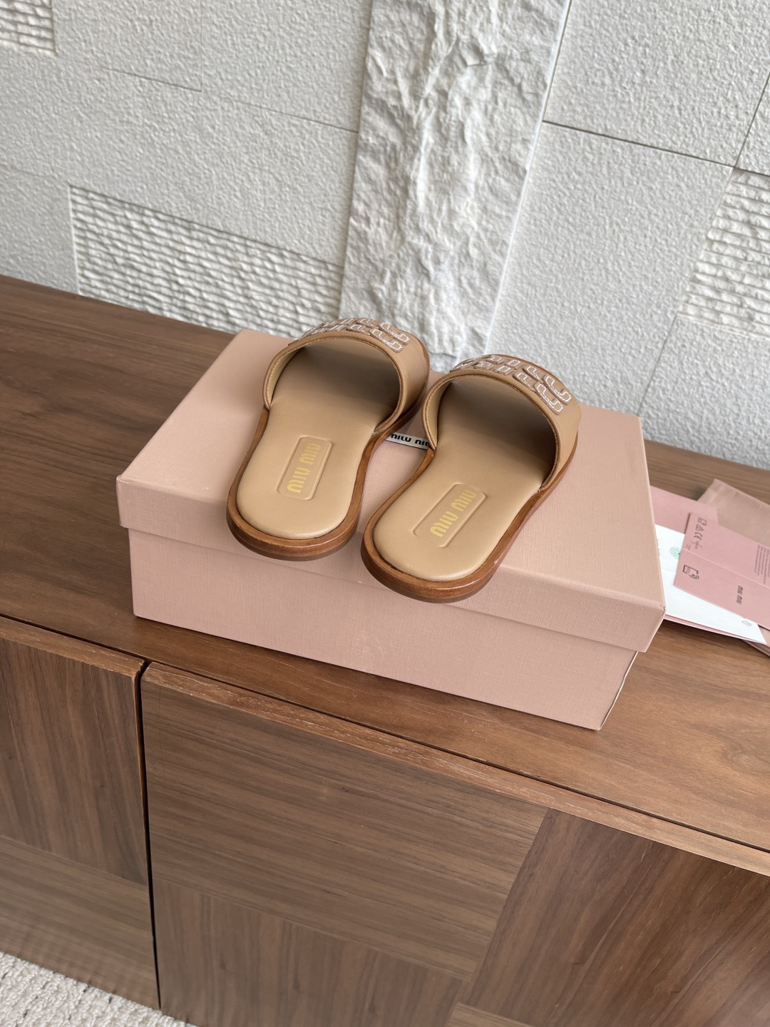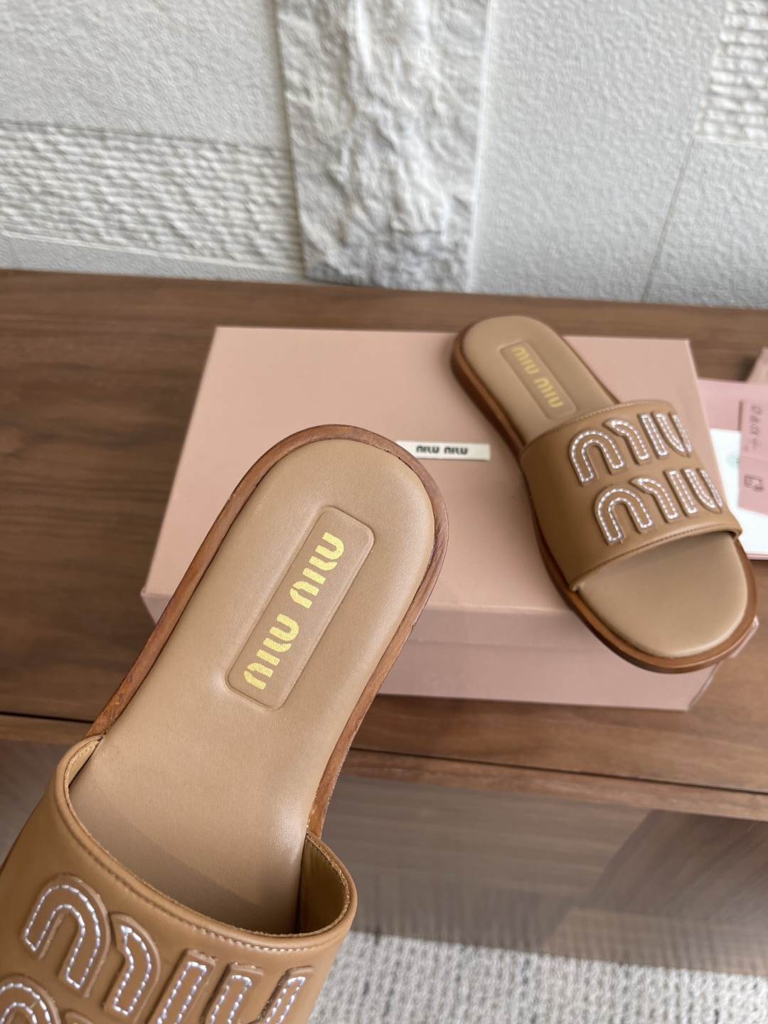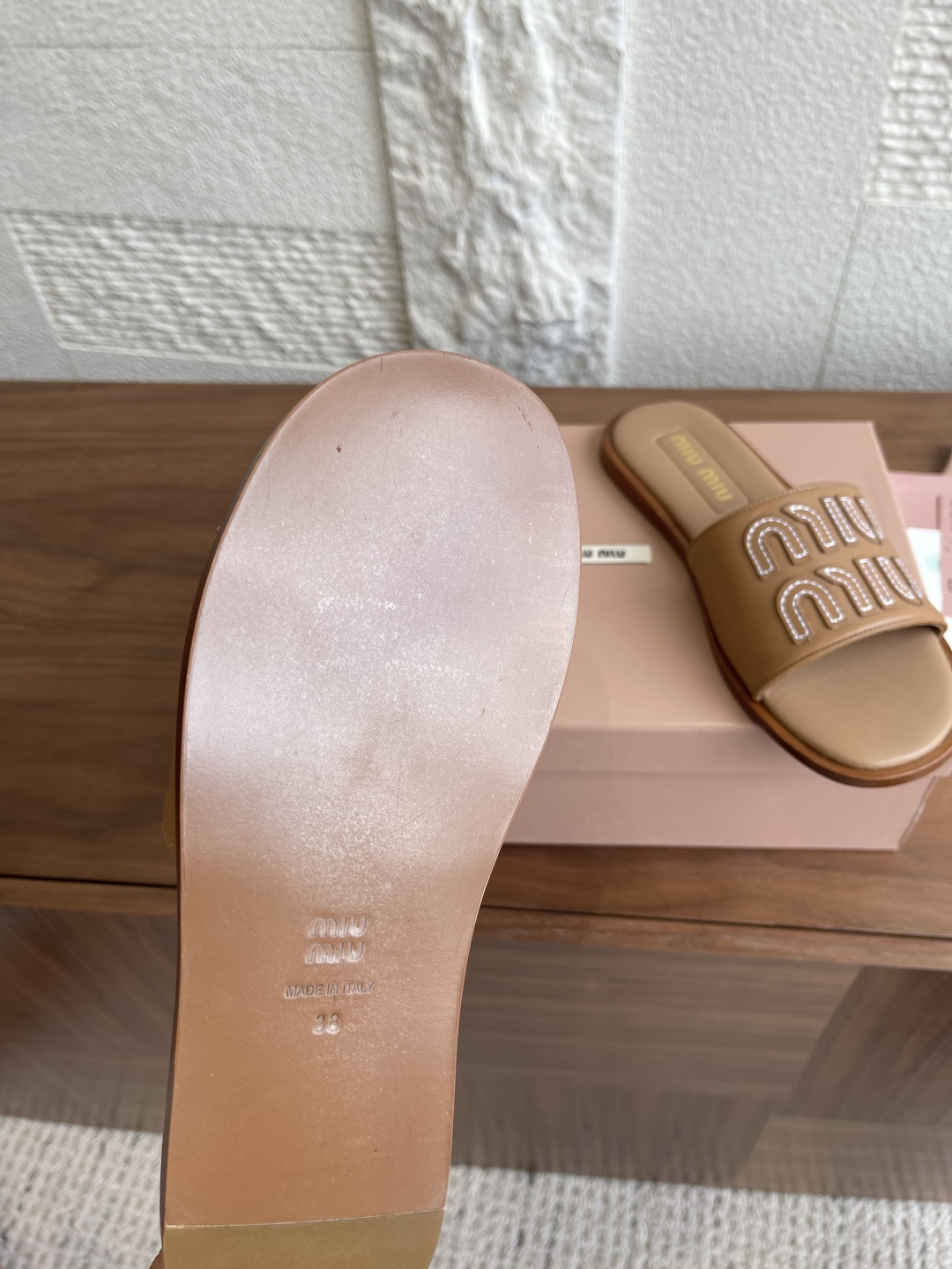 这款鞋子是AAAAA 1:1 质量 (非常棒). 使用了和原版一模一样的材料. 商标部分也保持了和缪缪/Miu Miu一样. 图片拍摄是实物鞋子拍摄, 您所收到的实物保证和我们图片一模一样.