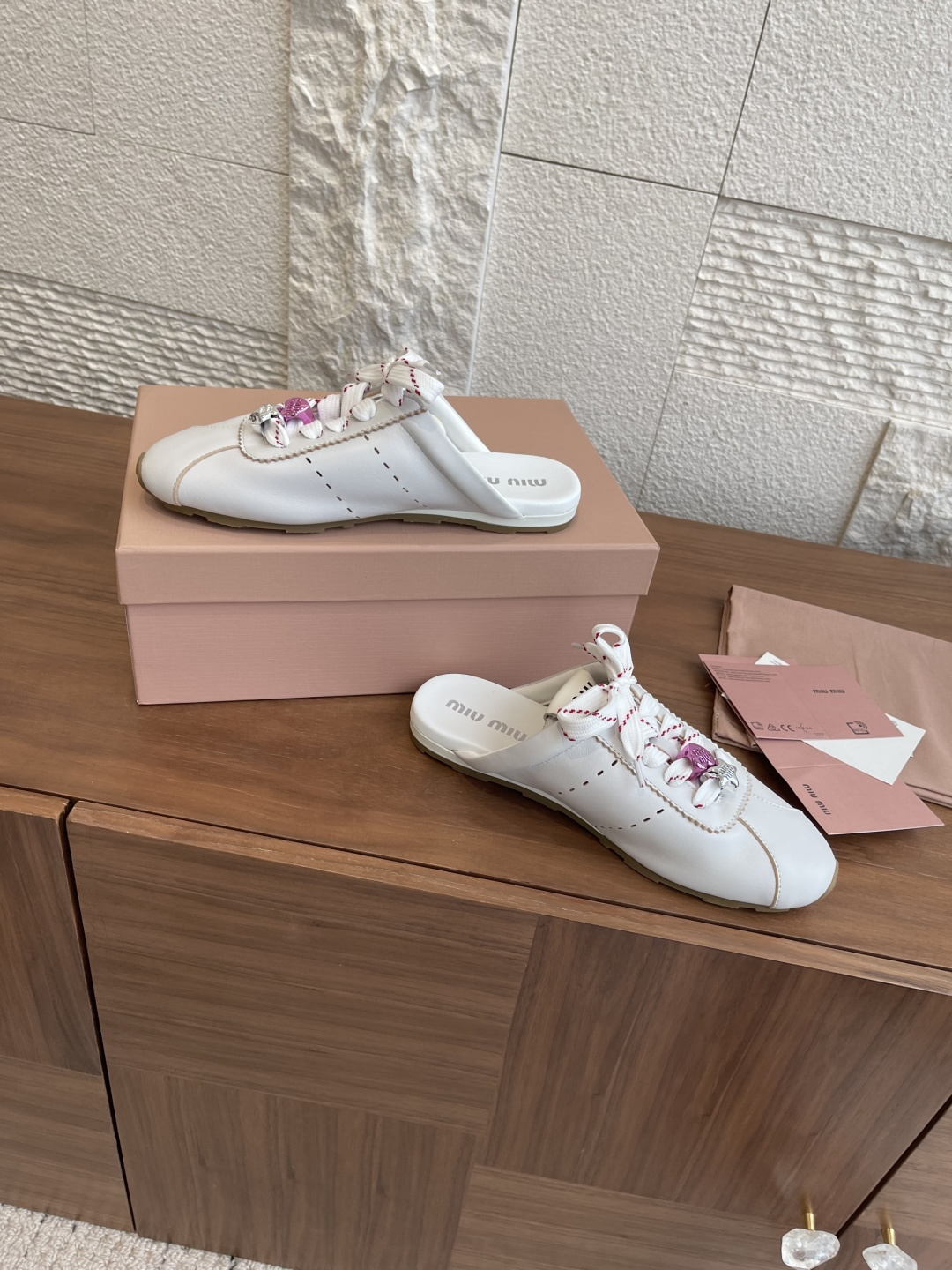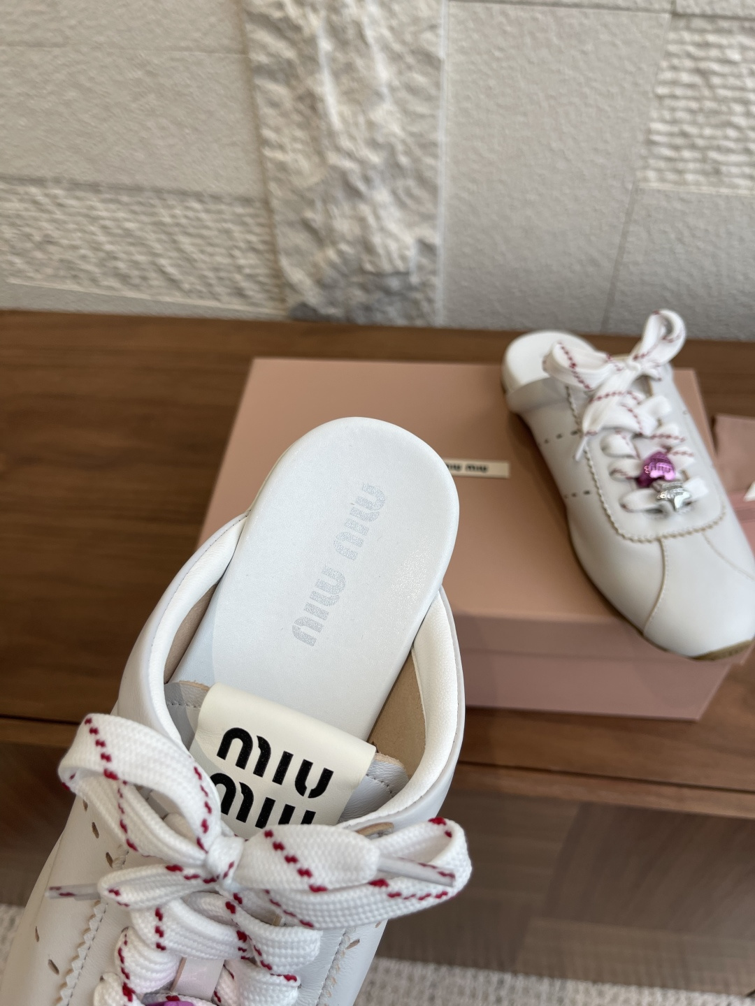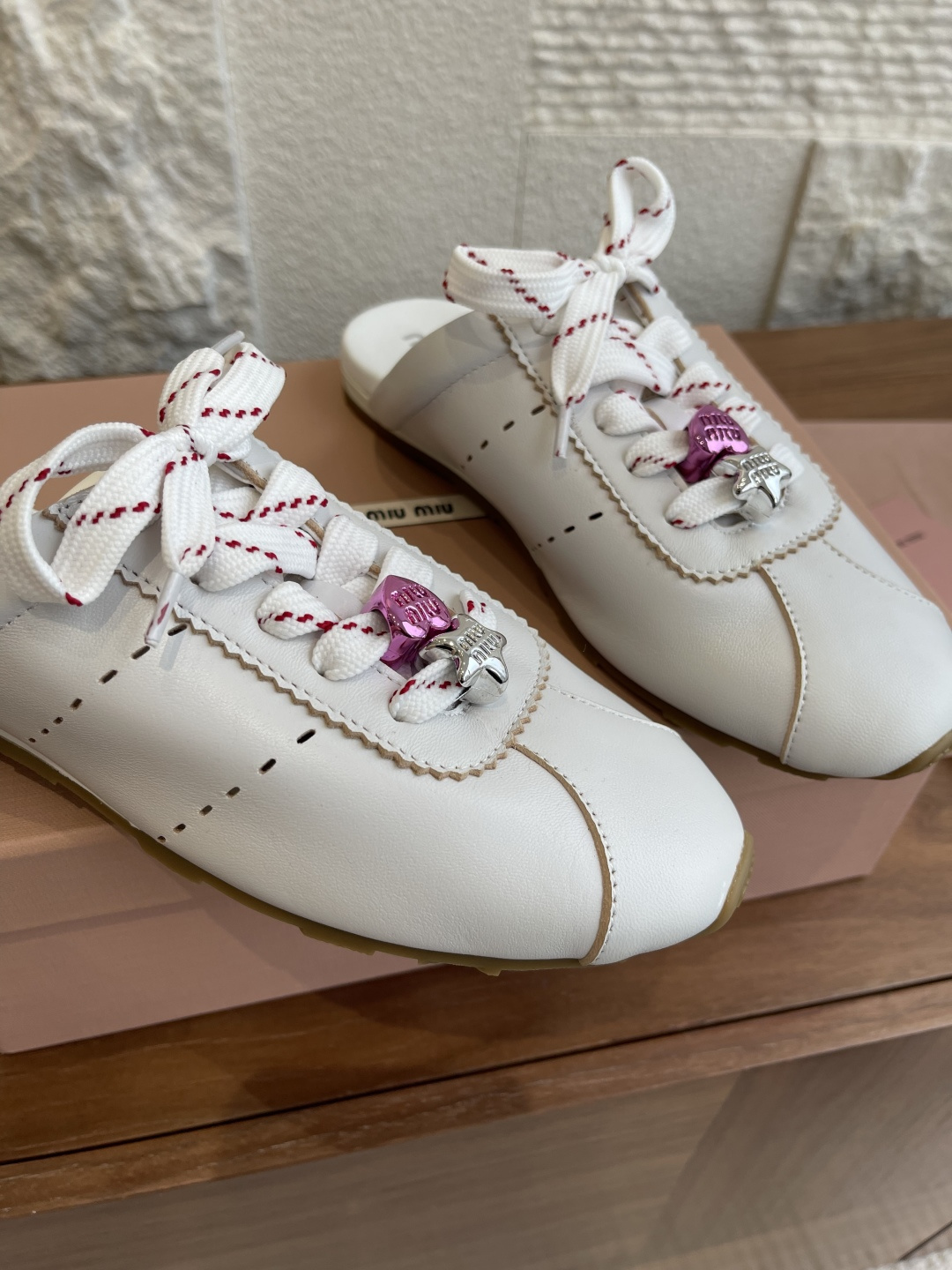 这款鞋子是AAAAA 1:1 质量 (非常棒). 使用了和原版一模一样的材料. 商标部分也保持了和缪缪/Miu Miu一样. 图片拍摄是实物鞋子拍摄, 您所收到的实物保证和我们图片一模一样.