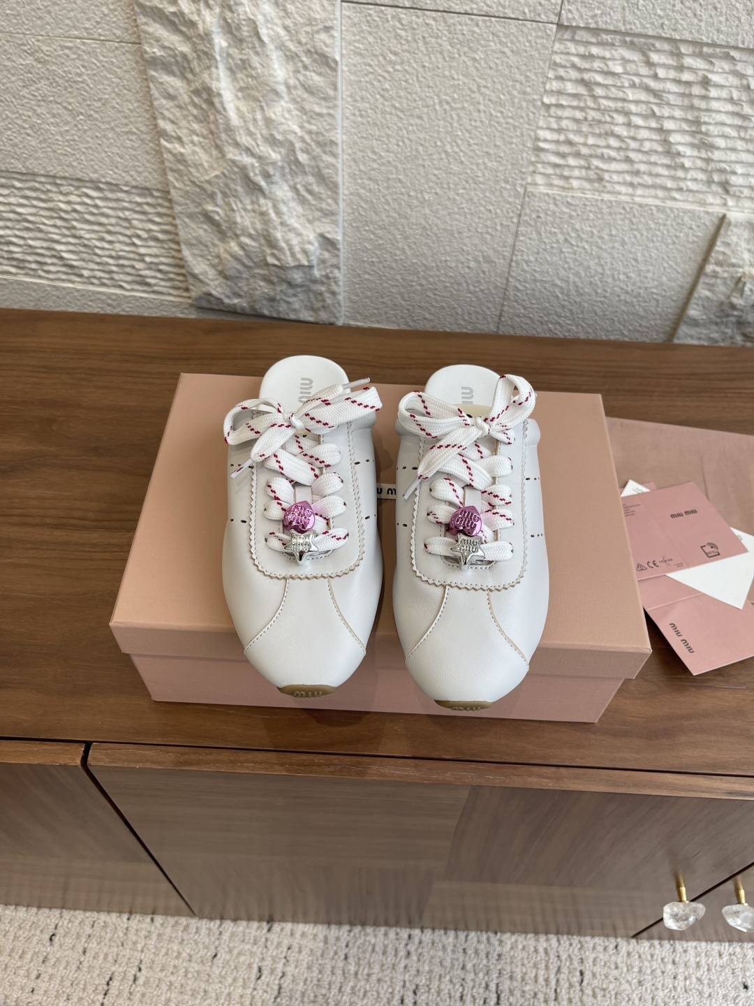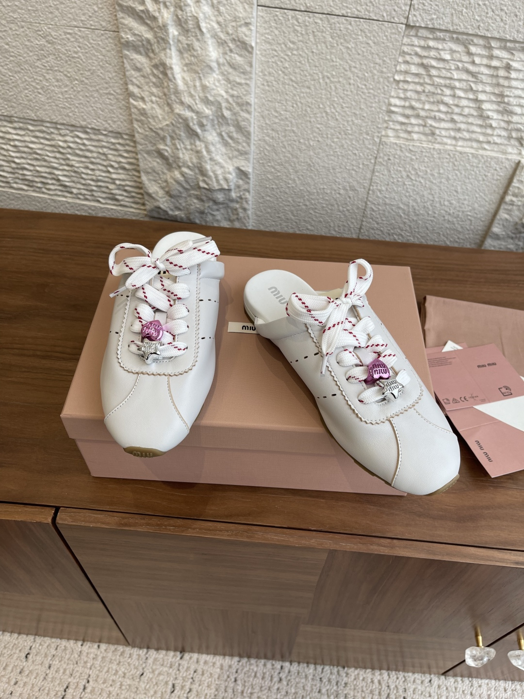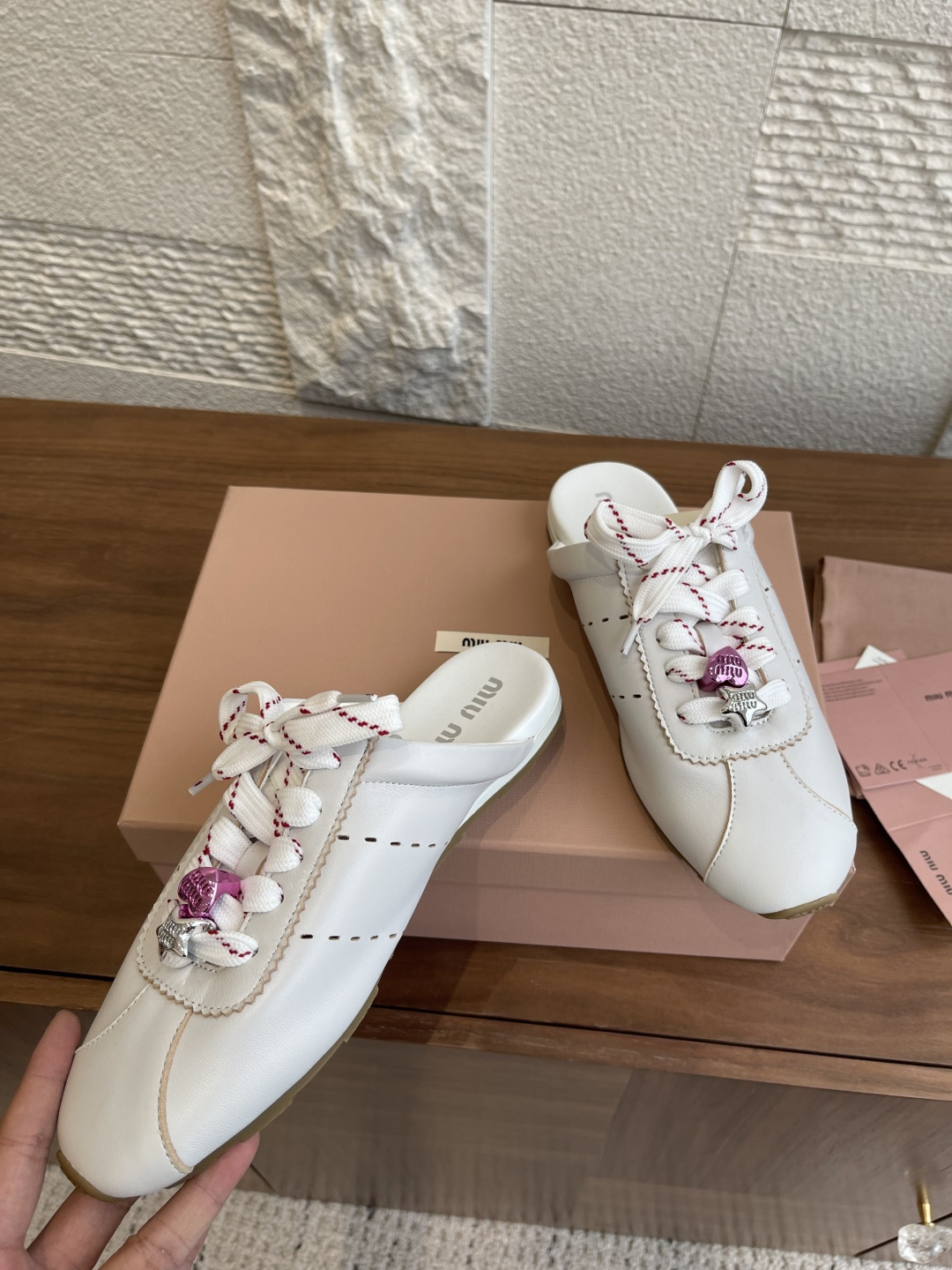 这款鞋子是AAAAA 1:1 质量 (非常棒). 使用了和原版一模一样的材料. 商标部分也保持了和缪缪/Miu Miu一样. 图片拍摄是实物鞋子拍摄, 您所收到的实物保证和我们图片一模一样.