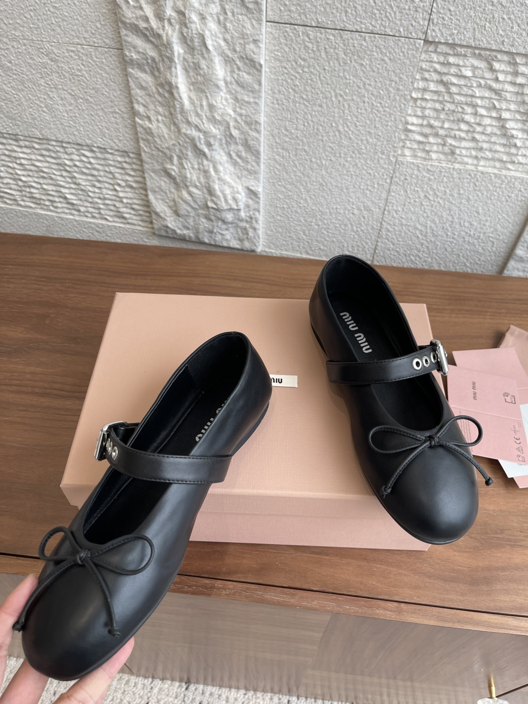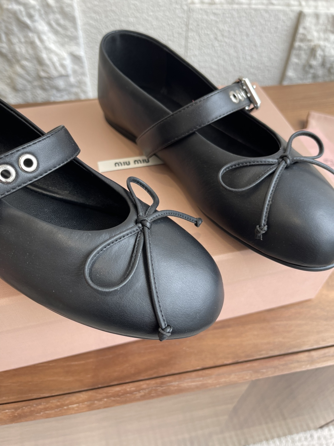 这款鞋子是AAAAA 1:1 质量 (非常棒). 使用了和原版一模一样的材料. 商标部分也保持了和缪缪/Miu Miu一样. 图片拍摄是实物鞋子拍摄, 您所收到的实物保证和我们图片一模一样.