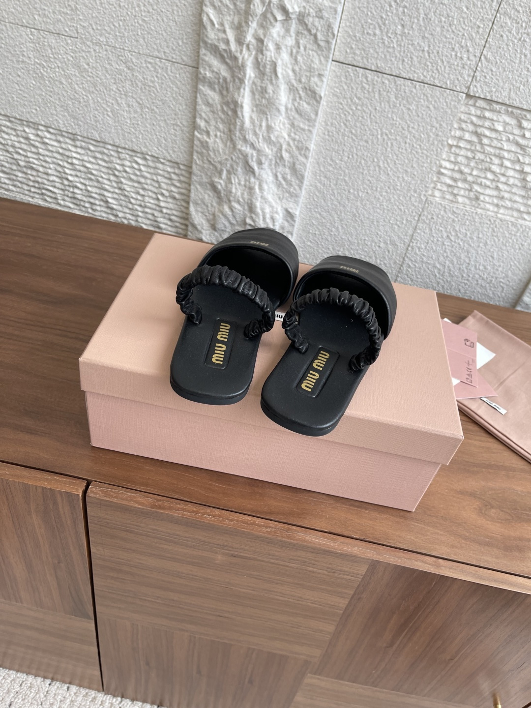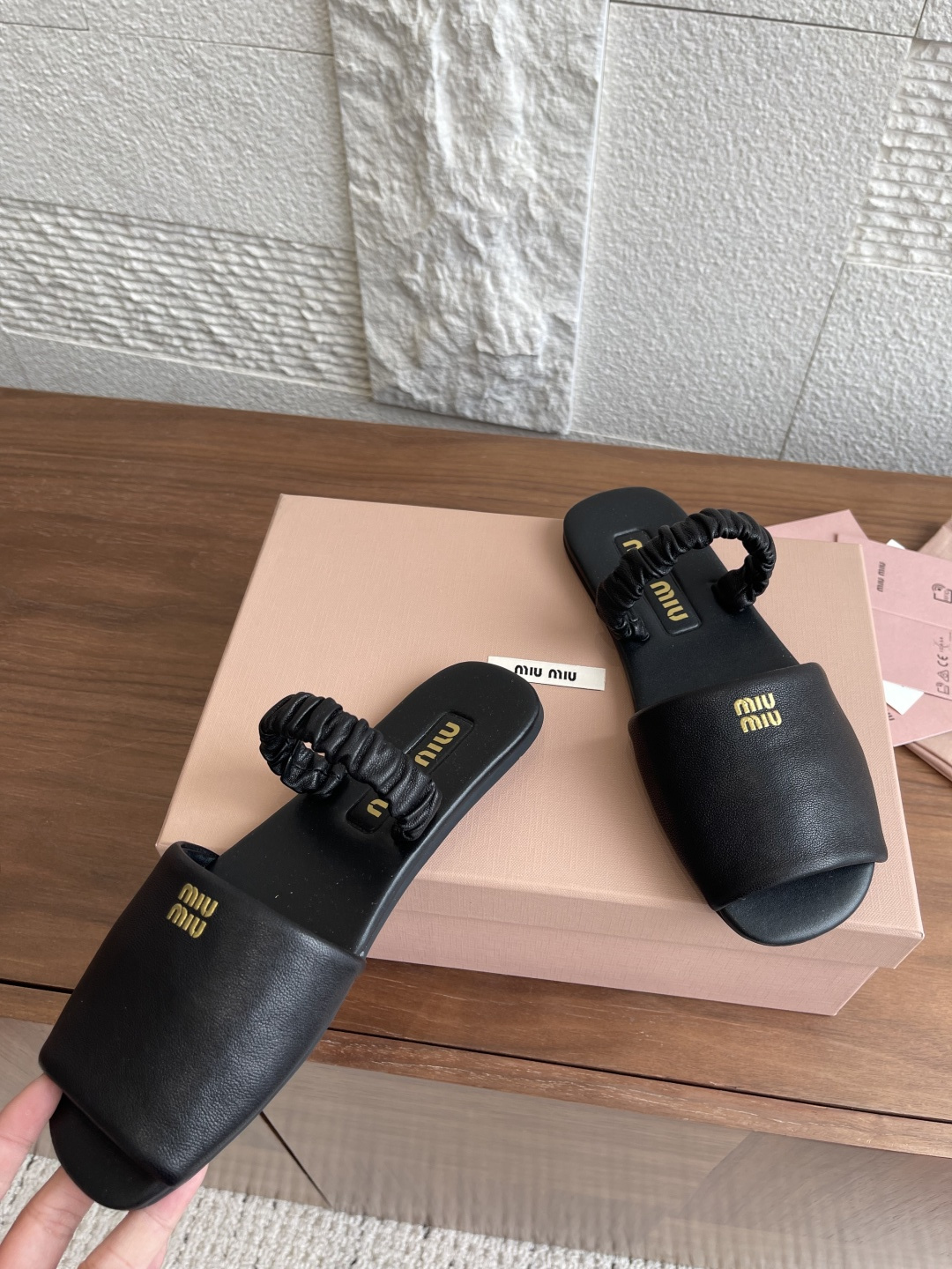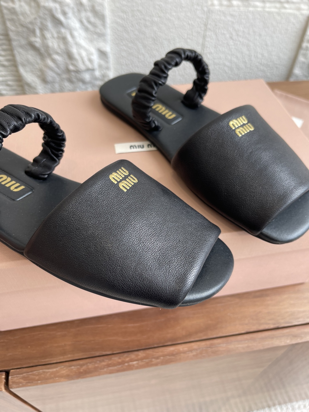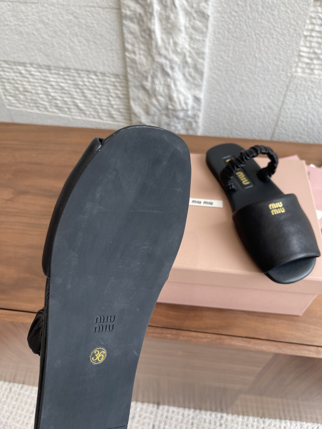 这款鞋子是AAAAA 1:1 质量 (非常棒). 使用了和原版一模一样的材料. 商标部分也保持了和缪缪/Miu Miu一样. 图片拍摄是实物鞋子拍摄, 您所收到的实物保证和我们图片一模一样.