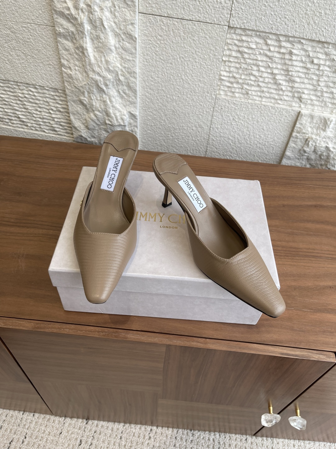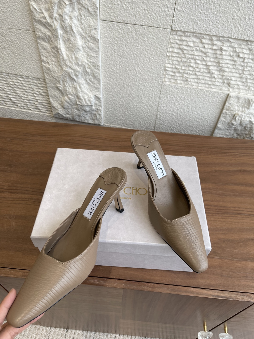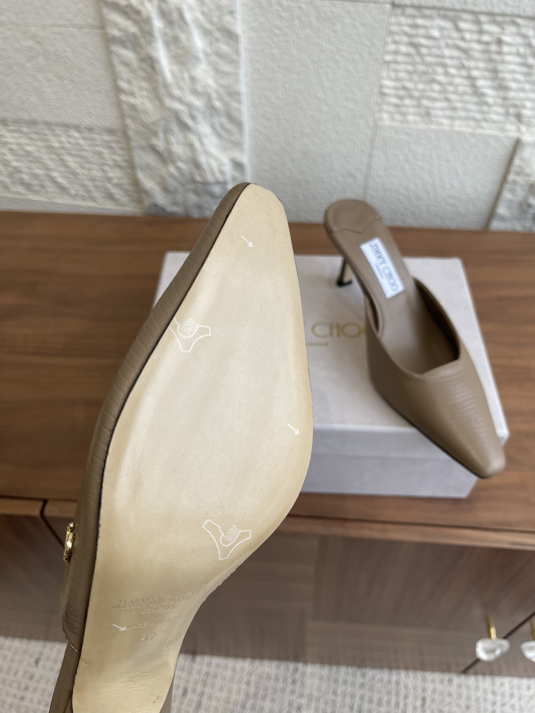 这款鞋子是AAAAA 1:1 质量 (非常棒). 使用了和原版一模一样的材料. 商标部分也保持了和吉米乔/JIMMY CHOO一样. 图片拍摄是实物鞋子拍摄, 您所收到的实物保证和我们图片一模一样.