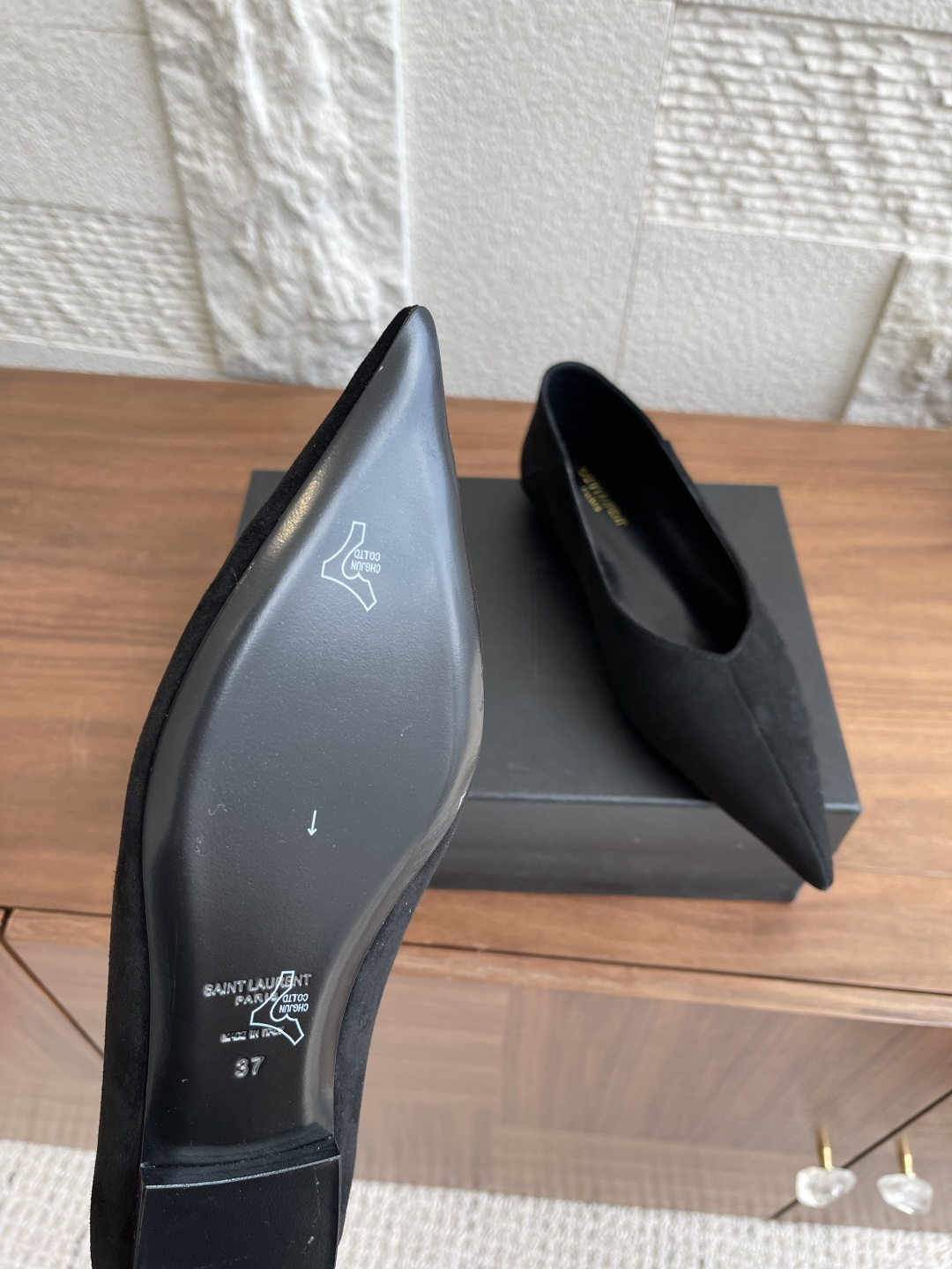 这款鞋子是AAAAA 1:1 质量 (非常棒). 使用了和原版一模一样的材料. 商标部分也保持了和圣罗兰/Saint Laurent一样. 图片拍摄是实物鞋子拍摄, 您所收到的实物保证和我们图片一模一样.