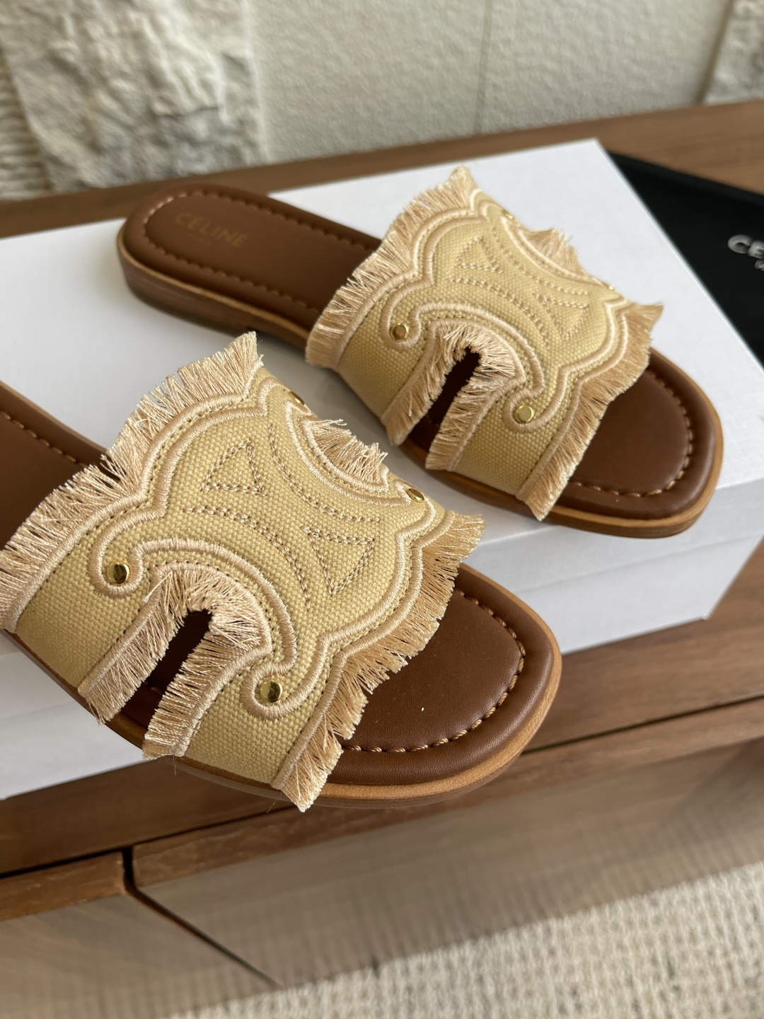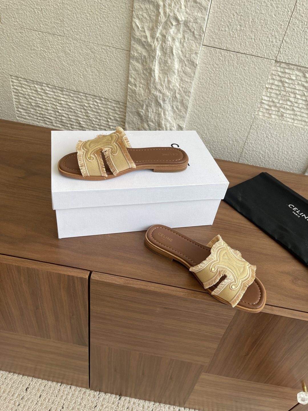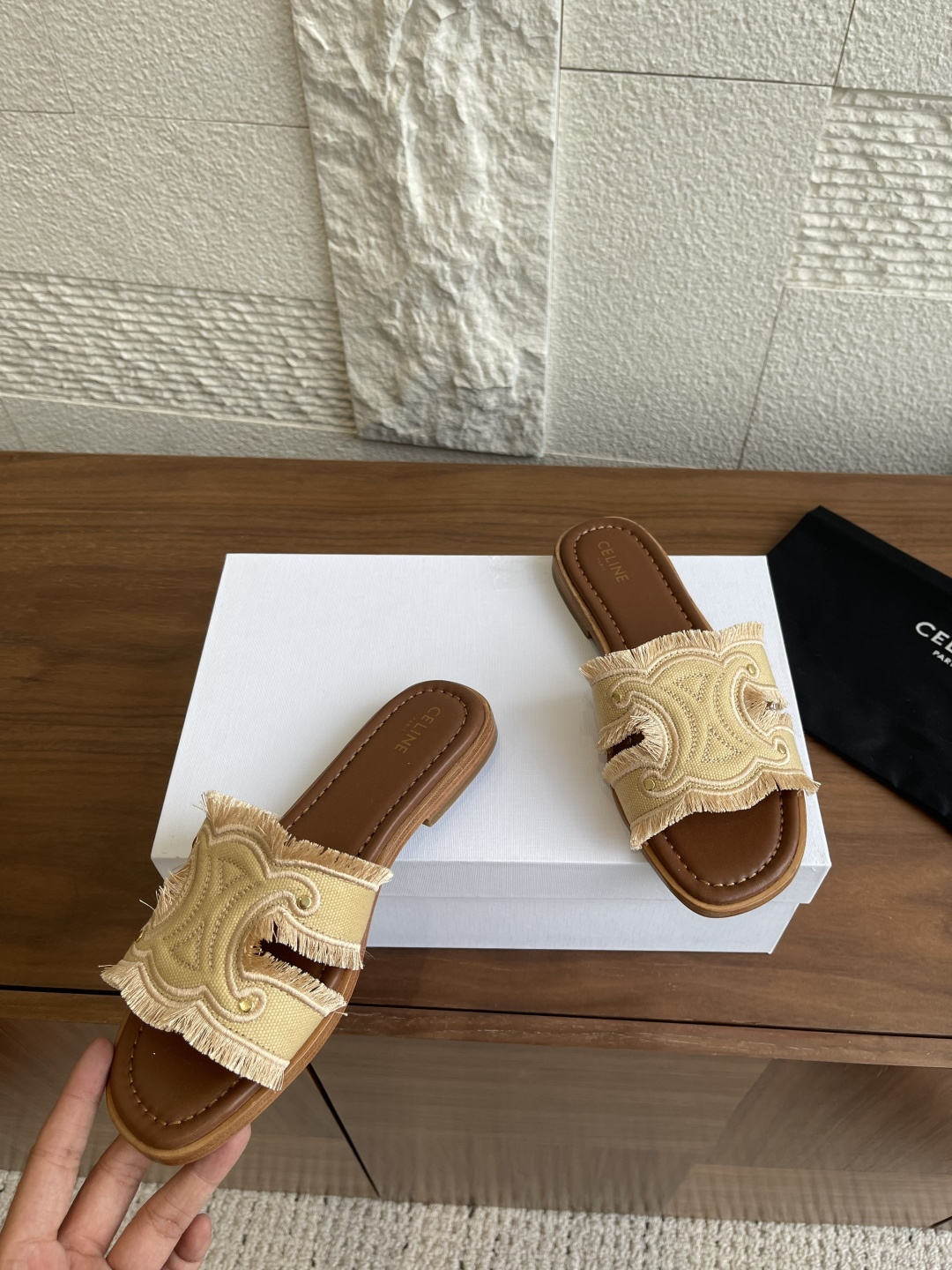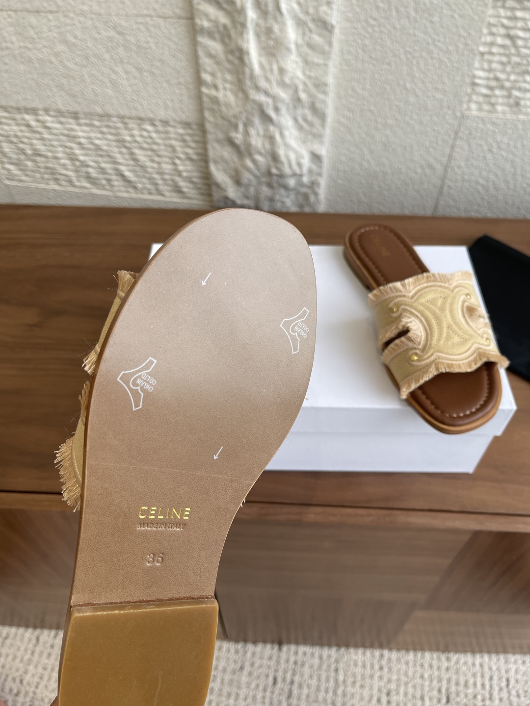 这款鞋子是AAAAA 1:1 质量 (非常棒). 使用了和原版一模一样的材料. 商标部分也保持了和思琳/Celine一样. 图片拍摄是实物鞋子拍摄, 您所收到的实物保证和我们图片一模一样.