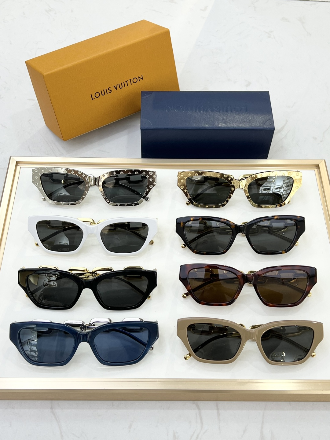 这款太阳眼镜是AAAAA 1:1 质量 (非常棒). 使用了和原版一模一样的材料. 商标部分也保持了和路易威登/Louis Vuitton一样. 图片拍摄是实物太阳眼镜拍摄, 您所收到的实物保证和我们图片一模一样.