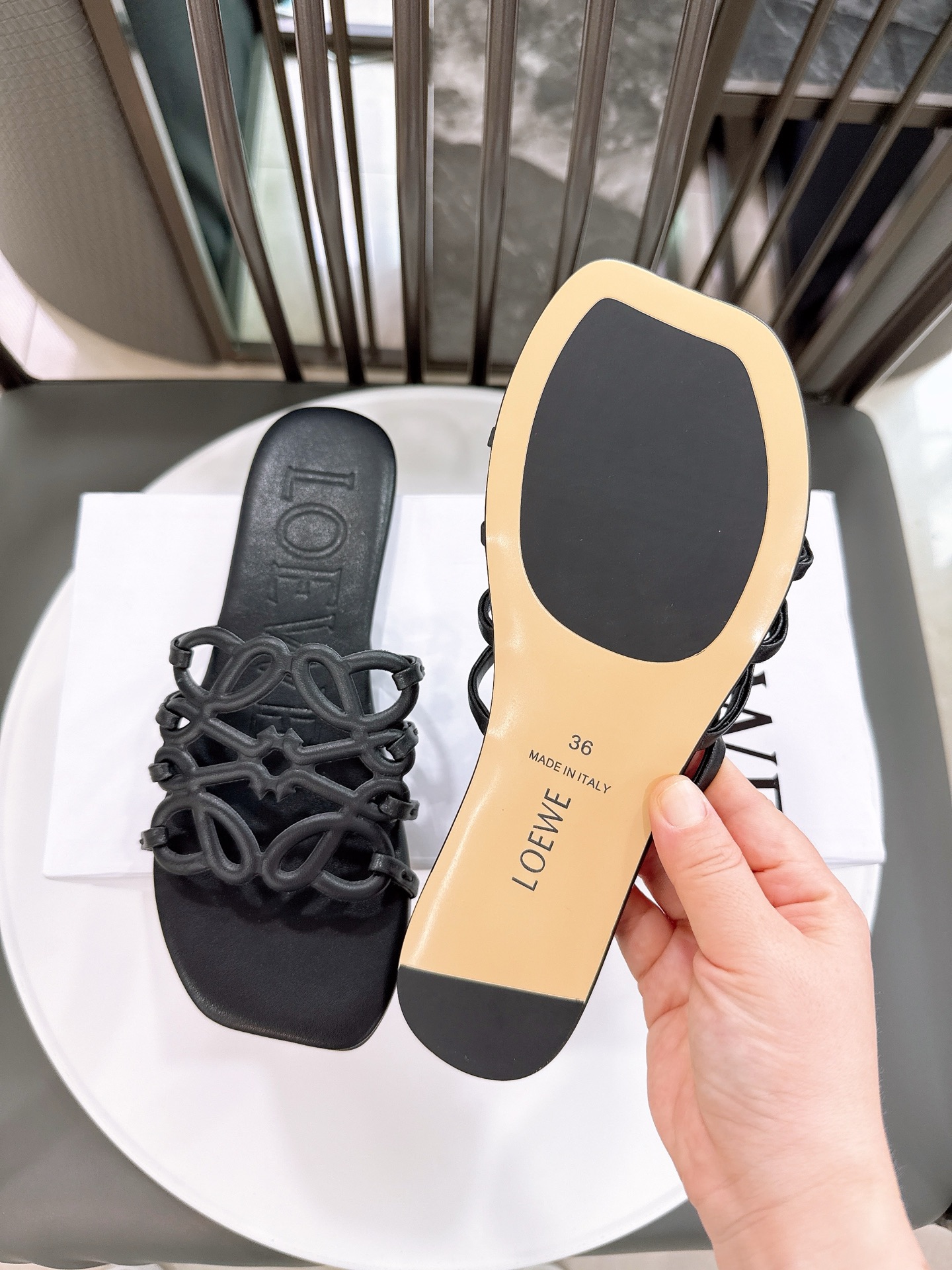 这款鞋子是AAAAA 1:1 质量 (非常棒). 使用了和原版一模一样的材料. 商标部分也保持了和罗意威/Loewe一样. 图片拍摄是实物鞋子拍摄, 您所收到的实物保证和我们图片一模一样.