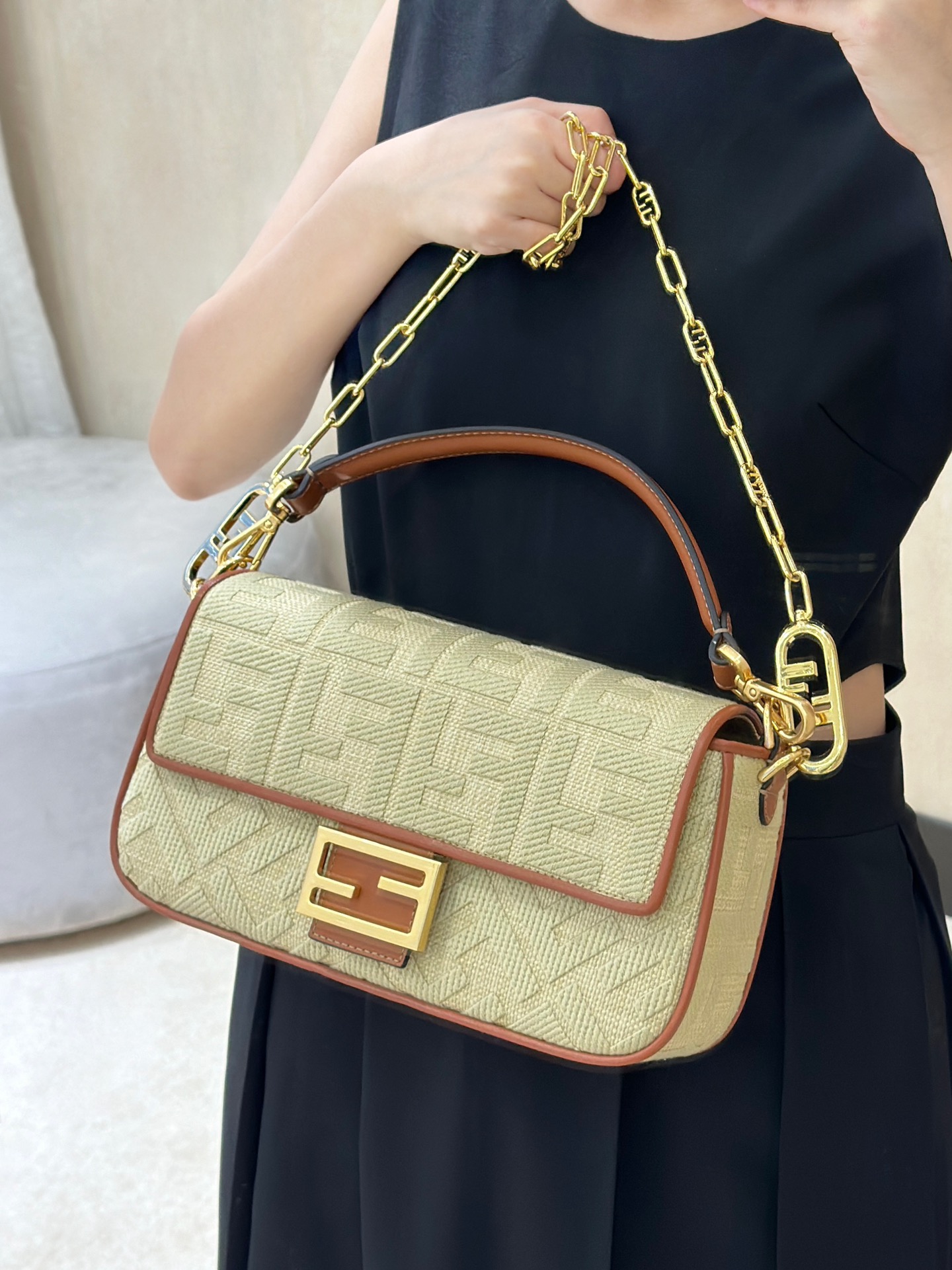 这款包包是AAAAA 1:1 质量 (非常棒). 使用了和原版一模一样的材料. 商标部分也保持了和芬迪/Fendi一样. 图片拍摄是实物包包拍摄, 您所收到的实物保证和我们图片一模一样.