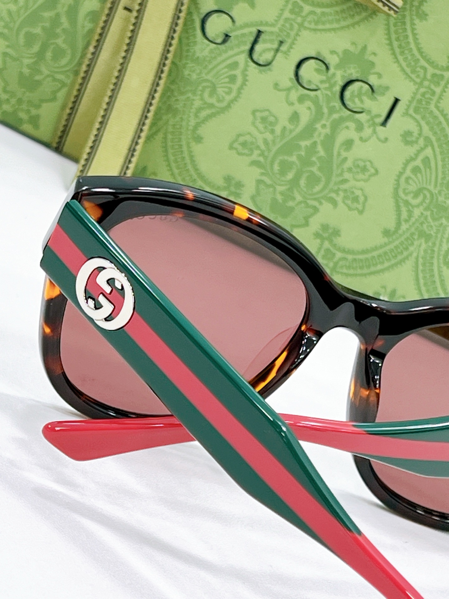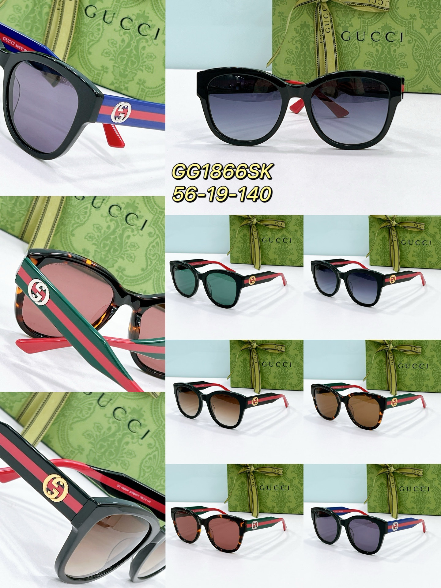 这款太阳眼镜是AAAAA 1:1 质量 (非常棒). 使用了和原版一模一样的材料. 商标部分也保持了和古奇/Gucci一样. 图片拍摄是实物太阳眼镜拍摄, 您所收到的实物保证和我们图片一模一样.