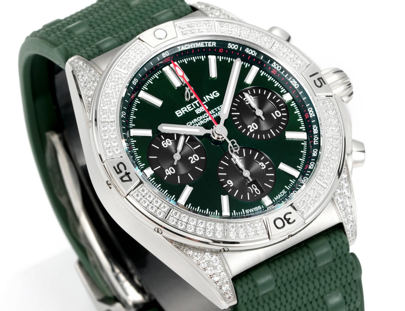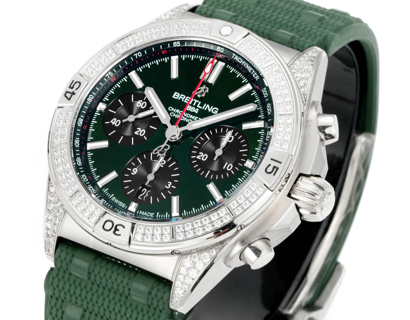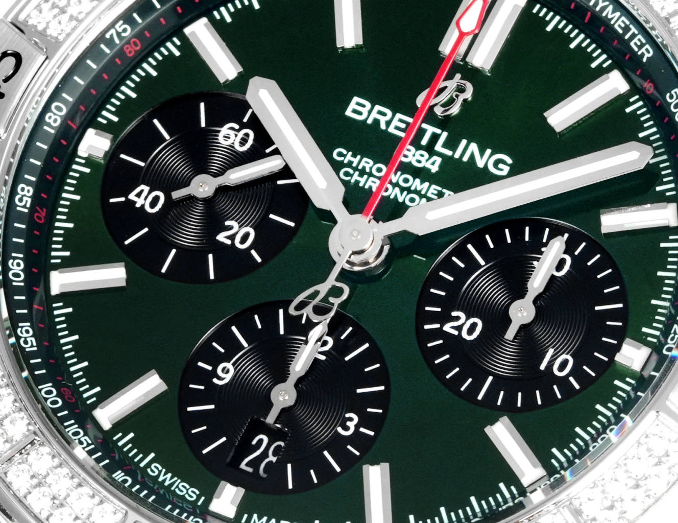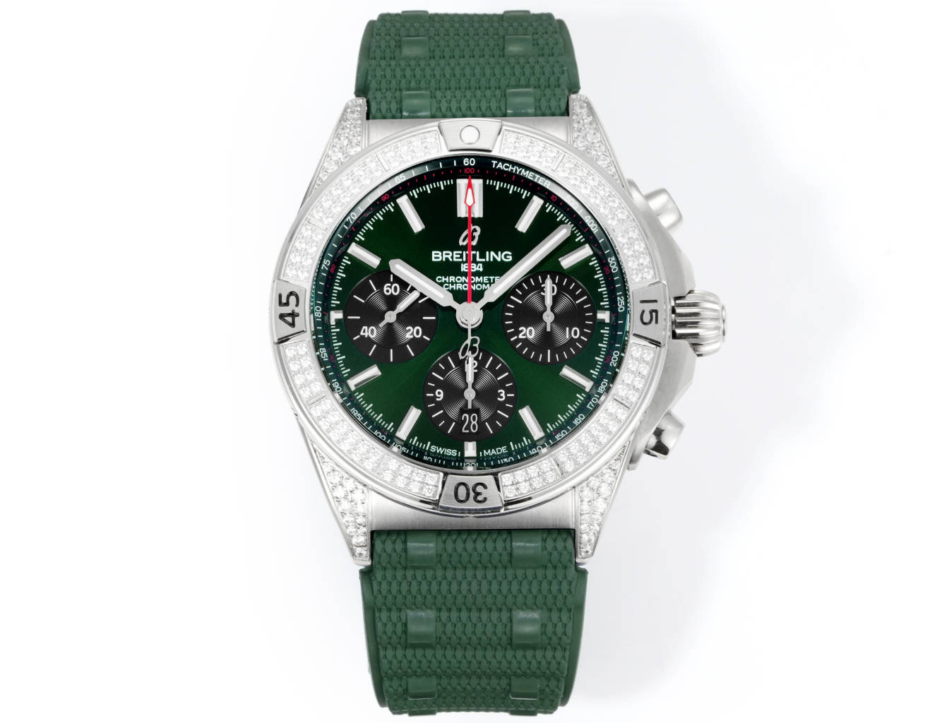 这款手表是AAAAA 1:1 质量 (非常棒). 使用了和原版一模一样的材料. 商标部分也保持了和Breitling一样. 图片拍摄是实物手表拍摄, 您所收到的实物保证和我们图片一模一样.
