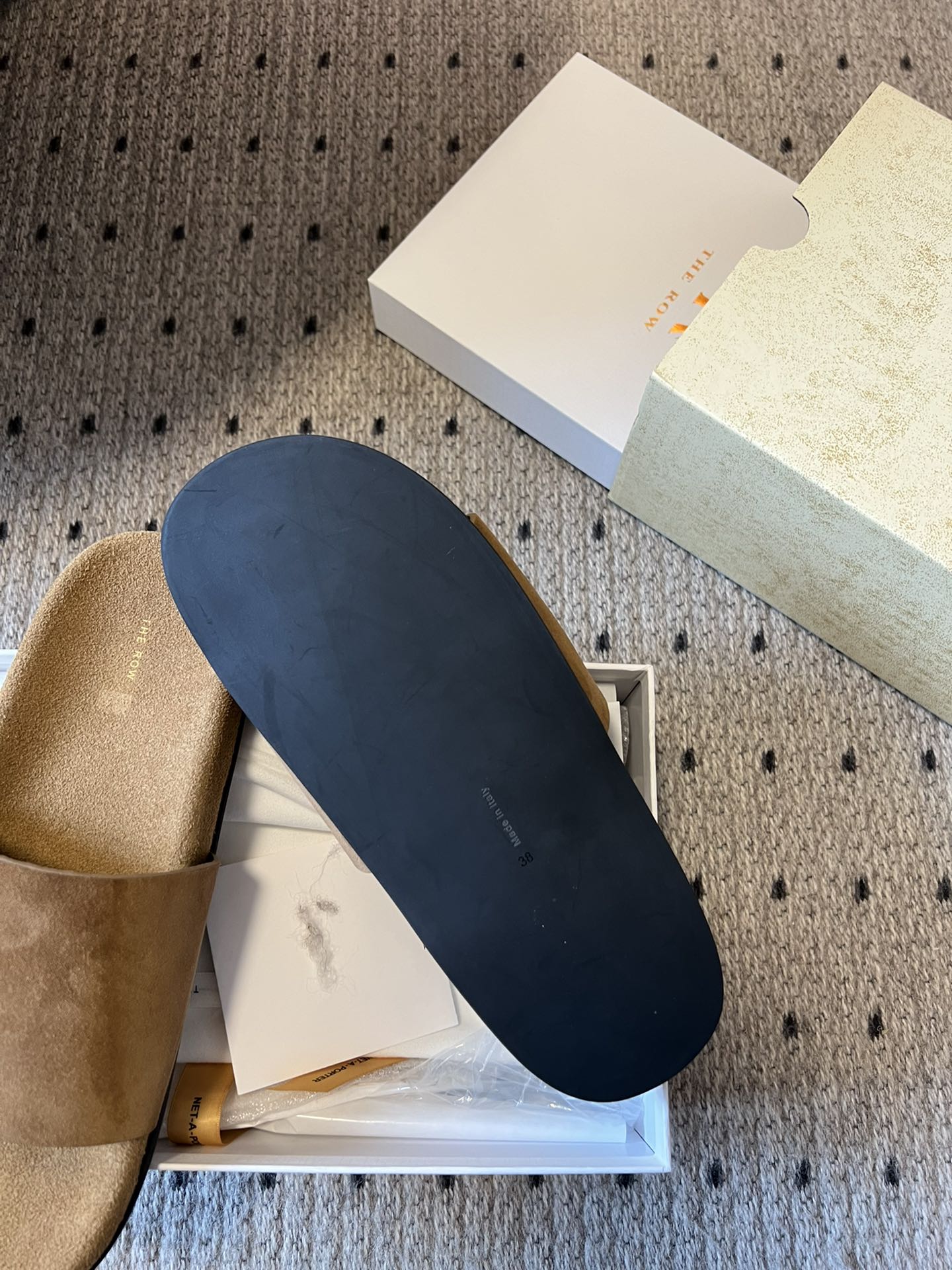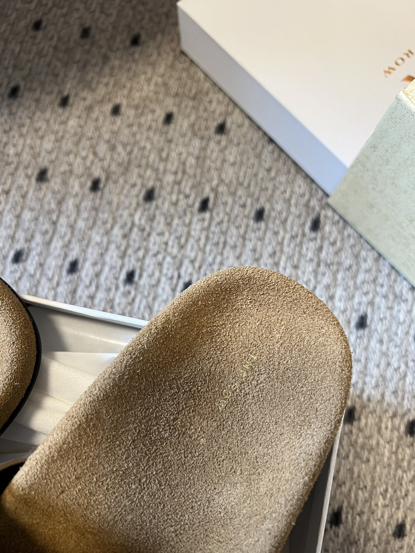 这款鞋子是AAAAA 1:1 质量 (非常棒). 使用了和原版一模一样的材料. 商标部分也保持了和The Row一样. 图片拍摄是实物鞋子拍摄, 您所收到的实物保证和我们图片一模一样.