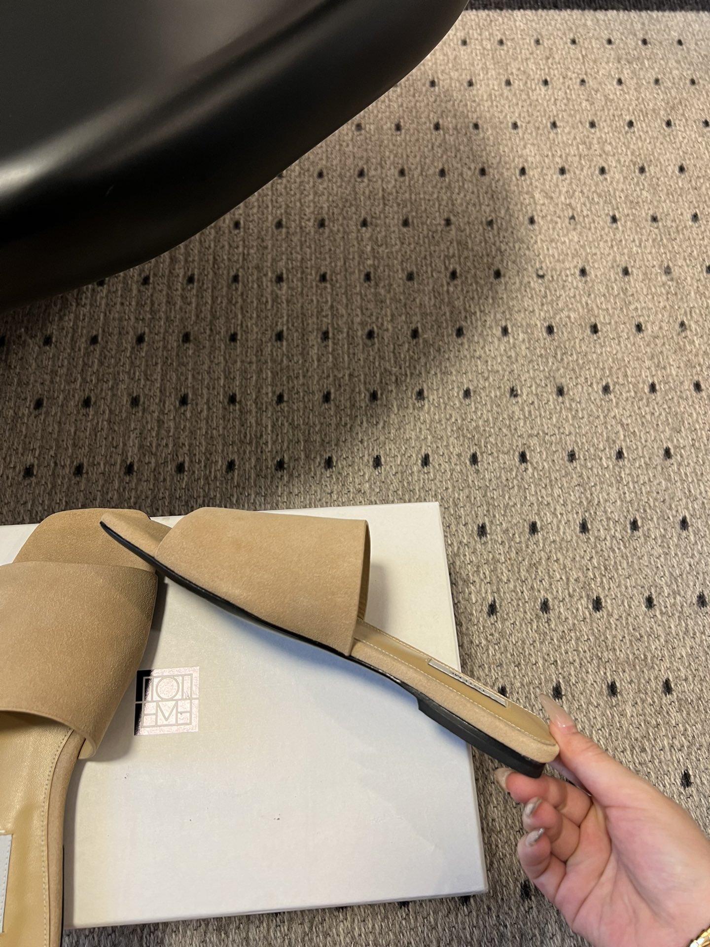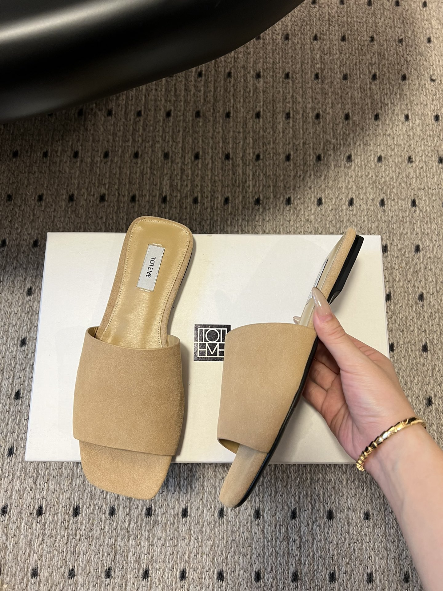 这款鞋子是AAAAA 1:1 质量 (非常棒). 使用了和原版一模一样的材料. 商标部分也保持了和Toteme一样. 图片拍摄是实物鞋子拍摄, 您所收到的实物保证和我们图片一模一样.