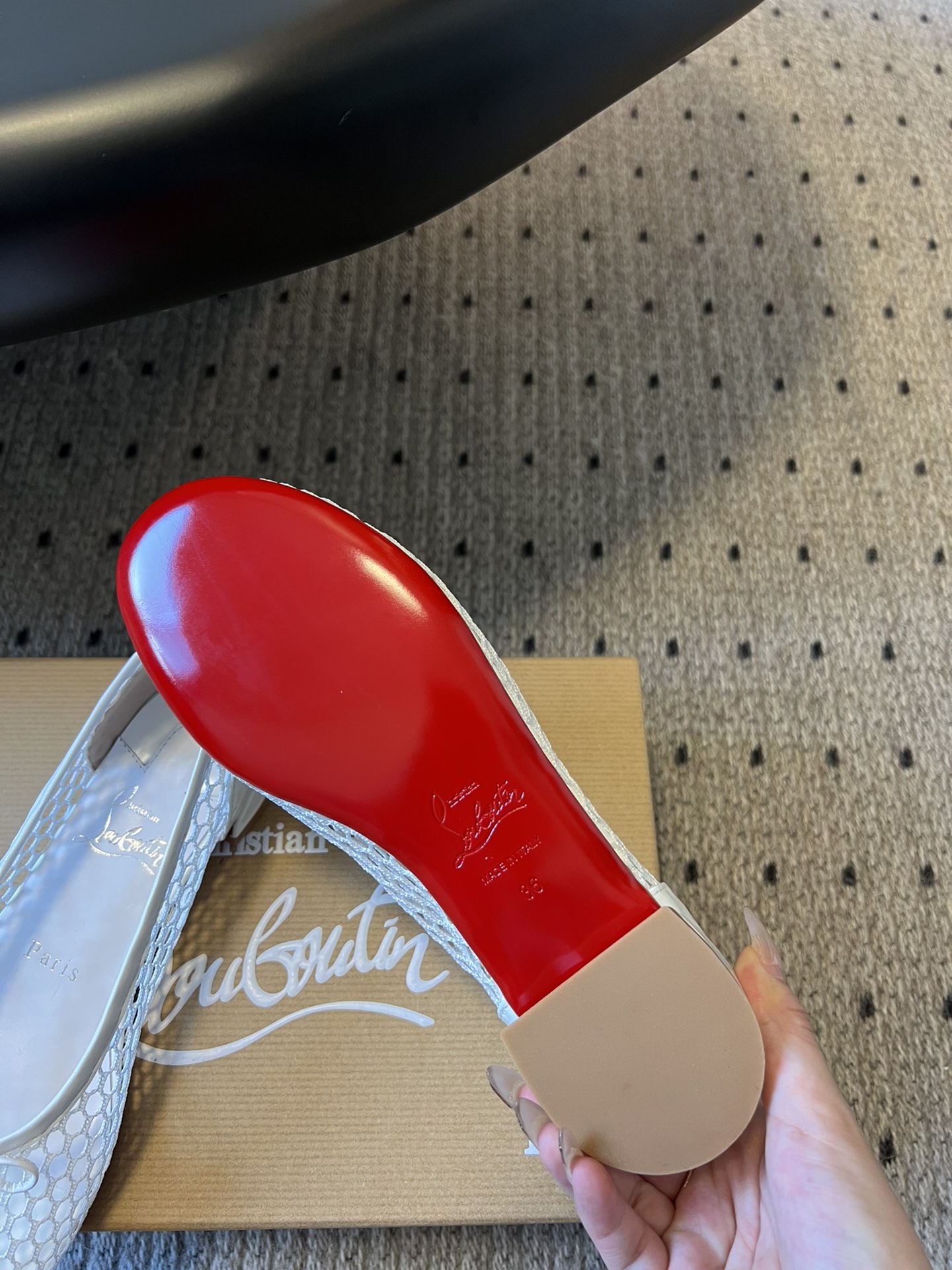 这款鞋子是AAAAA 1:1 质量 (非常棒). 使用了和原版一模一样的材料. 商标部分也保持了和克里斯提·鲁布托/Christian Louboutin一样. 图片拍摄是实物鞋子拍摄, 您所收到的实物保证和我们图片一模一样.