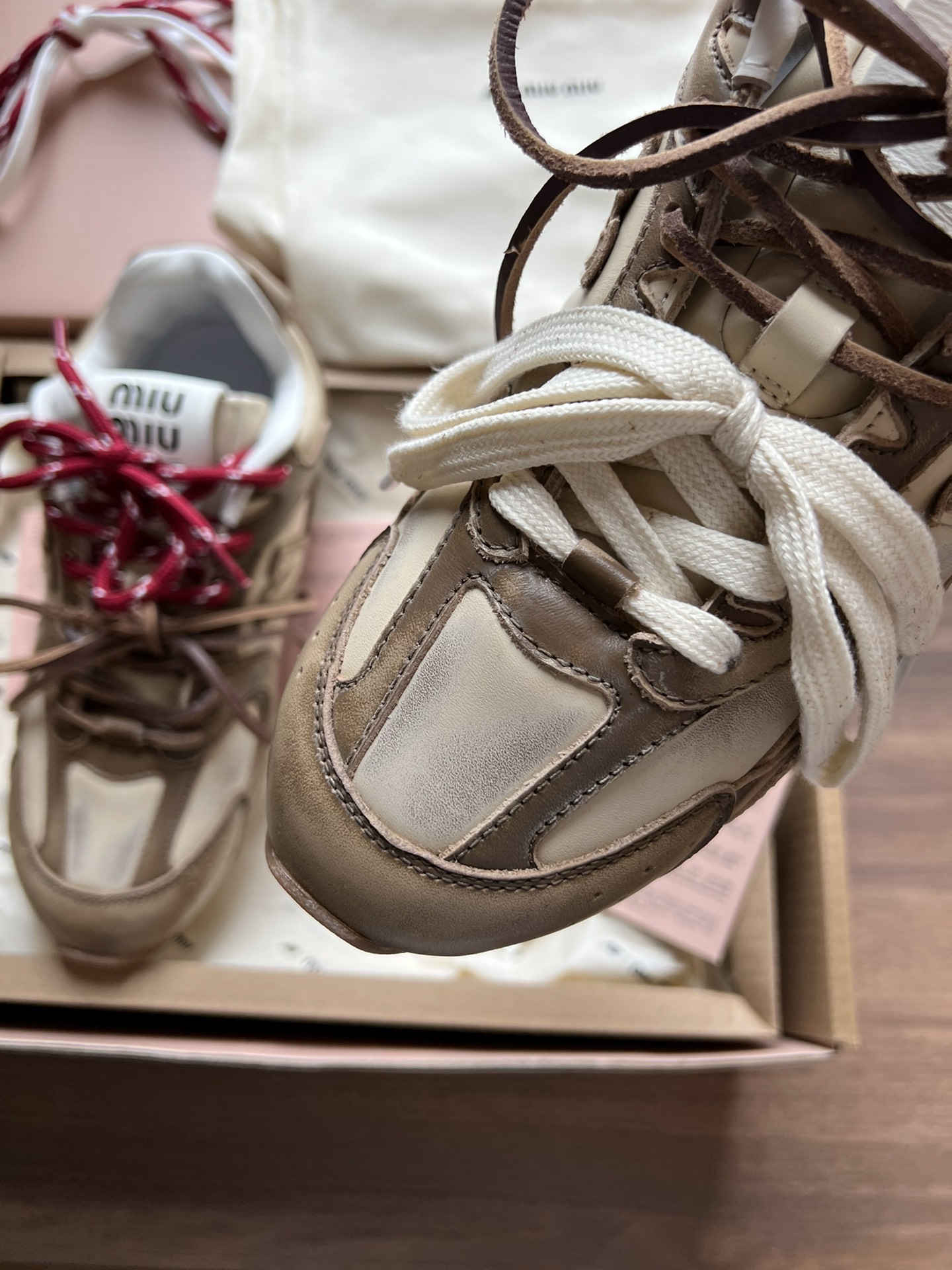 这款鞋子是AAAAA 1:1 质量 (非常棒). 使用了和原版一模一样的材料. 商标部分也保持了和缪缪/Miu Miu一样. 图片拍摄是实物鞋子拍摄, 您所收到的实物保证和我们图片一模一样.