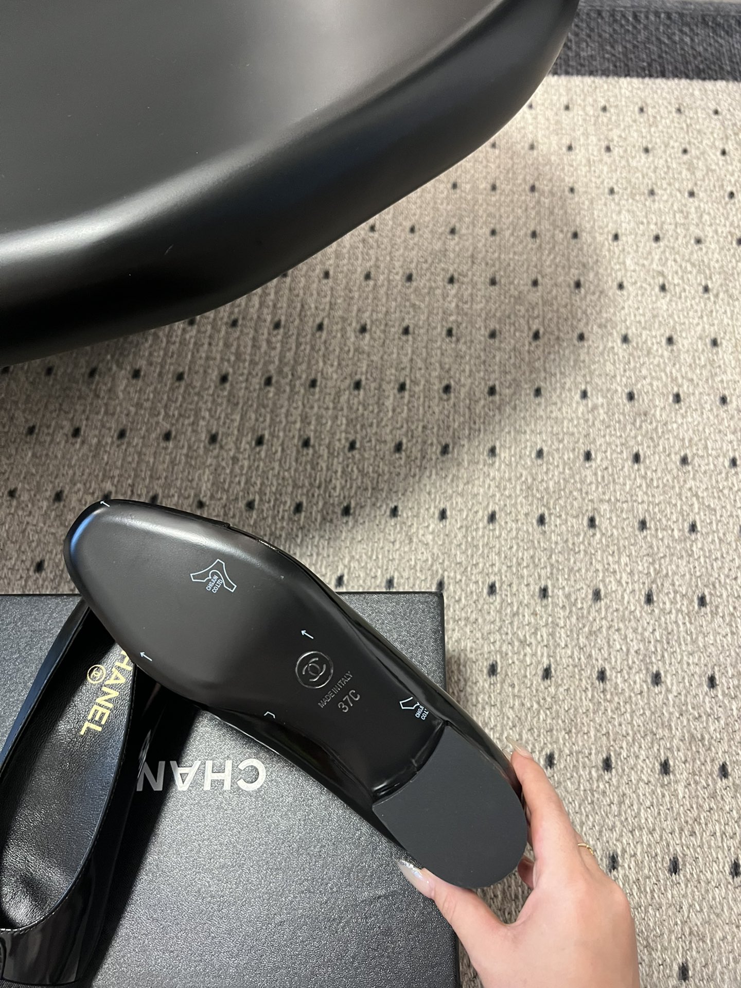 这款鞋子是AAAAA 1:1 质量 (非常棒). 使用了和原版一模一样的材料. 商标部分也保持了和香奈儿/Chanel一样. 图片拍摄是实物鞋子拍摄, 您所收到的实物保证和我们图片一模一样.