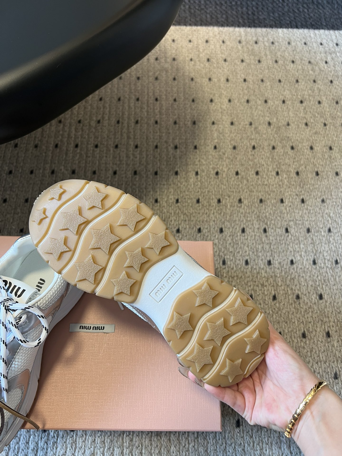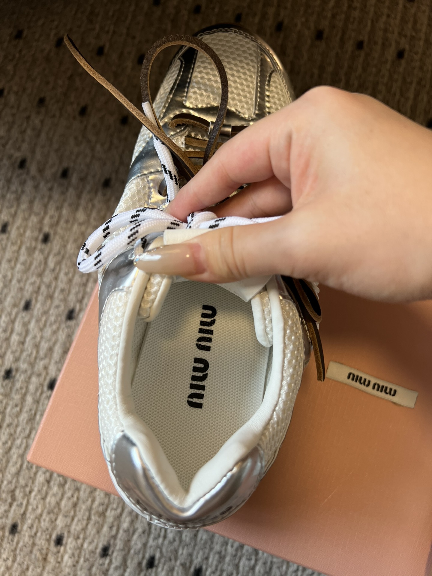 这款鞋子是AAAAA 1:1 质量 (非常棒). 使用了和原版一模一样的材料. 商标部分也保持了和缪缪/Miu Miu一样. 图片拍摄是实物鞋子拍摄, 您所收到的实物保证和我们图片一模一样.