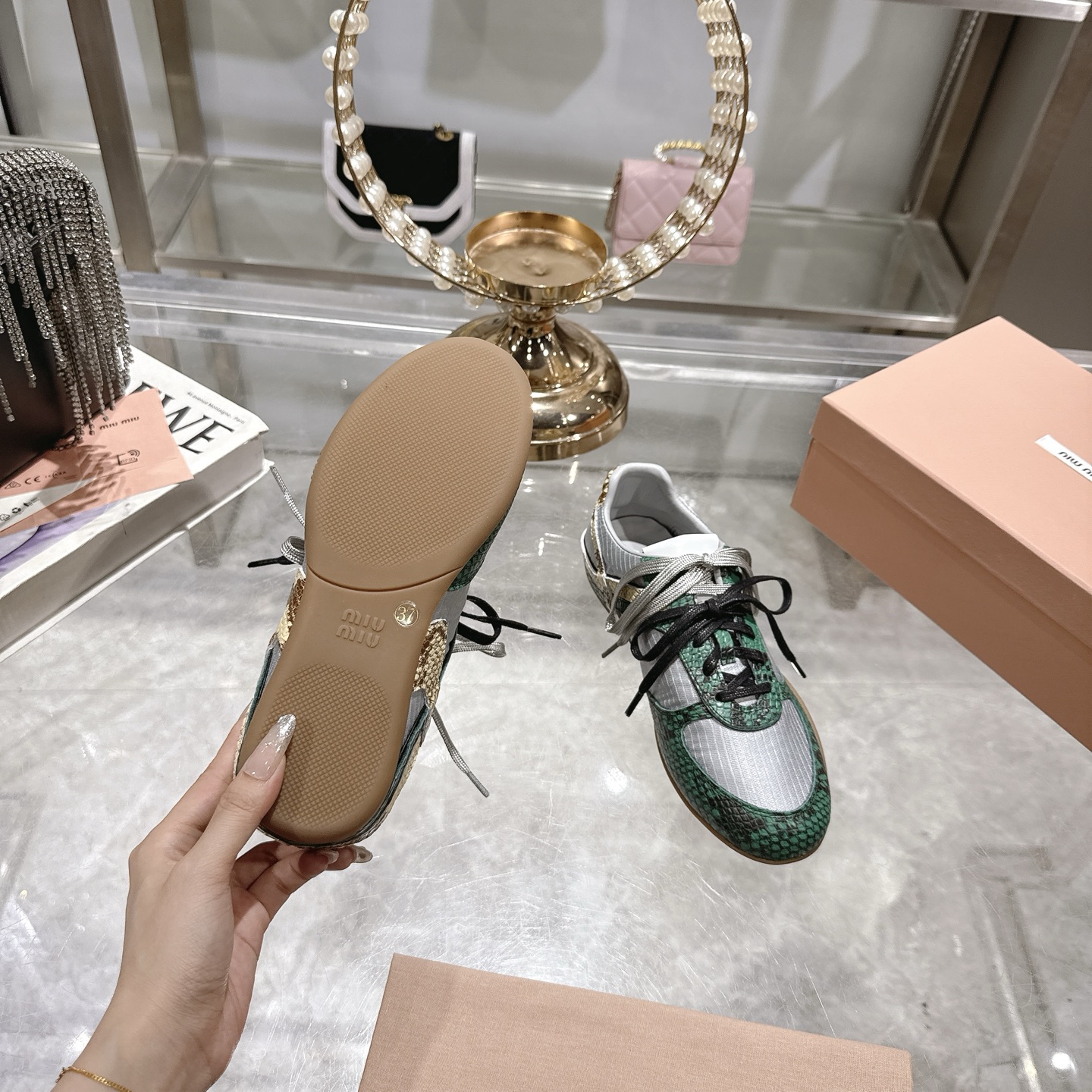 这款鞋子是AAAAA 1:1 质量 (非常棒). 使用了和原版一模一样的材料. 商标部分也保持了和缪缪/Miu Miu一样. 图片拍摄是实物鞋子拍摄, 您所收到的实物保证和我们图片一模一样.