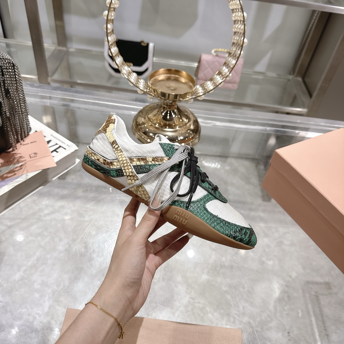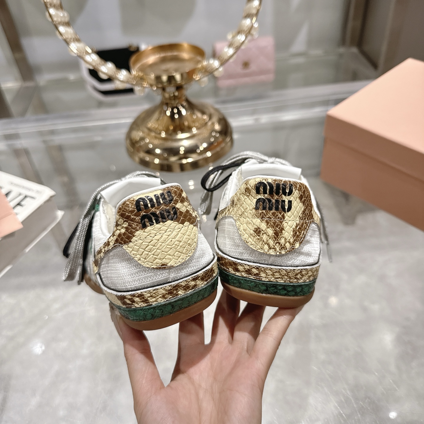 这款鞋子是AAAAA 1:1 质量 (非常棒). 使用了和原版一模一样的材料. 商标部分也保持了和缪缪/Miu Miu一样. 图片拍摄是实物鞋子拍摄, 您所收到的实物保证和我们图片一模一样.