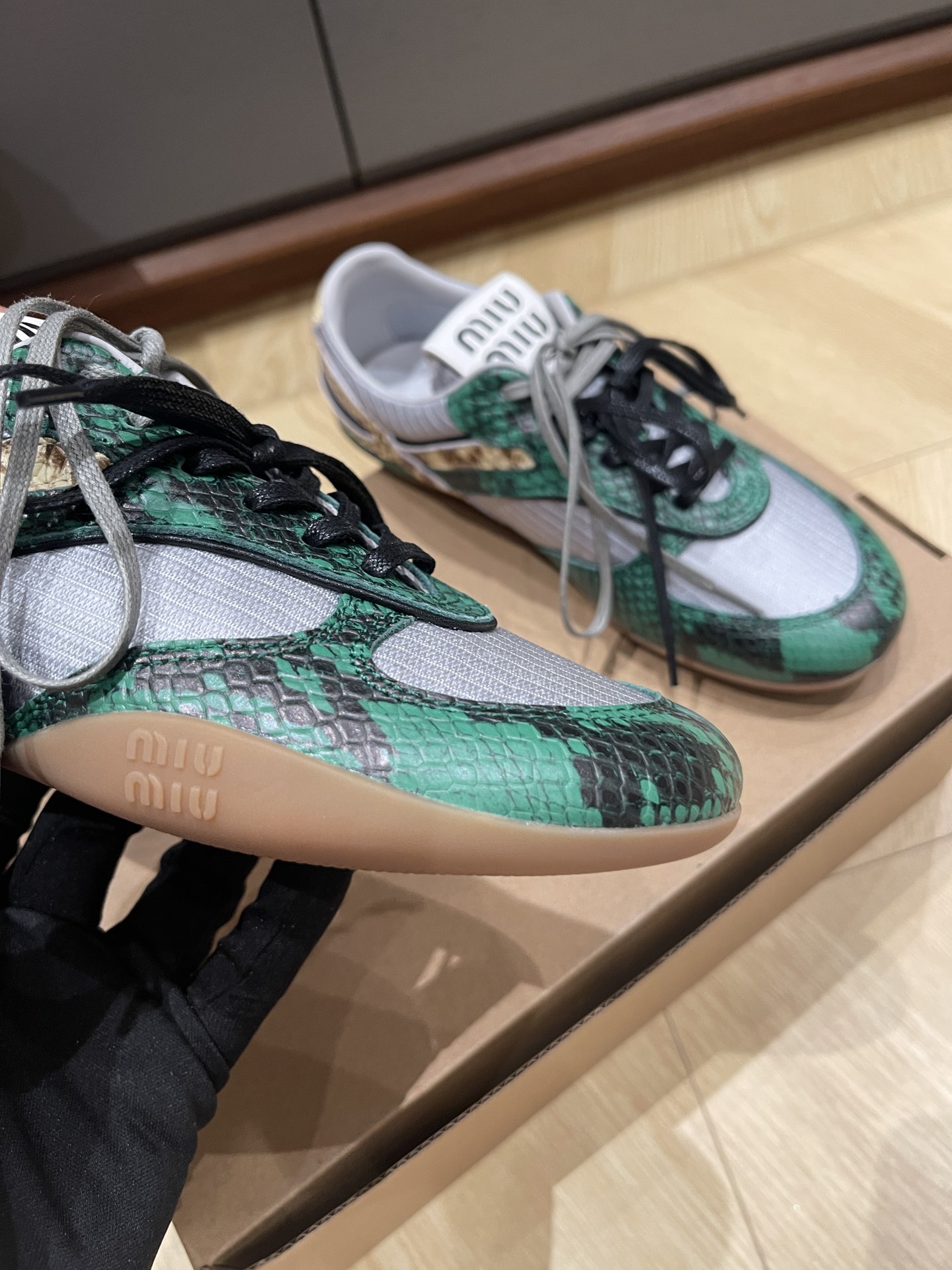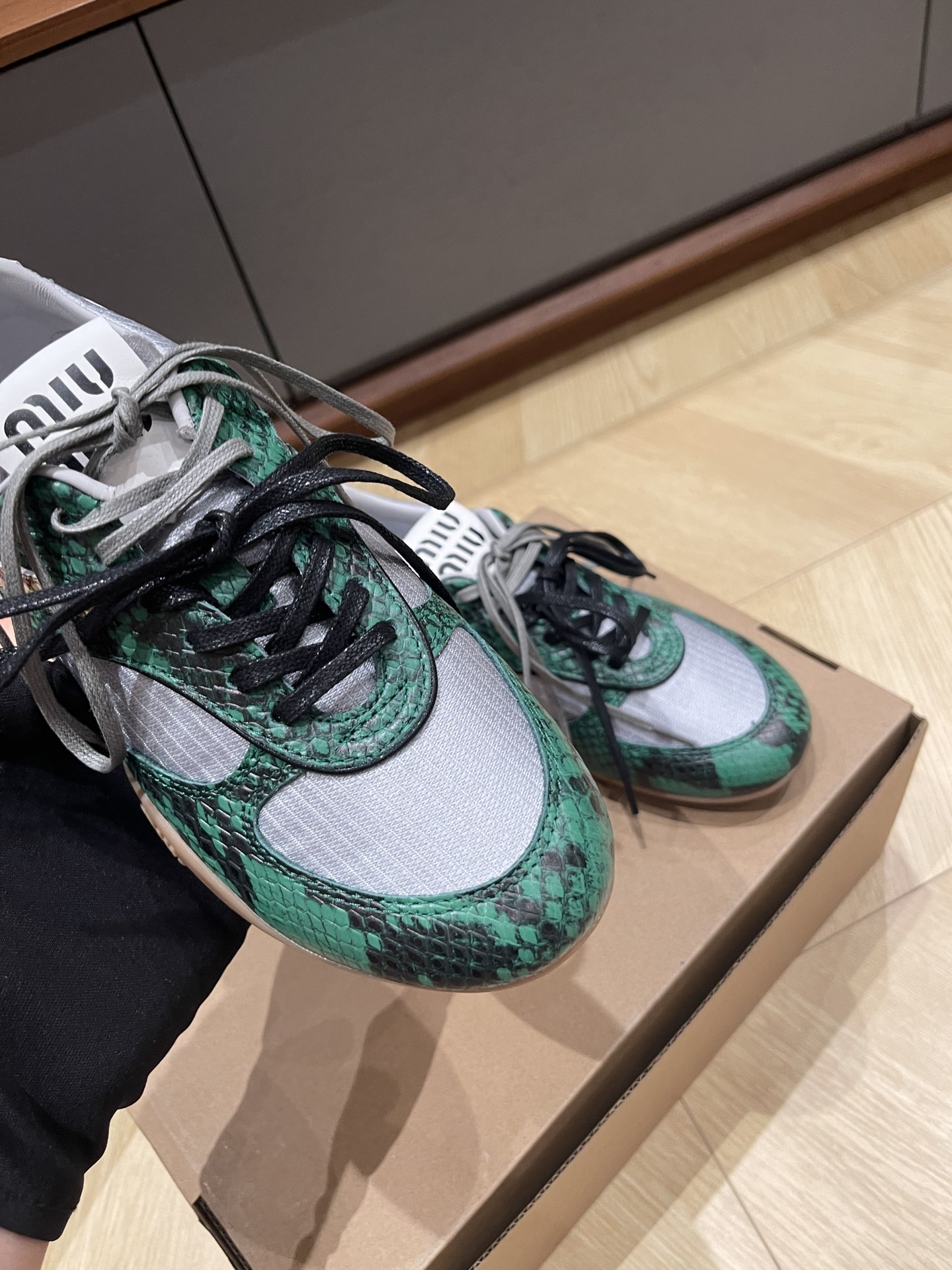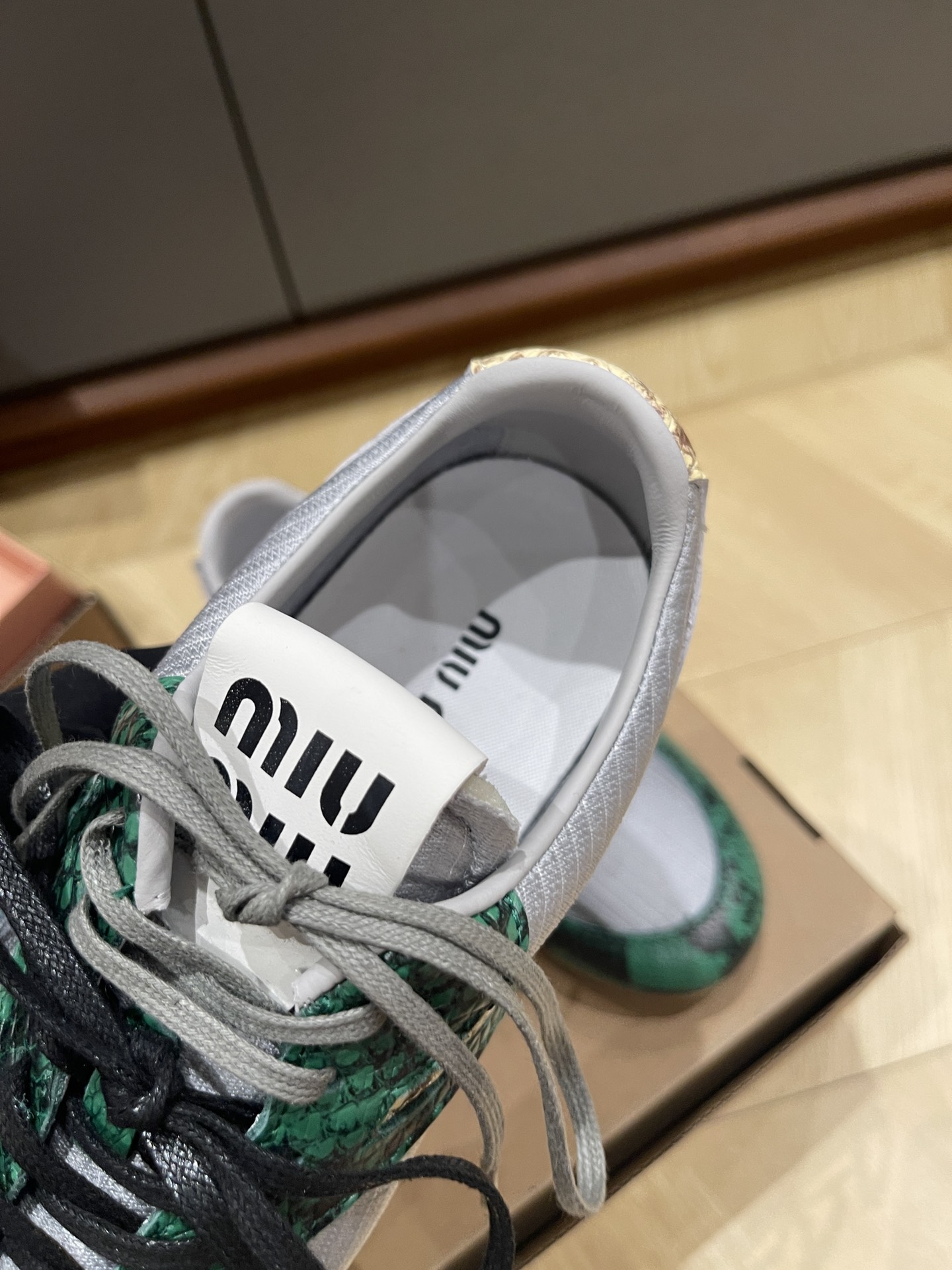 这款鞋子是AAAAA 1:1 质量 (非常棒). 使用了和原版一模一样的材料. 商标部分也保持了和缪缪/Miu Miu一样. 图片拍摄是实物鞋子拍摄, 您所收到的实物保证和我们图片一模一样.