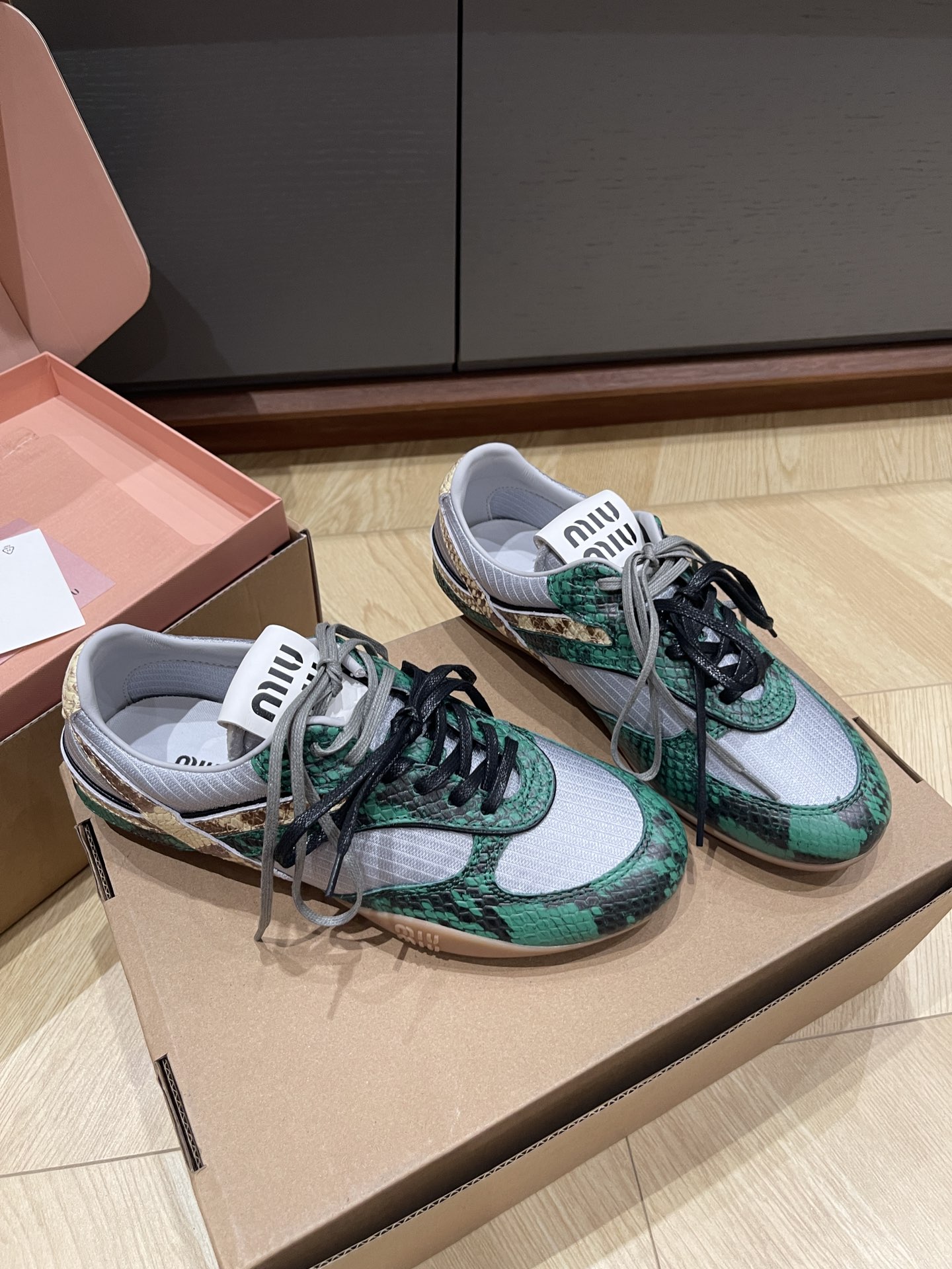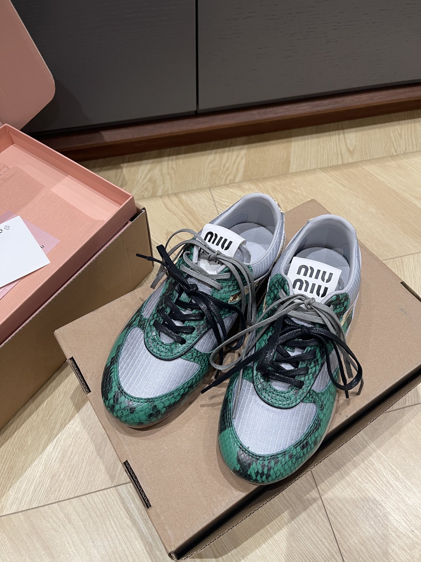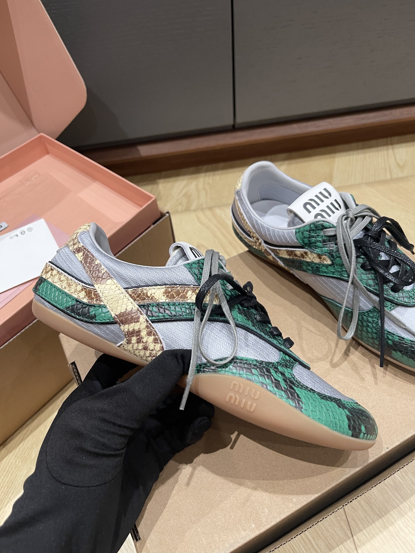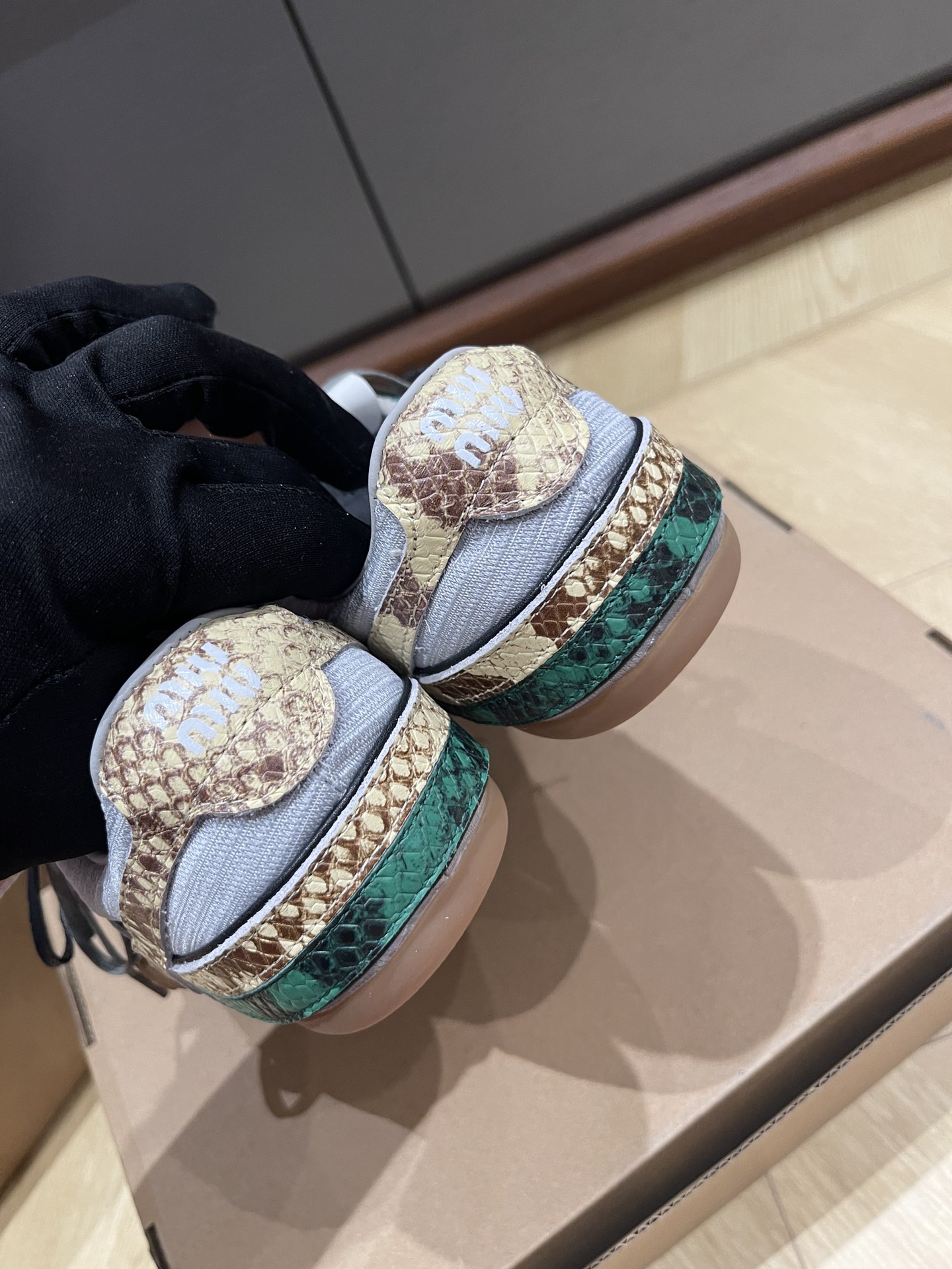 这款鞋子是AAAAA 1:1 质量 (非常棒). 使用了和原版一模一样的材料. 商标部分也保持了和缪缪/Miu Miu一样. 图片拍摄是实物鞋子拍摄, 您所收到的实物保证和我们图片一模一样.