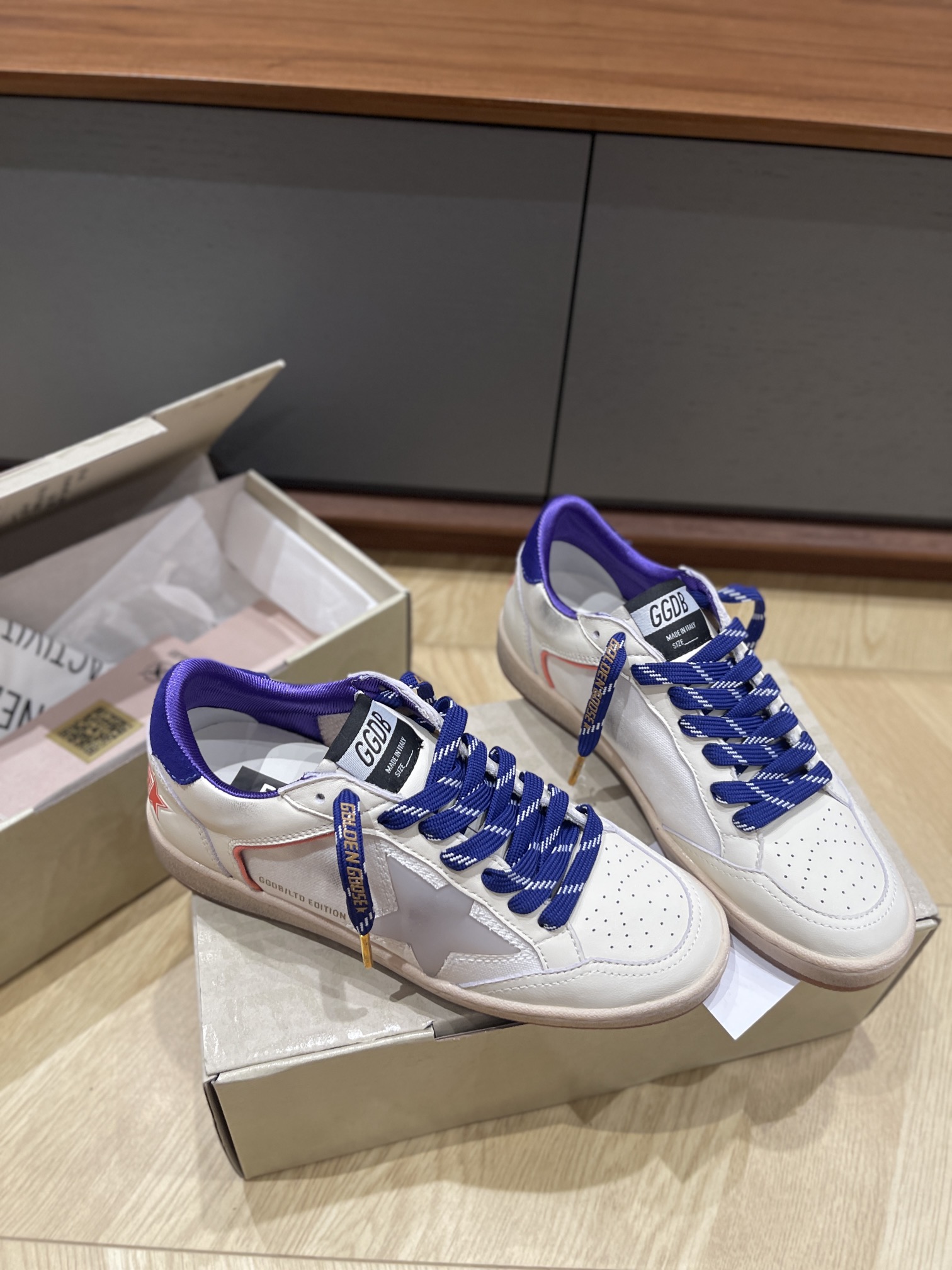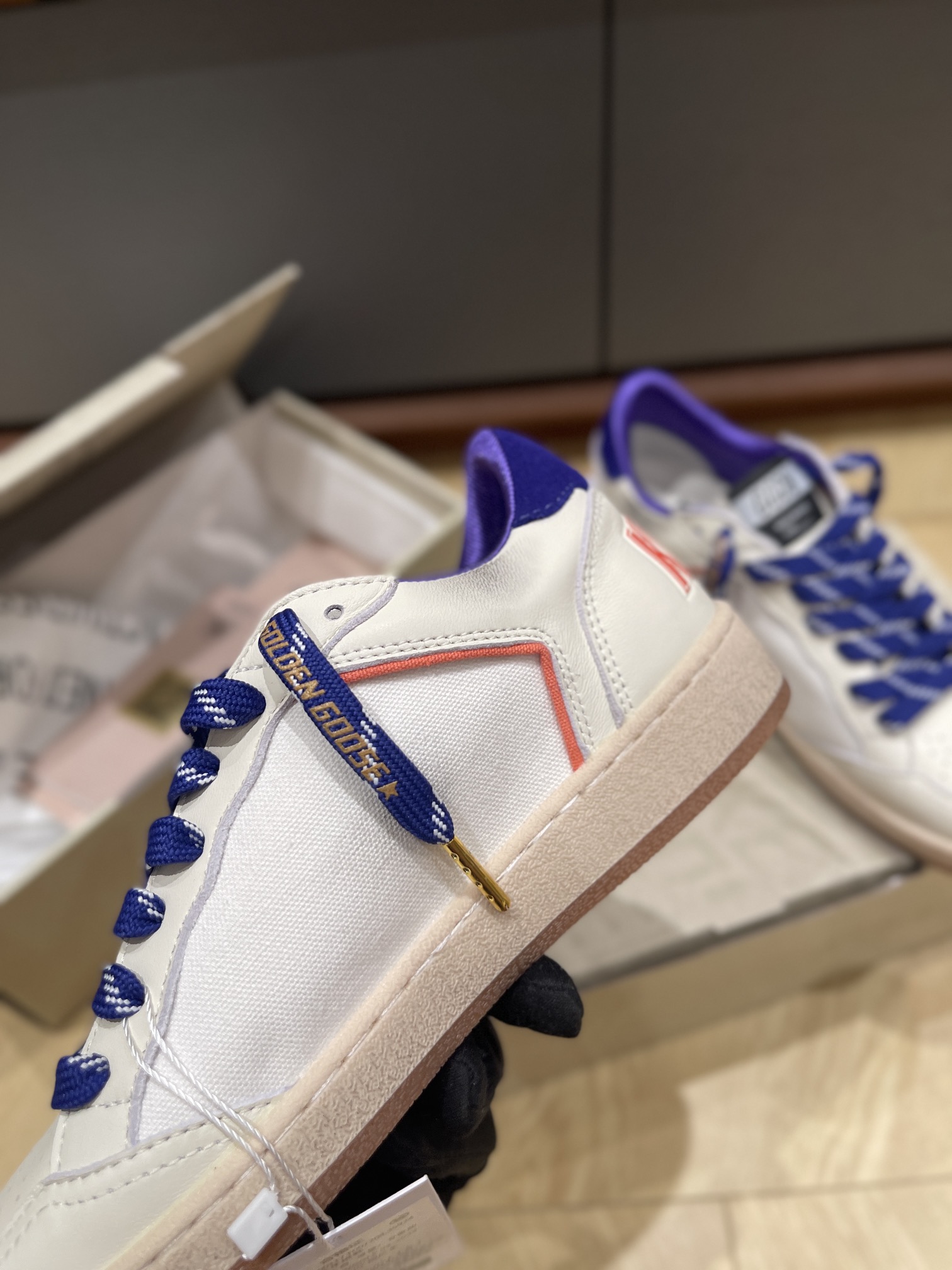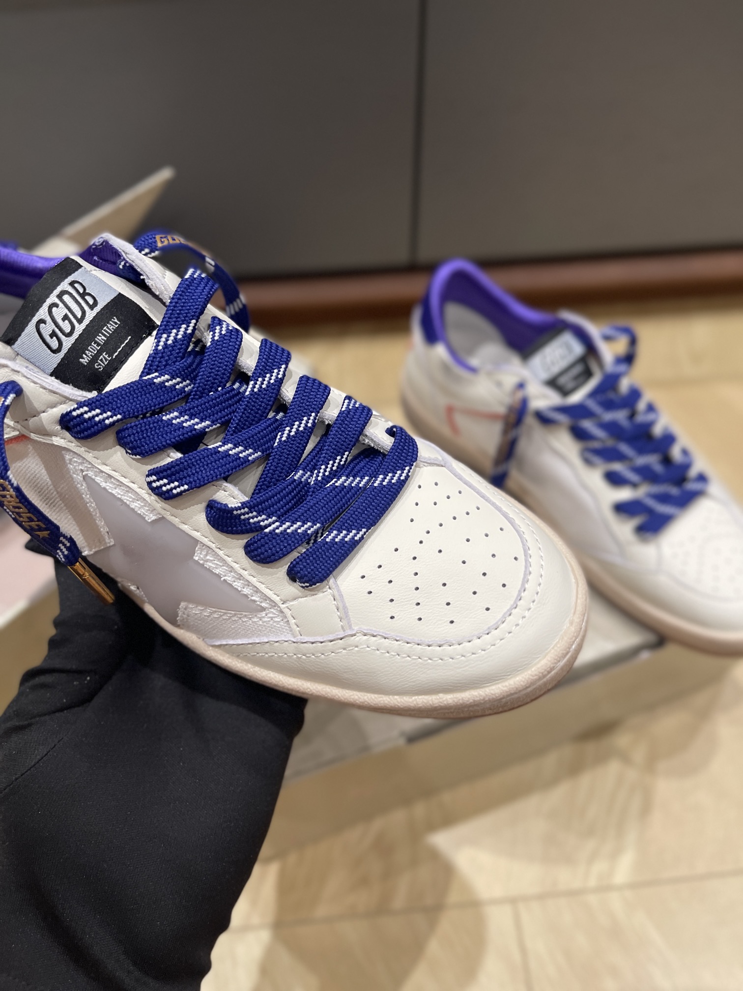 这款鞋子是AAAAA 1:1 质量 (非常棒). 使用了和原版一模一样的材料. 商标部分也保持了和Golden Goose一样. 图片拍摄是实物鞋子拍摄, 您所收到的实物保证和我们图片一模一样.