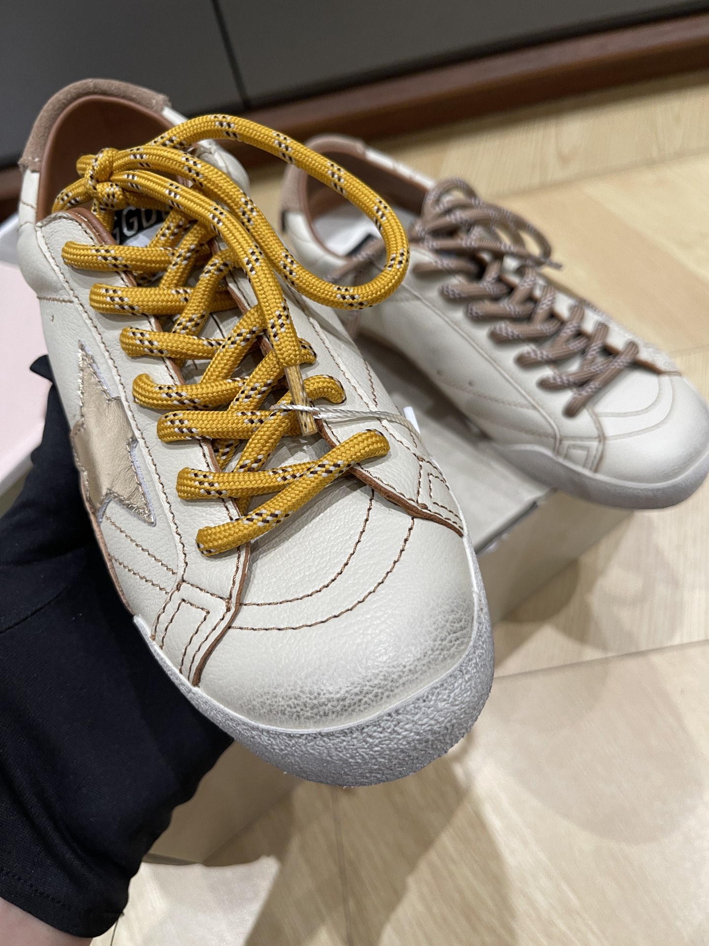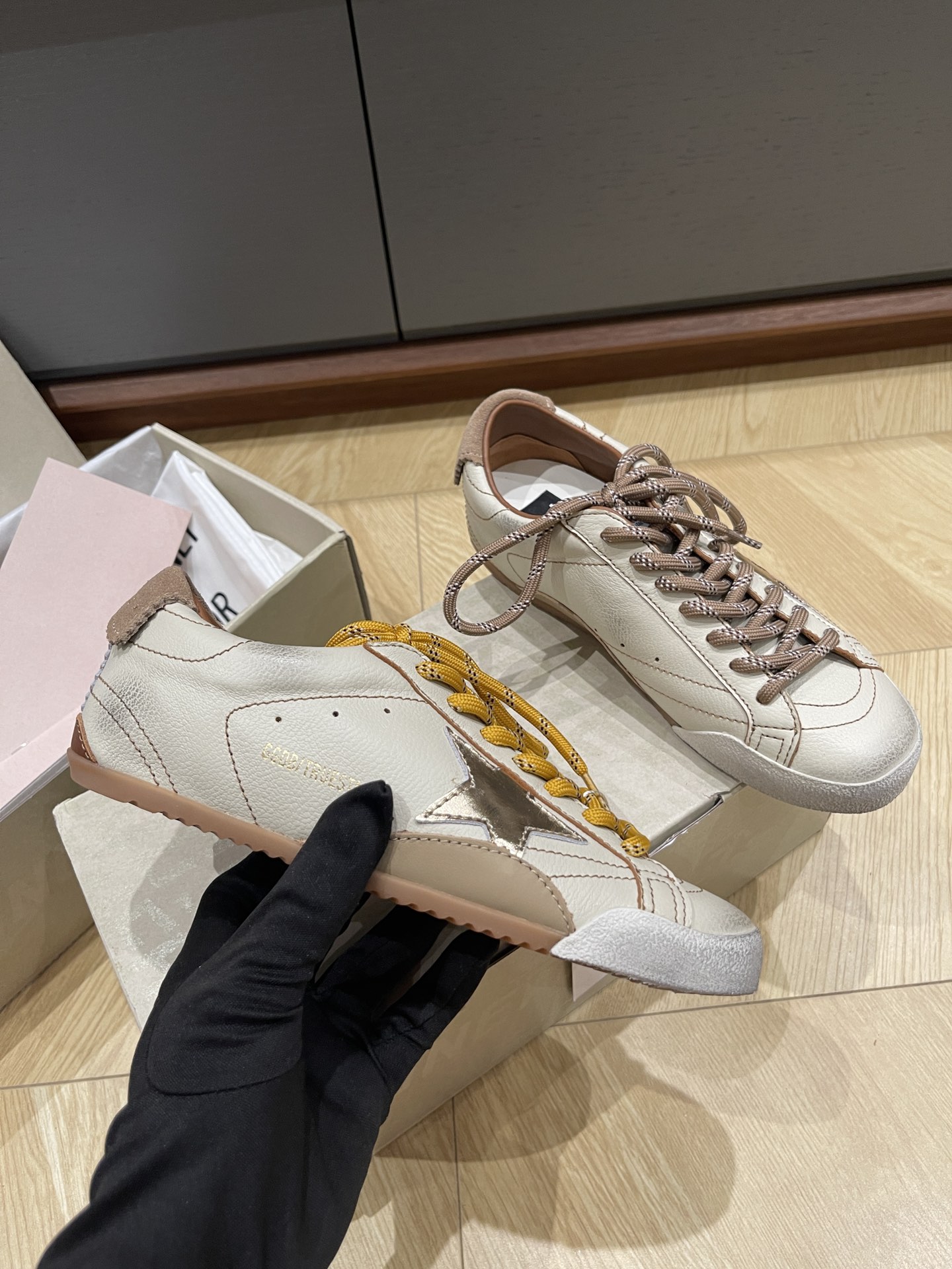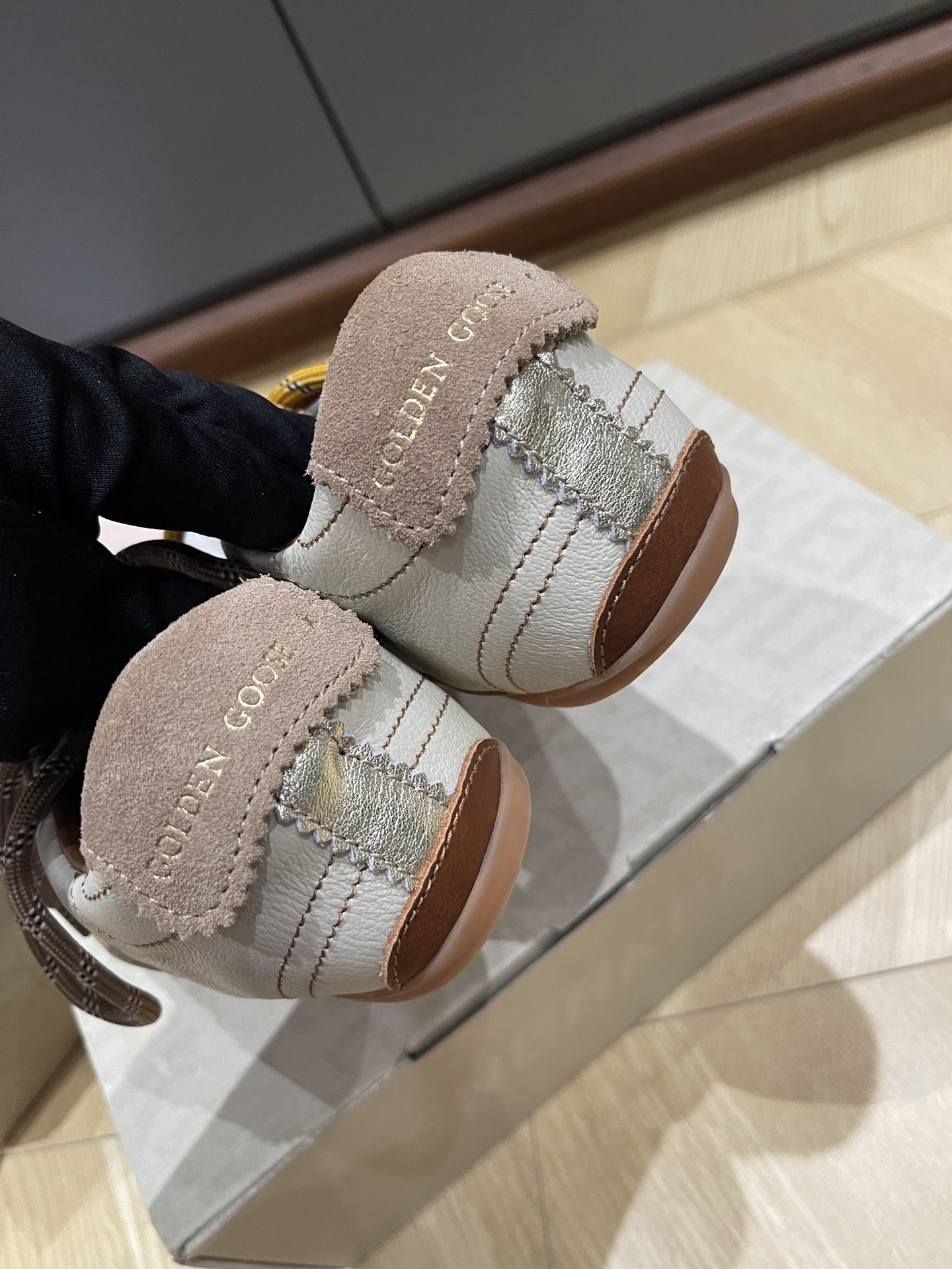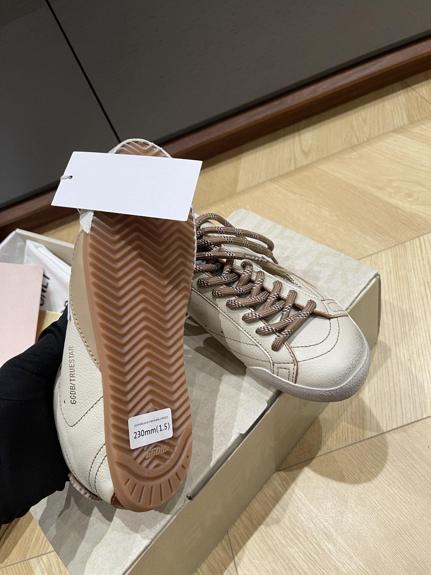 这款鞋子是AAAAA 1:1 质量 (非常棒). 使用了和原版一模一样的材料. 商标部分也保持了和Golden Goose一样. 图片拍摄是实物鞋子拍摄, 您所收到的实物保证和我们图片一模一样.