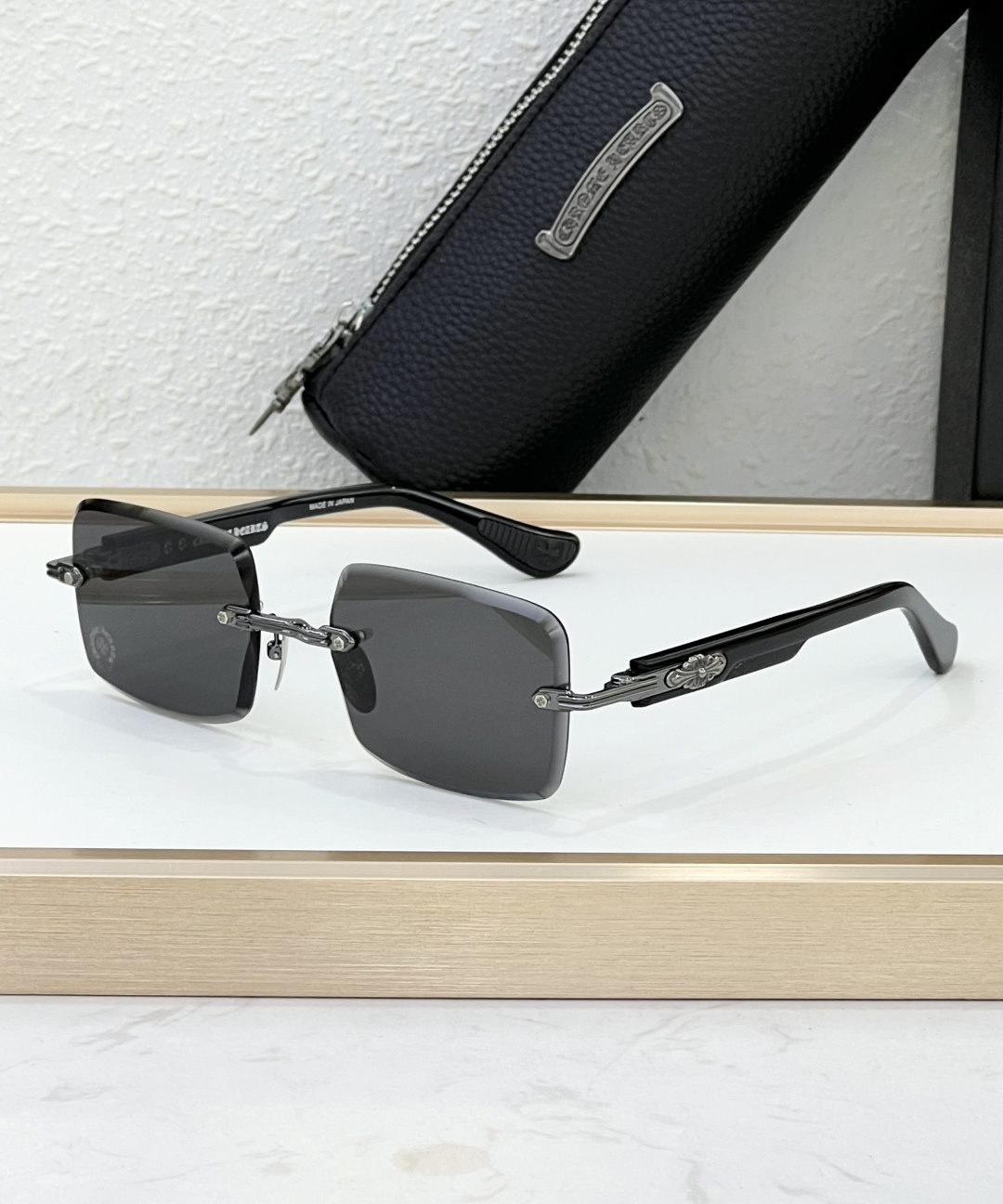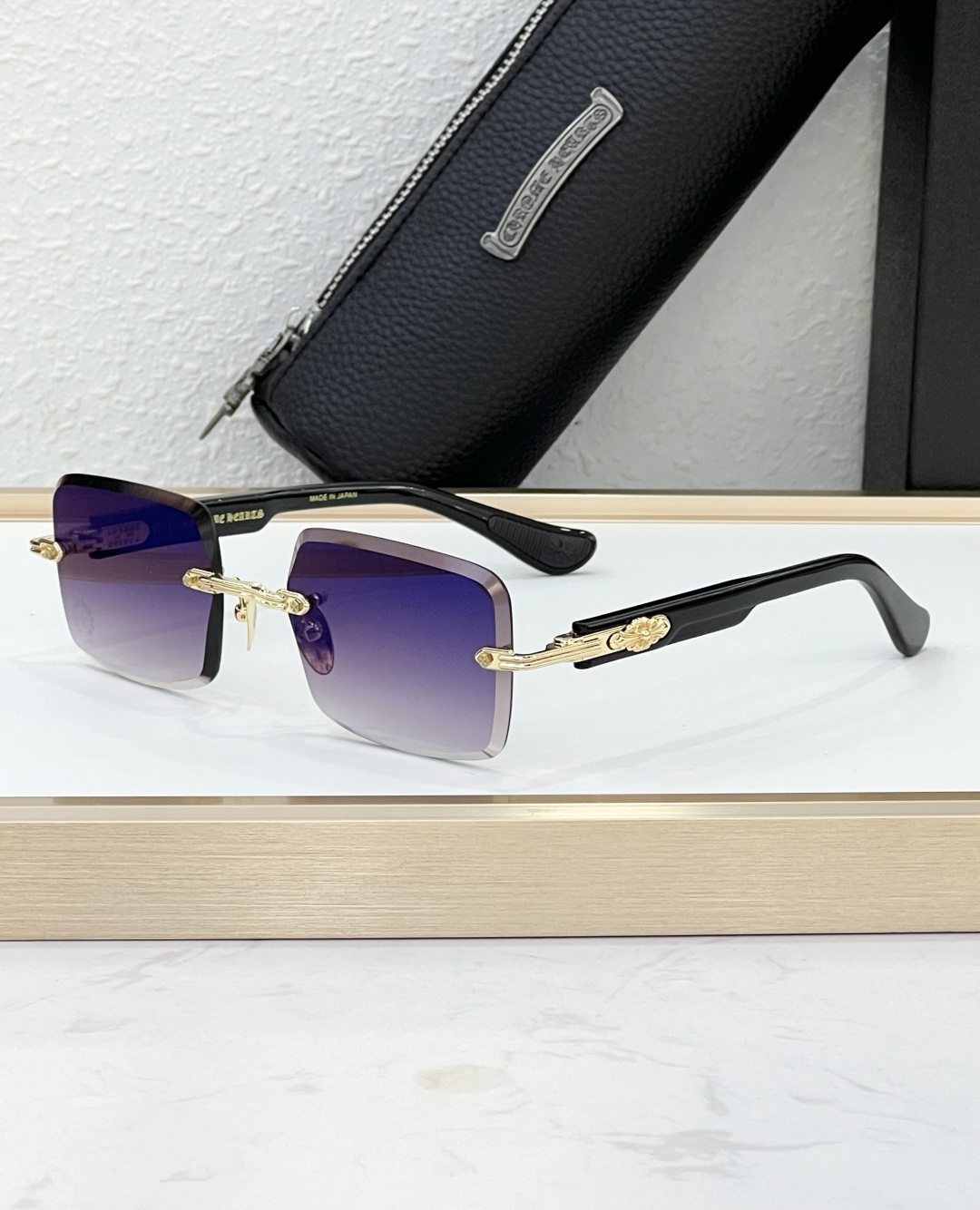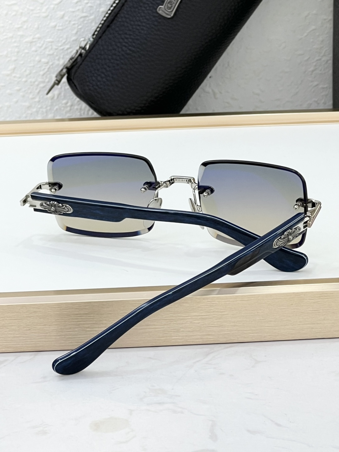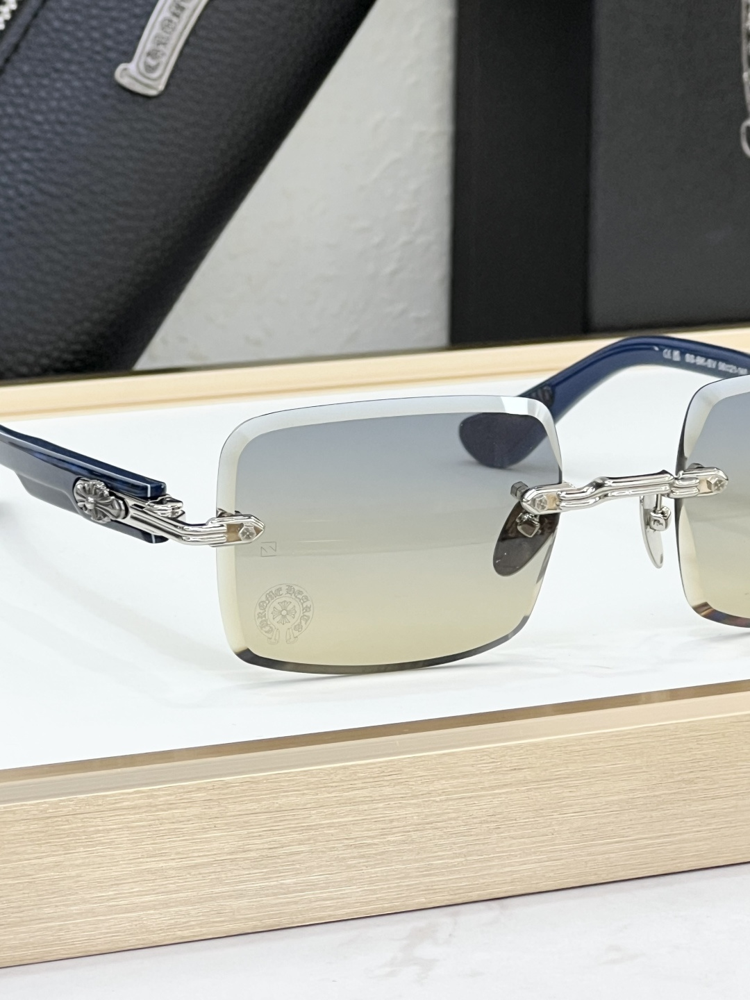 这款太阳眼镜是AAAAA 1:1 质量 (非常棒). 使用了和原版一模一样的材料. 商标部分也保持了和克罗心/Chrome Hearts一样. 图片拍摄是实物太阳眼镜拍摄, 您所收到的实物保证和我们图片一模一样.