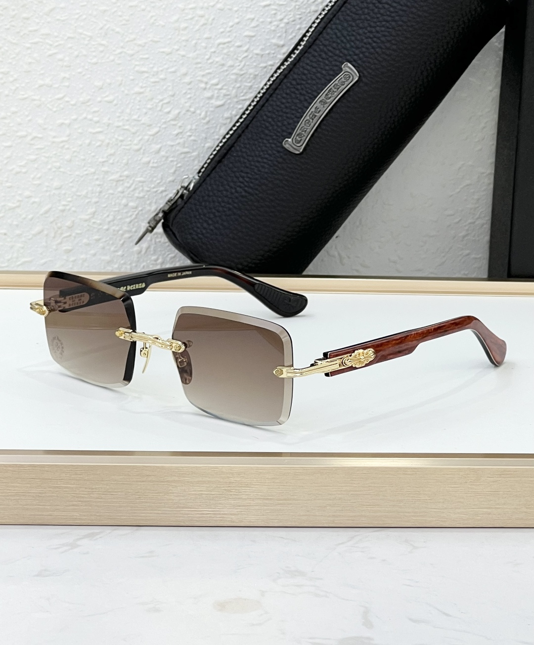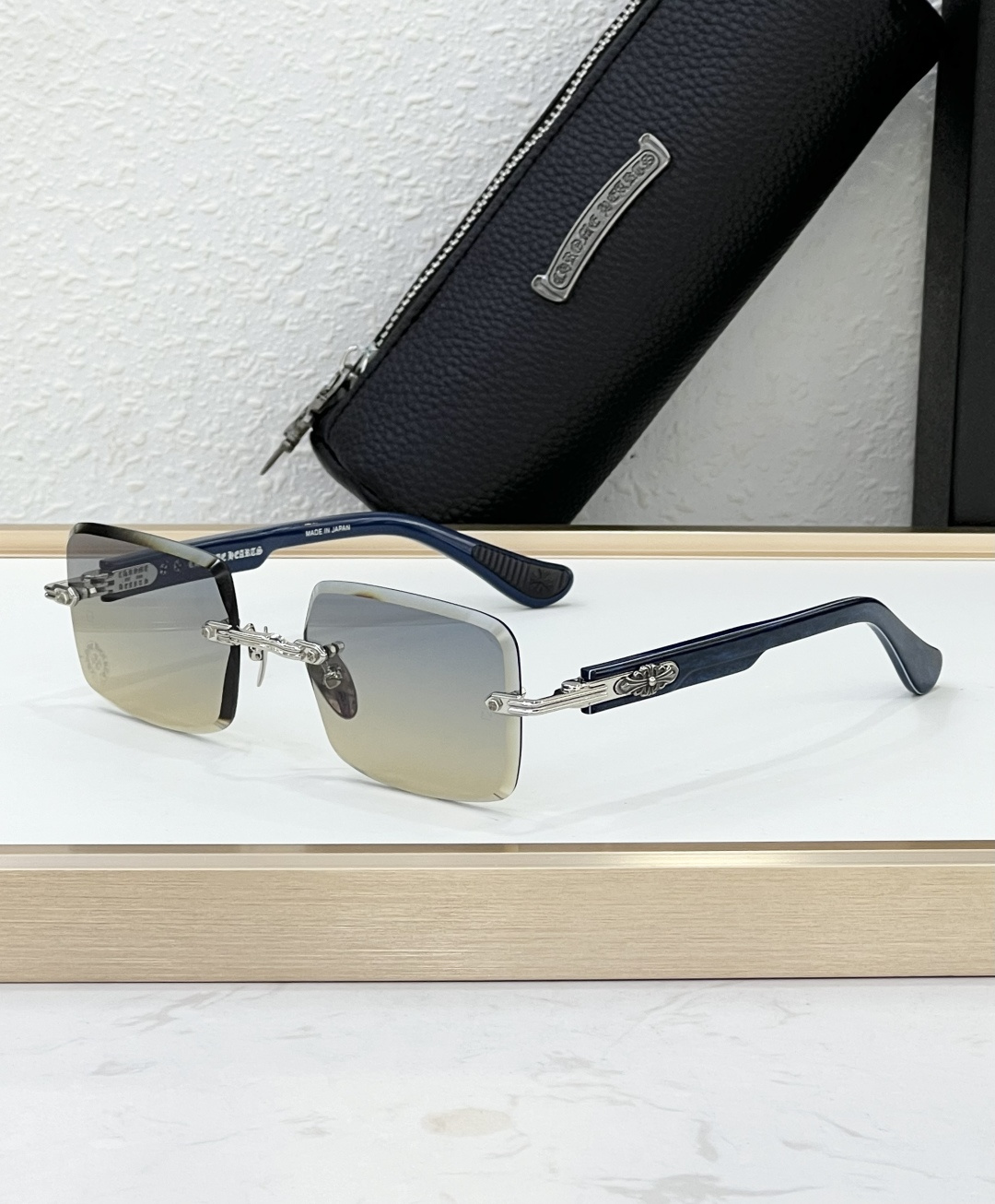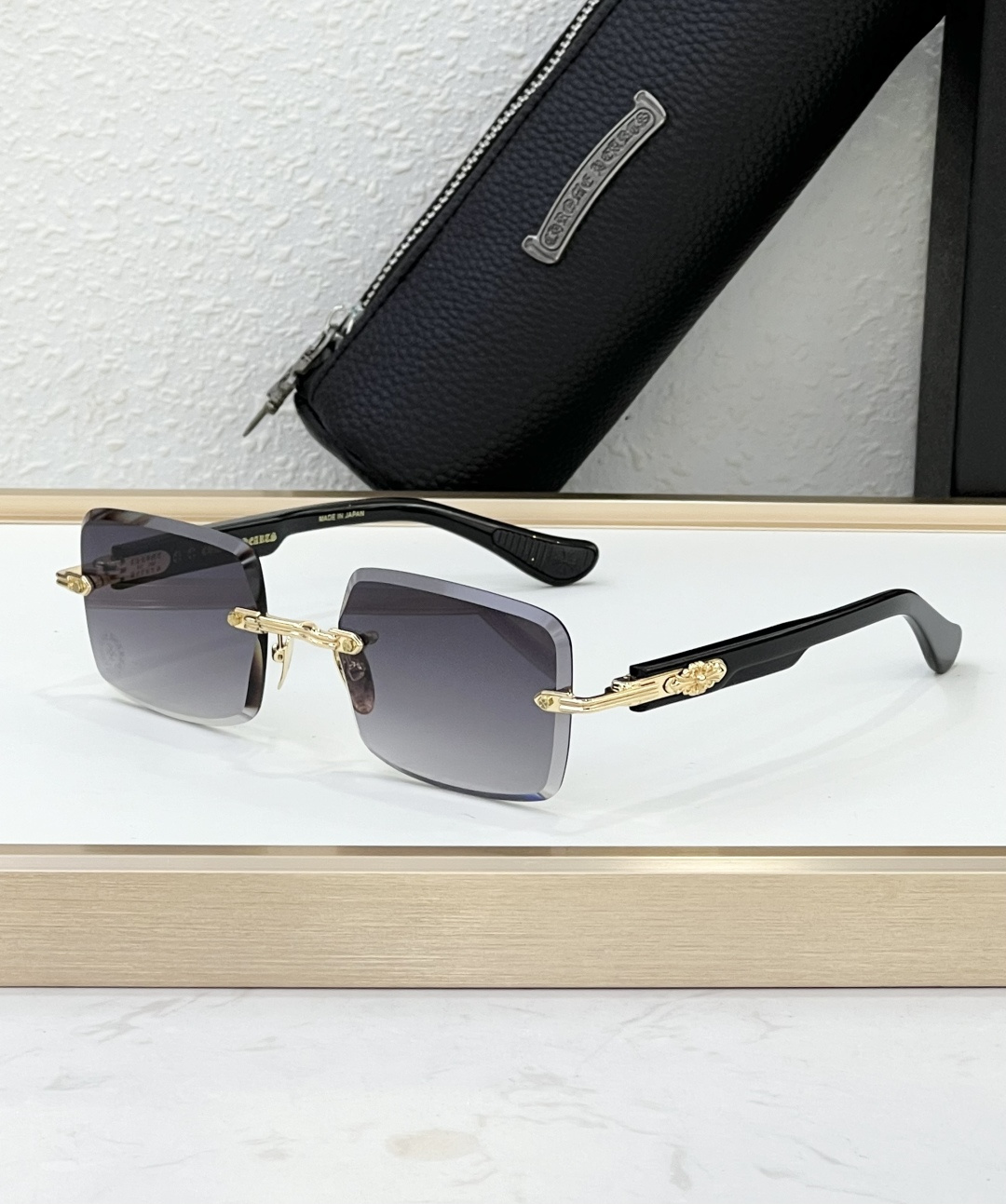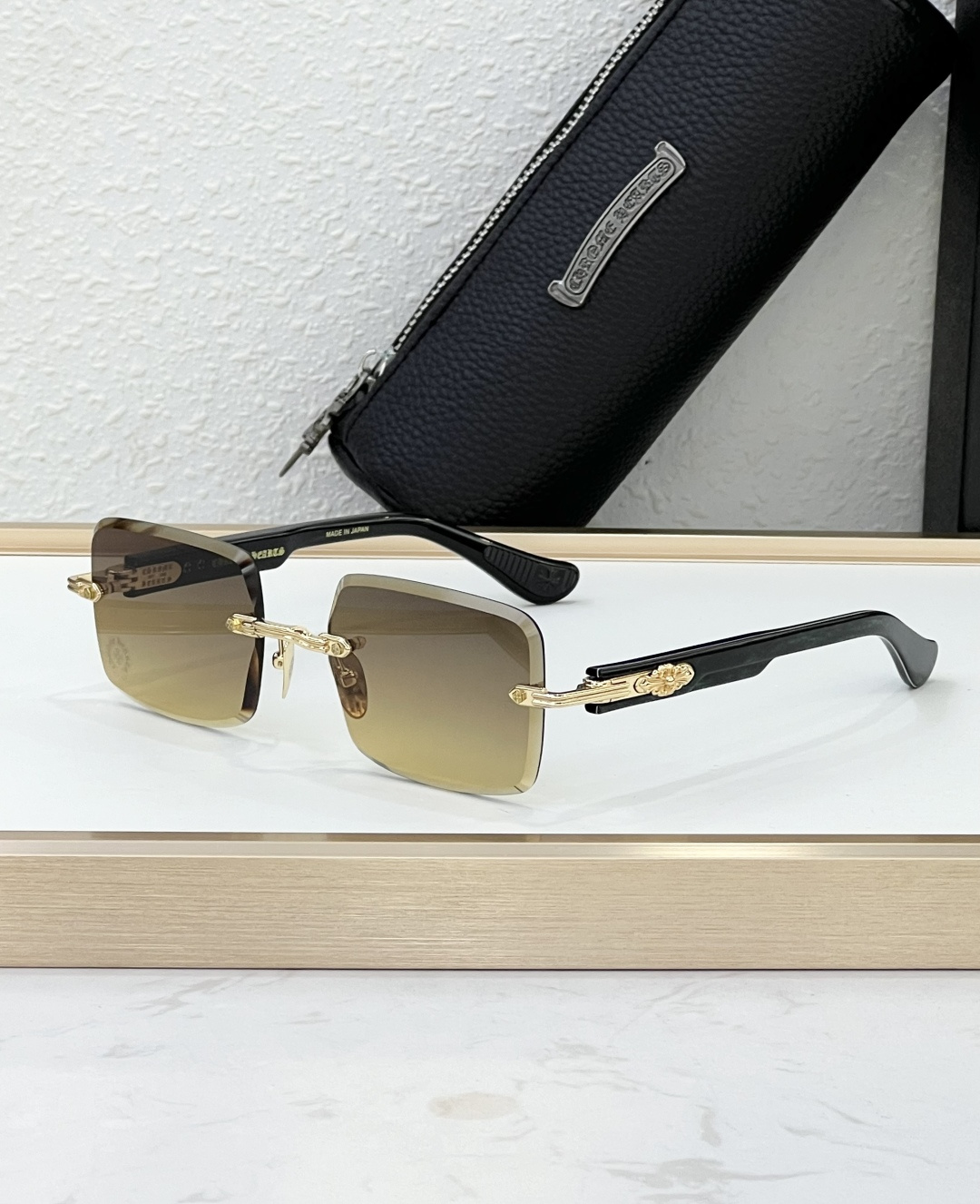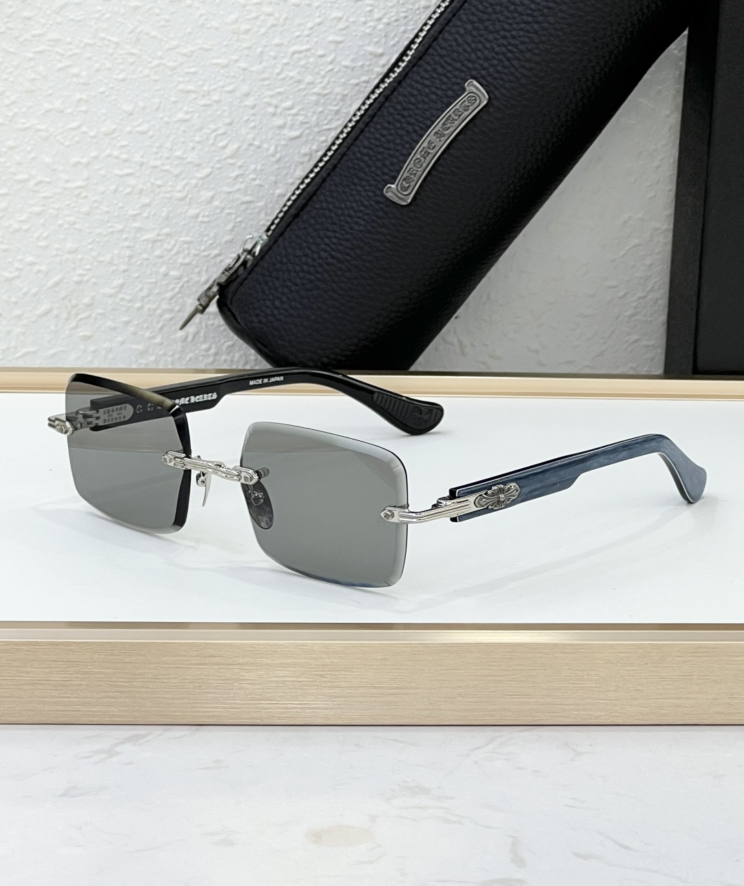 这款太阳眼镜是AAAAA 1:1 质量 (非常棒). 使用了和原版一模一样的材料. 商标部分也保持了和克罗心/Chrome Hearts一样. 图片拍摄是实物太阳眼镜拍摄, 您所收到的实物保证和我们图片一模一样.