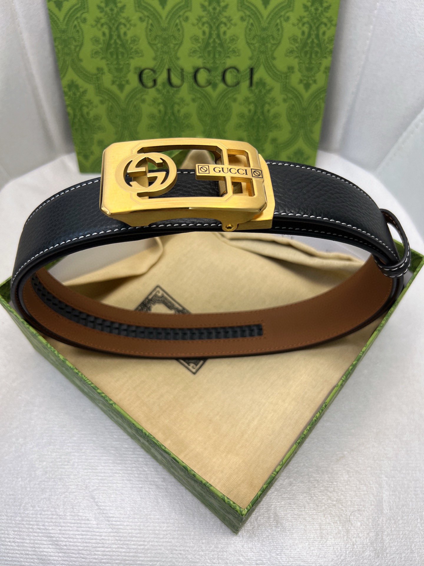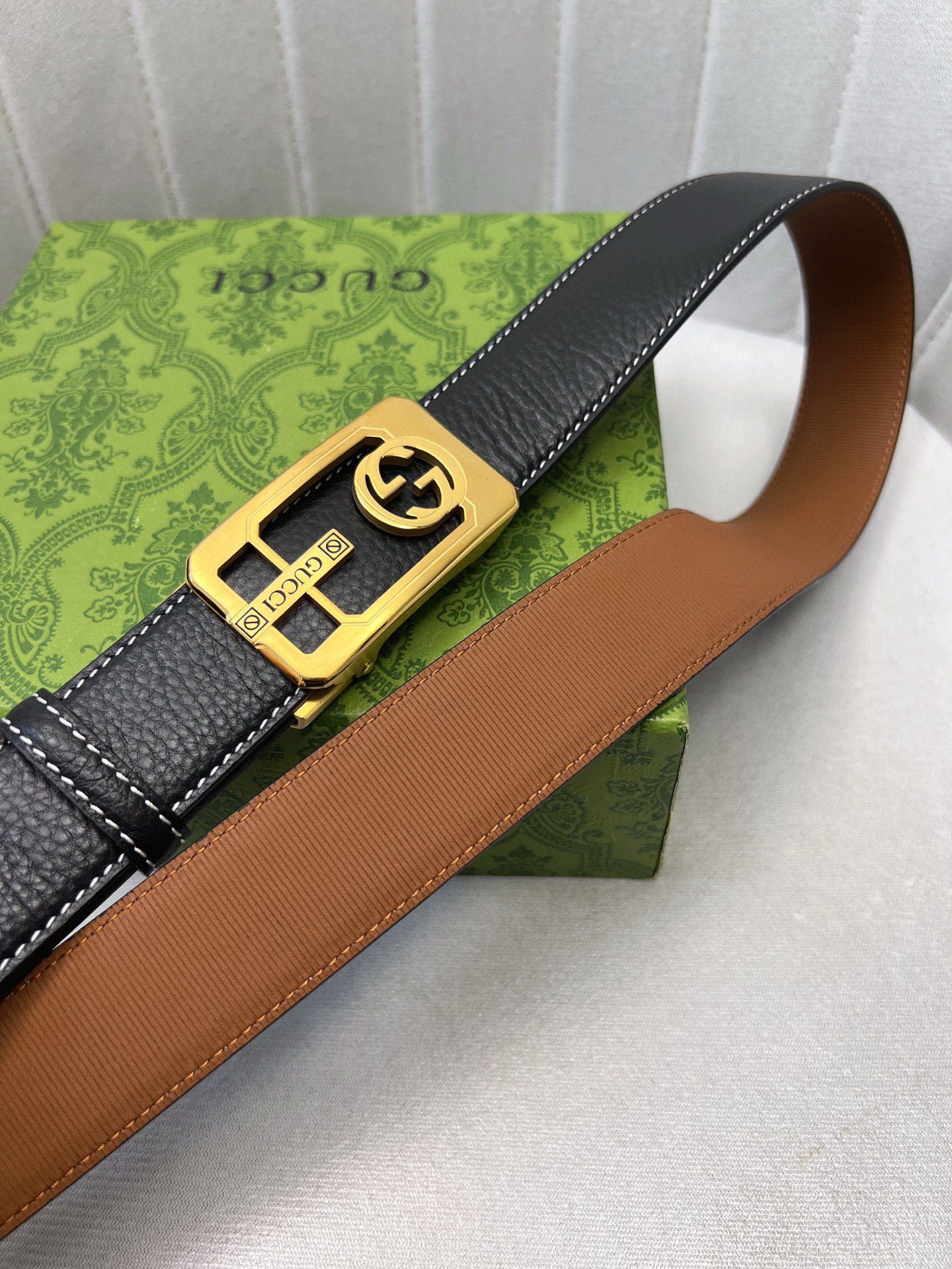 这款皮带是AAAAA 1:1 质量 (非常棒). 使用了和原版一模一样的材料. 商标部分也保持了和古奇/Gucci一样. 图片拍摄是实物皮带拍摄, 您所收到的实物保证和我们图片一模一样.
