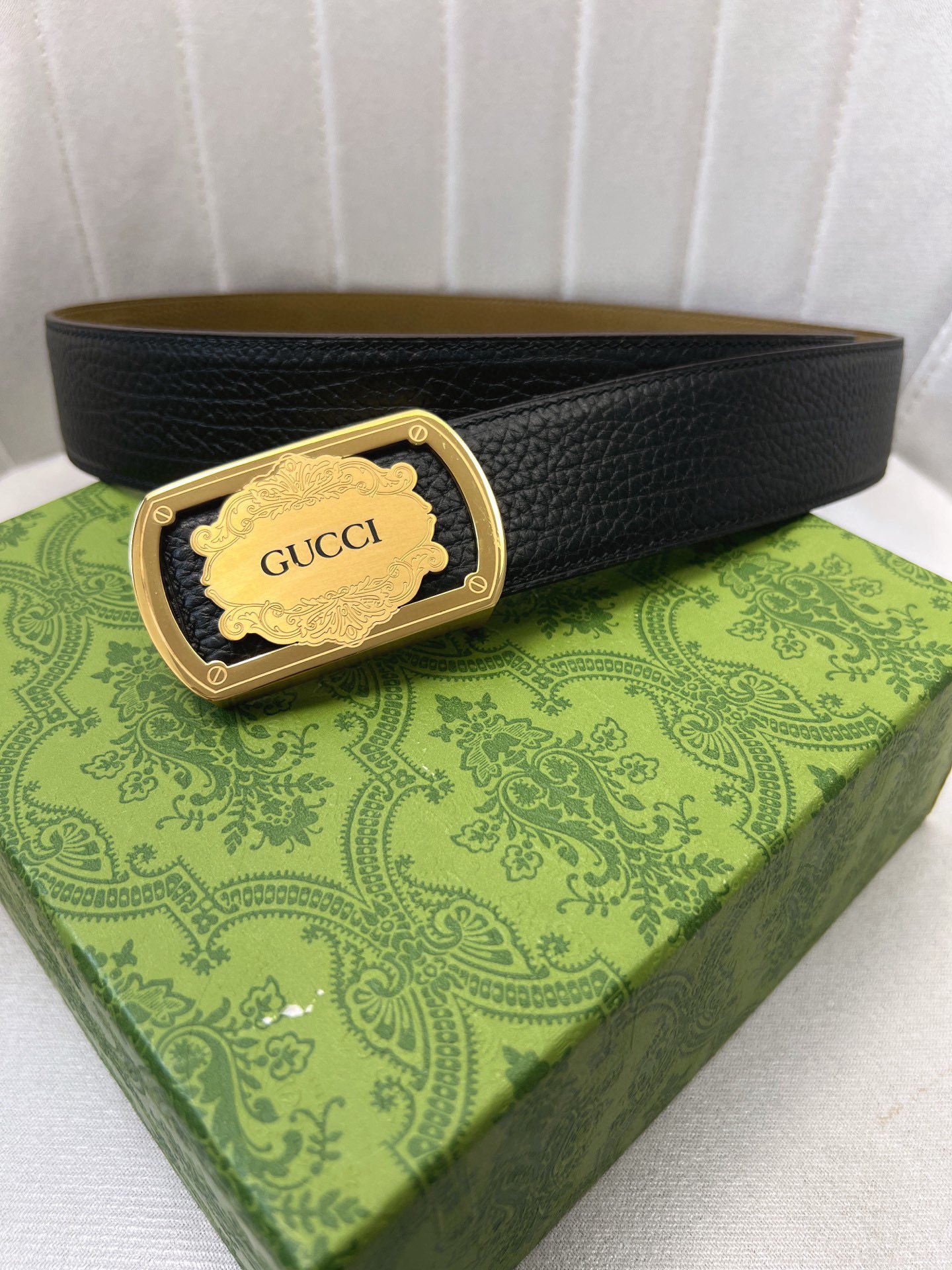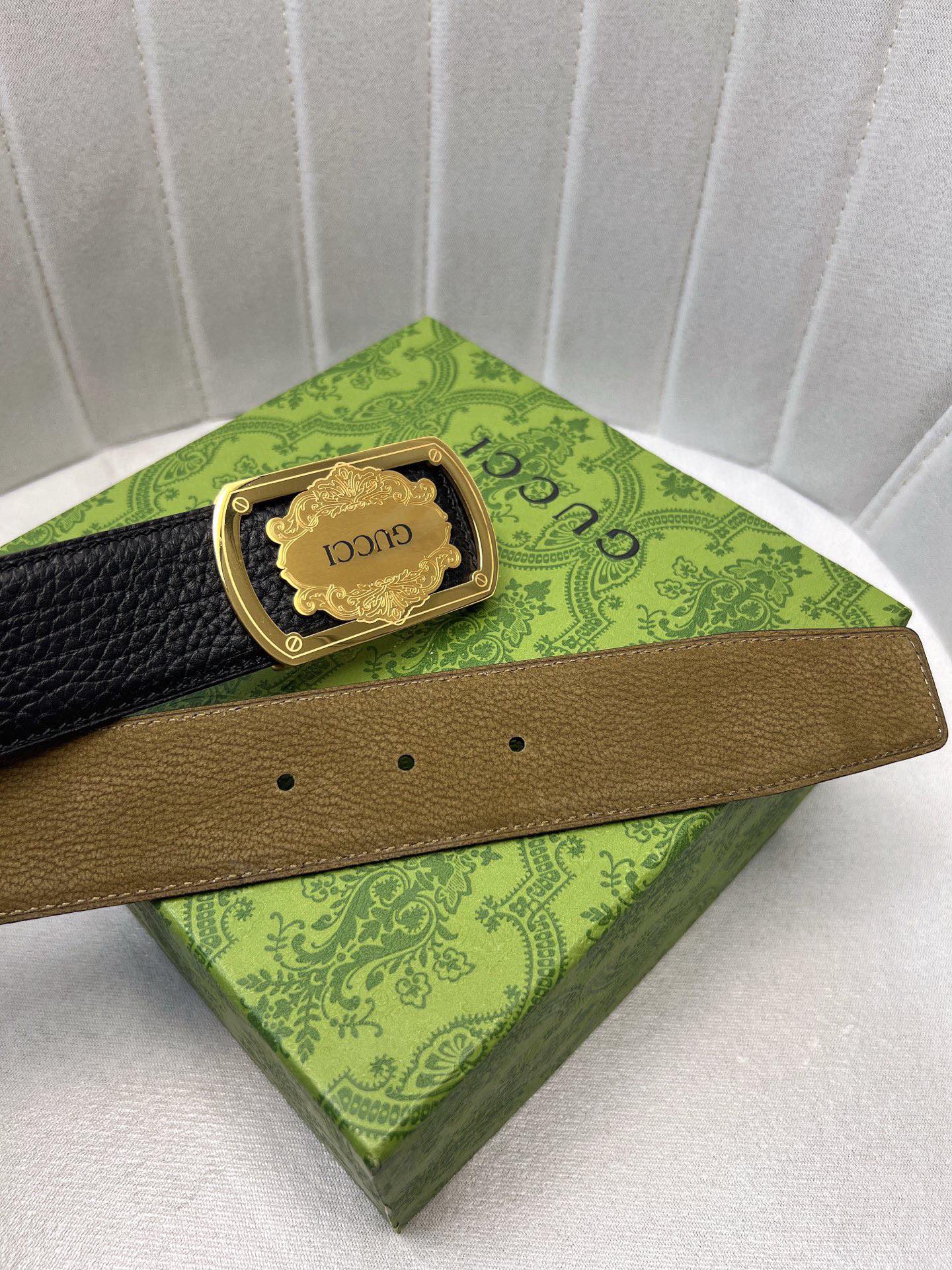 这款皮带是AAAAA 1:1 质量 (非常棒). 使用了和原版一模一样的材料. 商标部分也保持了和古奇/Gucci一样. 图片拍摄是实物皮带拍摄, 您所收到的实物保证和我们图片一模一样.