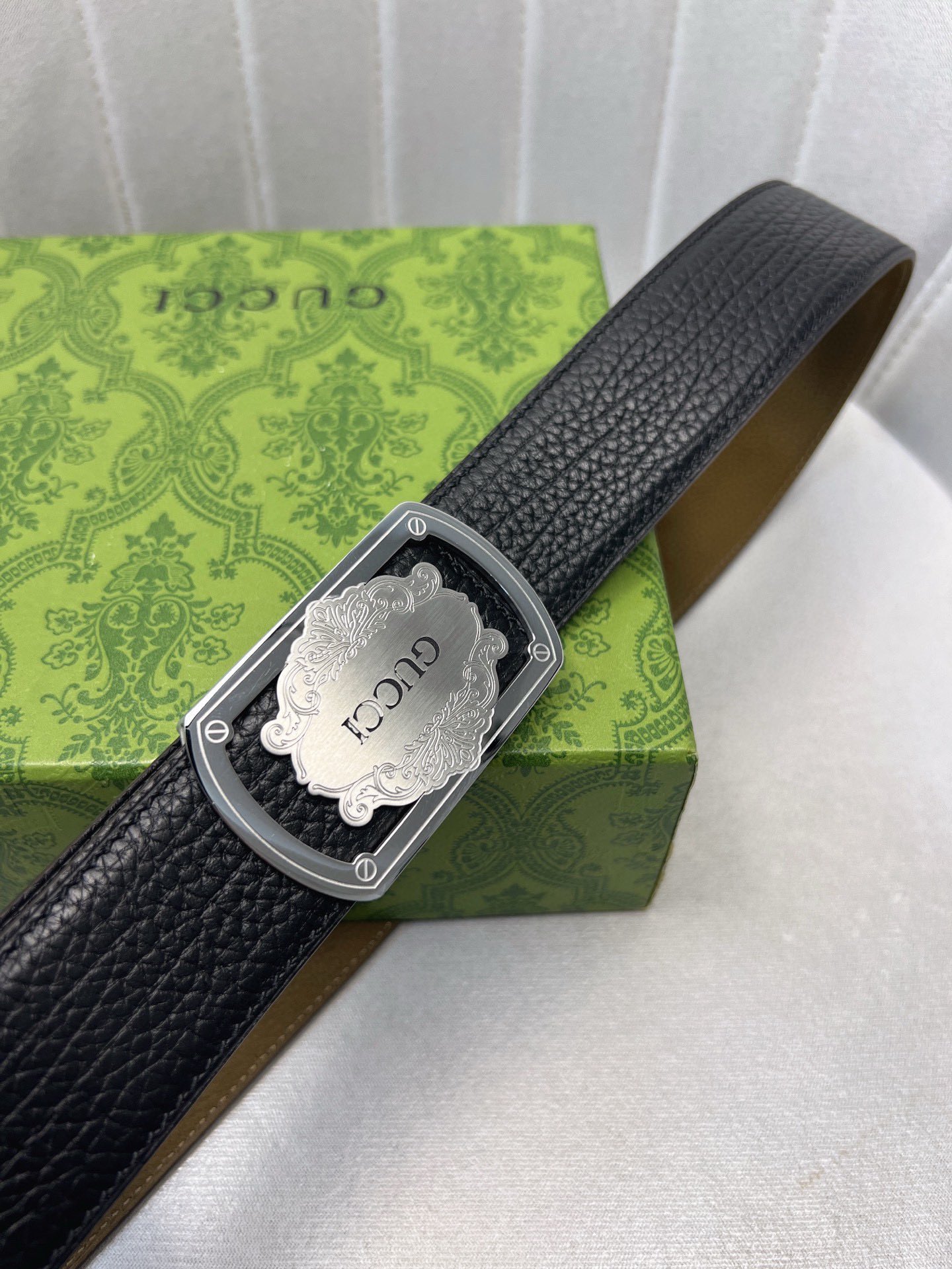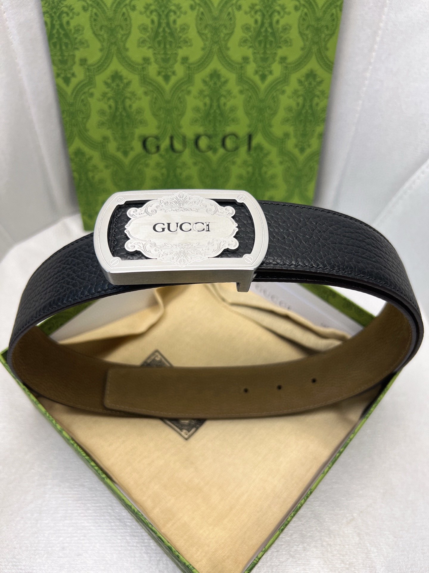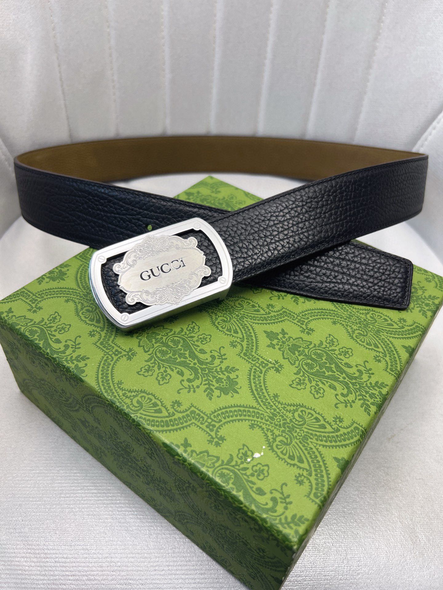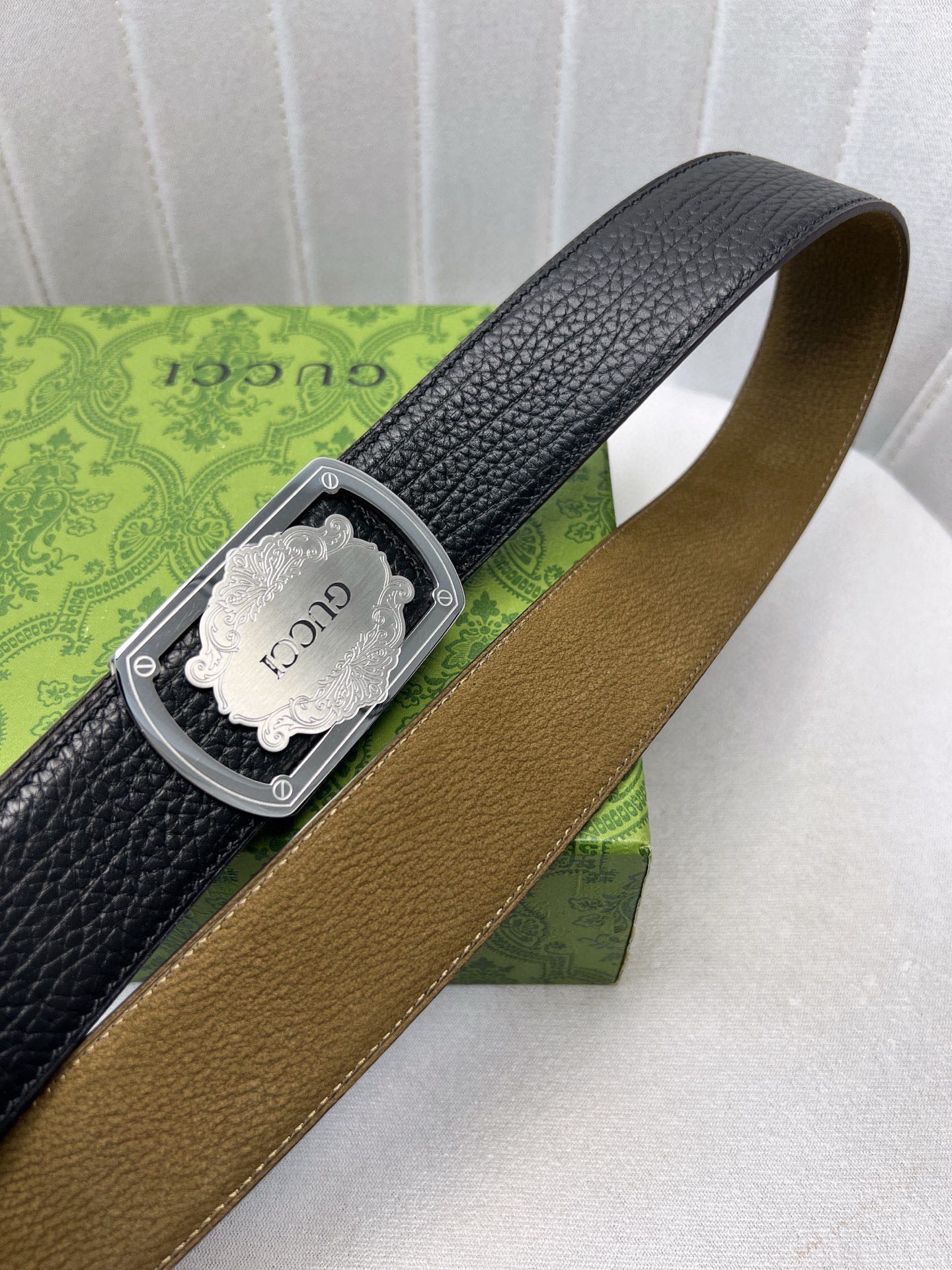 这款皮带是AAAAA 1:1 质量 (非常棒). 使用了和原版一模一样的材料. 商标部分也保持了和古奇/Gucci一样. 图片拍摄是实物皮带拍摄, 您所收到的实物保证和我们图片一模一样.