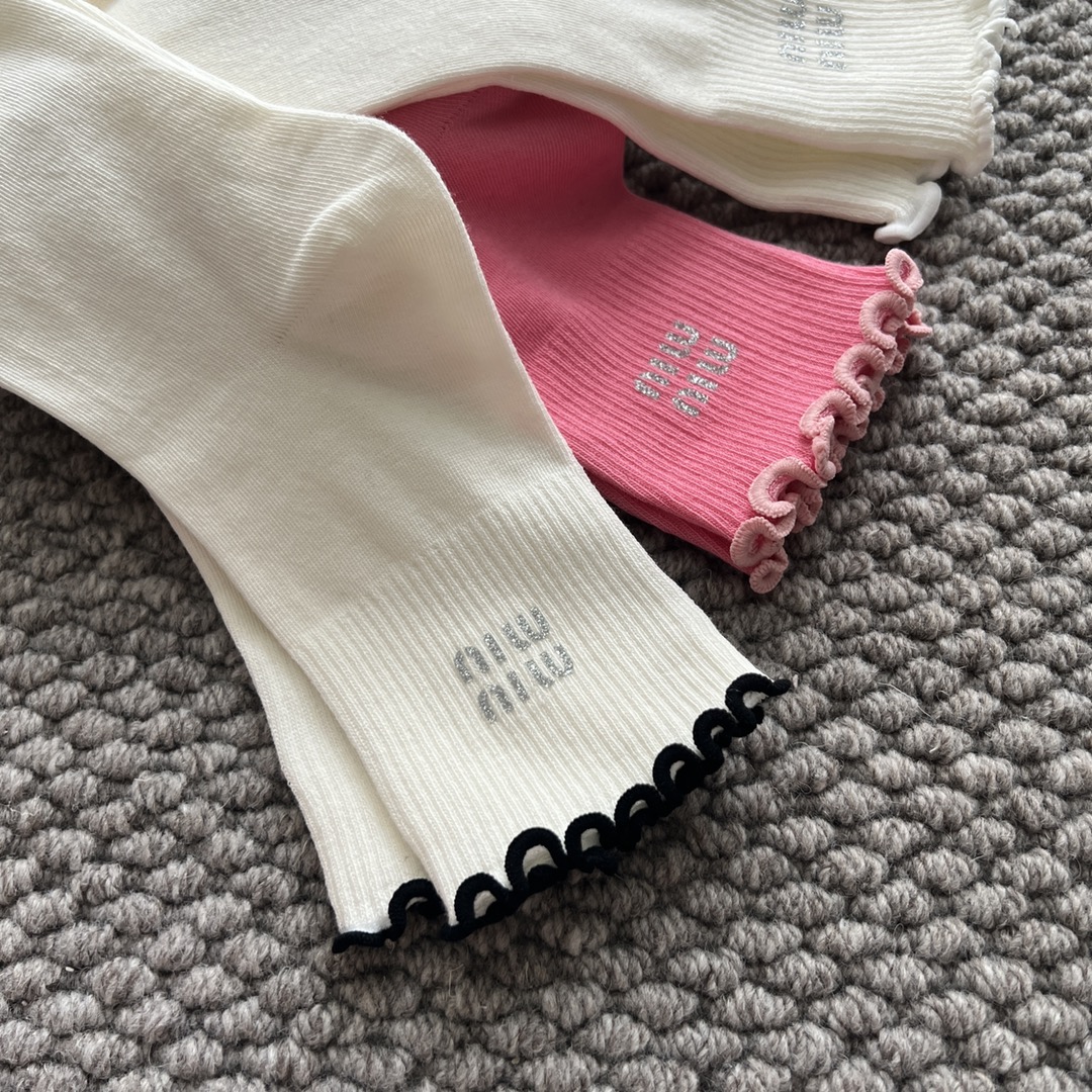 这款sock是AAAAA 1:1 质量 (非常棒). 使用了和原版一模一样的材料. 商标部分也保持了和缪缪/Miu Miu一样. 图片拍摄是实物sock拍摄, 您所收到的实物保证和我们图片一模一样.