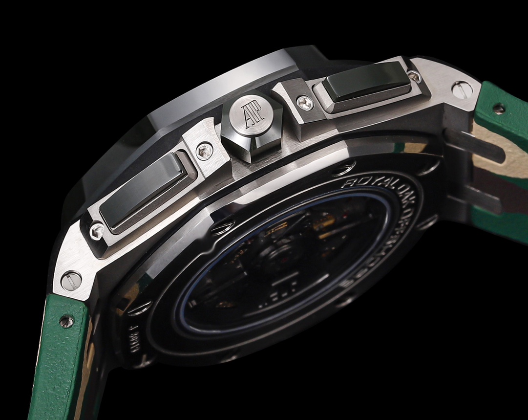 这款手表是AAAAA 1:1 质量 (非常棒). 使用了和原版一模一样的材料. 商标部分也保持了和爱彼/Audemars Piguet一样. 图片拍摄是实物手表拍摄, 您所收到的实物保证和我们图片一模一样.