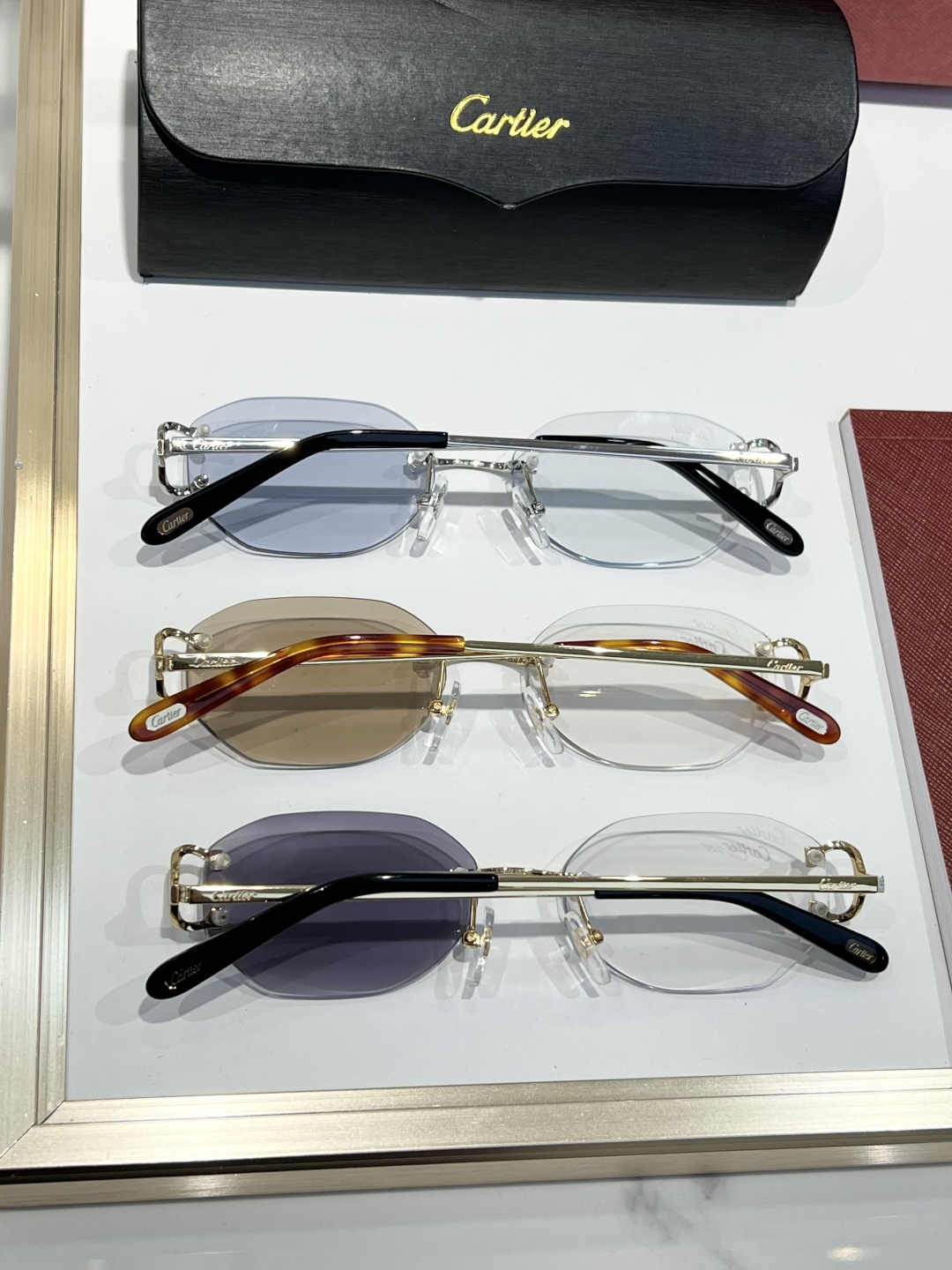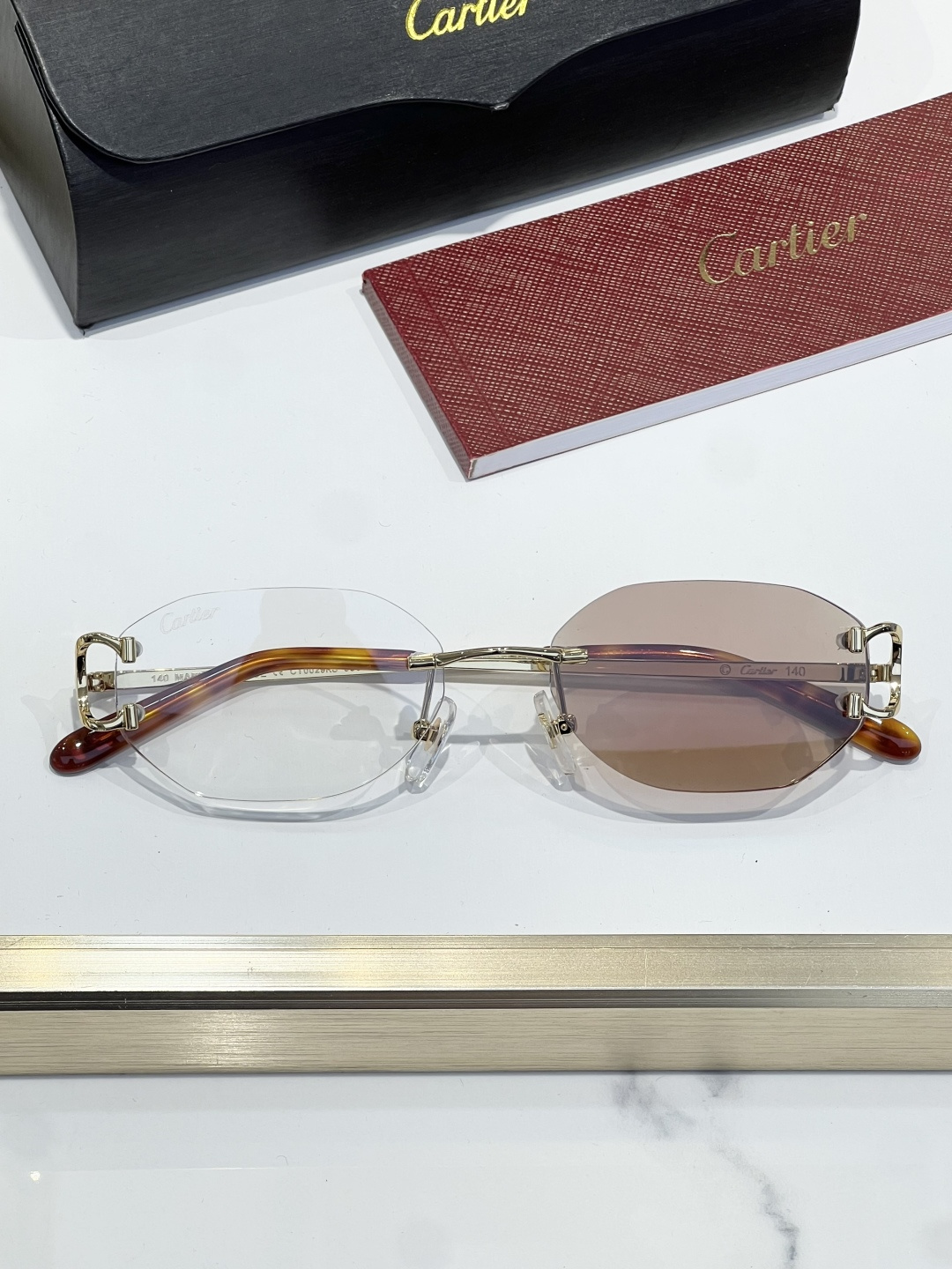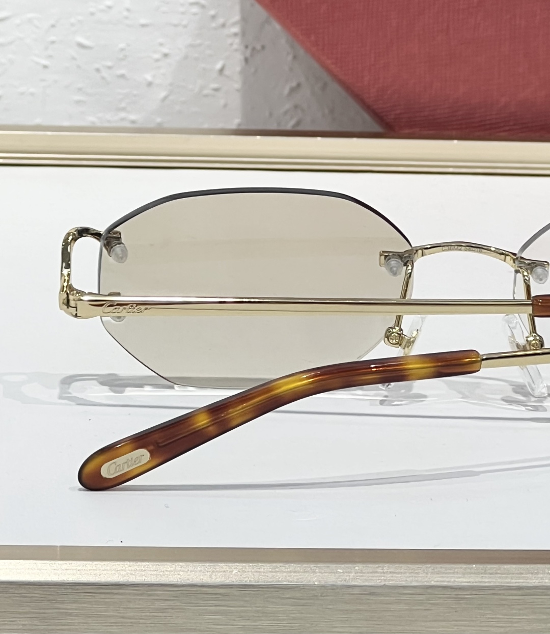 这款太阳眼镜是AAAAA 1:1 质量 (非常棒). 使用了和原版一模一样的材料. 商标部分也保持了和卡地亚/Cartier一样. 图片拍摄是实物太阳眼镜拍摄, 您所收到的实物保证和我们图片一模一样.