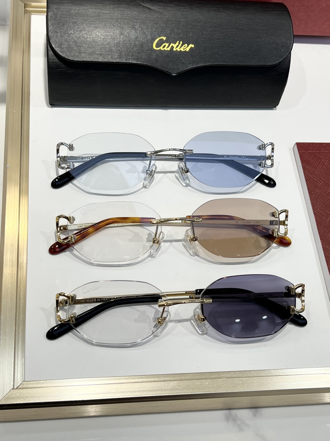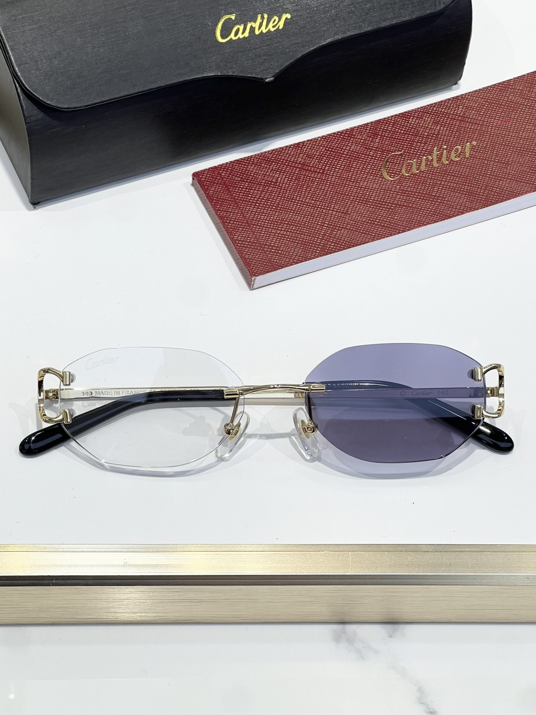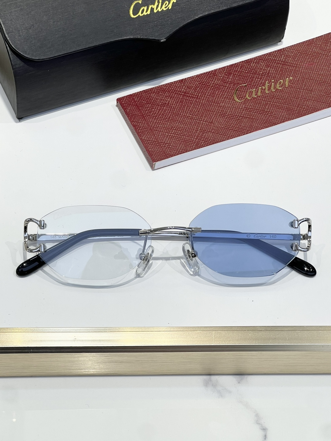 这款太阳眼镜是AAAAA 1:1 质量 (非常棒). 使用了和原版一模一样的材料. 商标部分也保持了和卡地亚/Cartier一样. 图片拍摄是实物太阳眼镜拍摄, 您所收到的实物保证和我们图片一模一样.