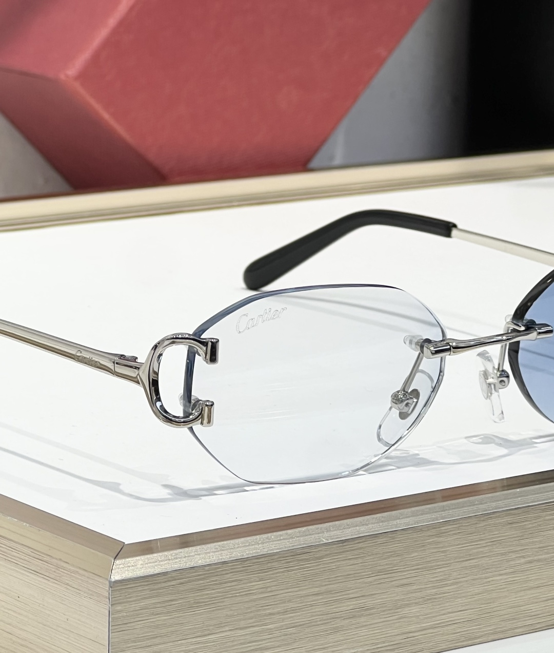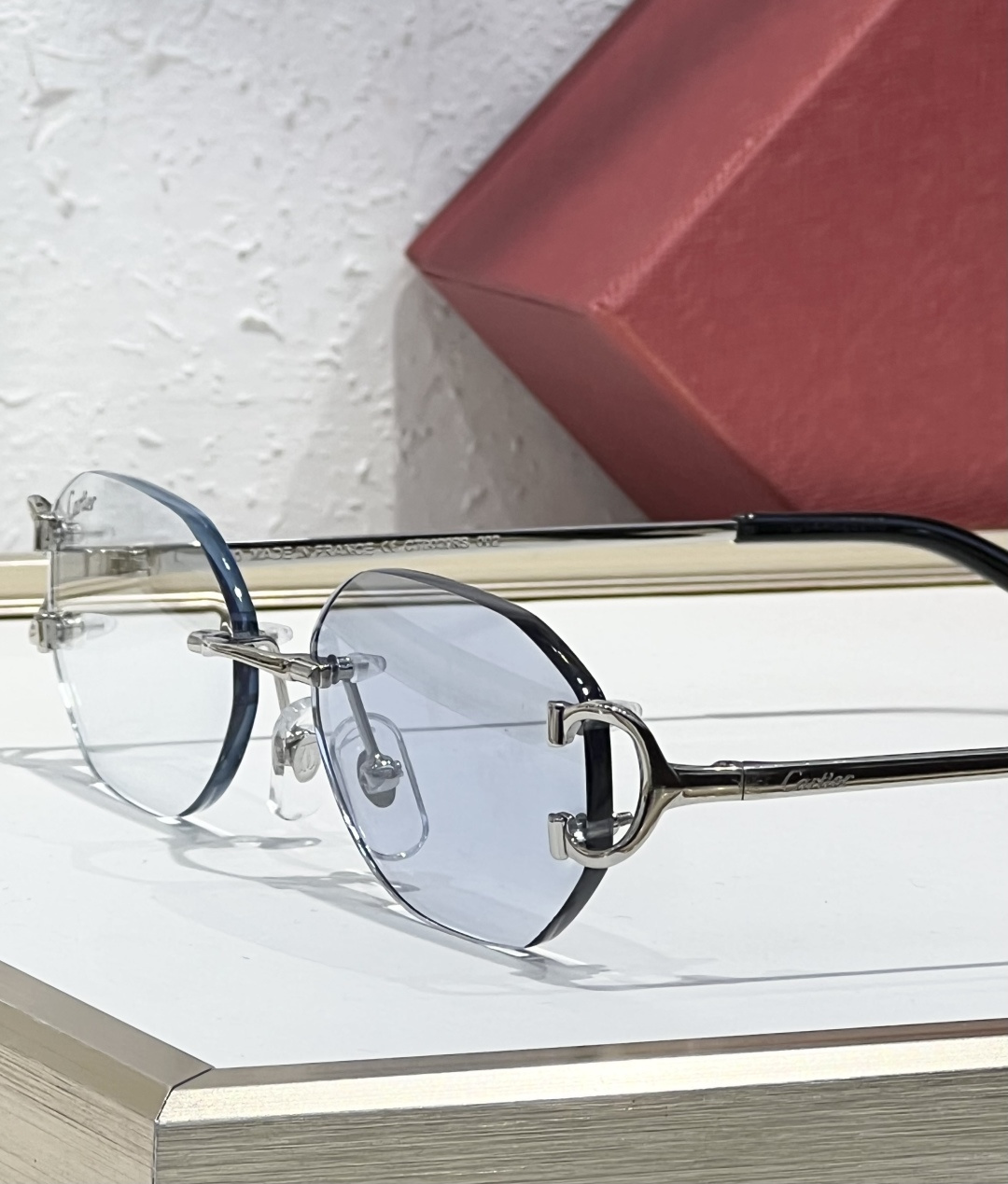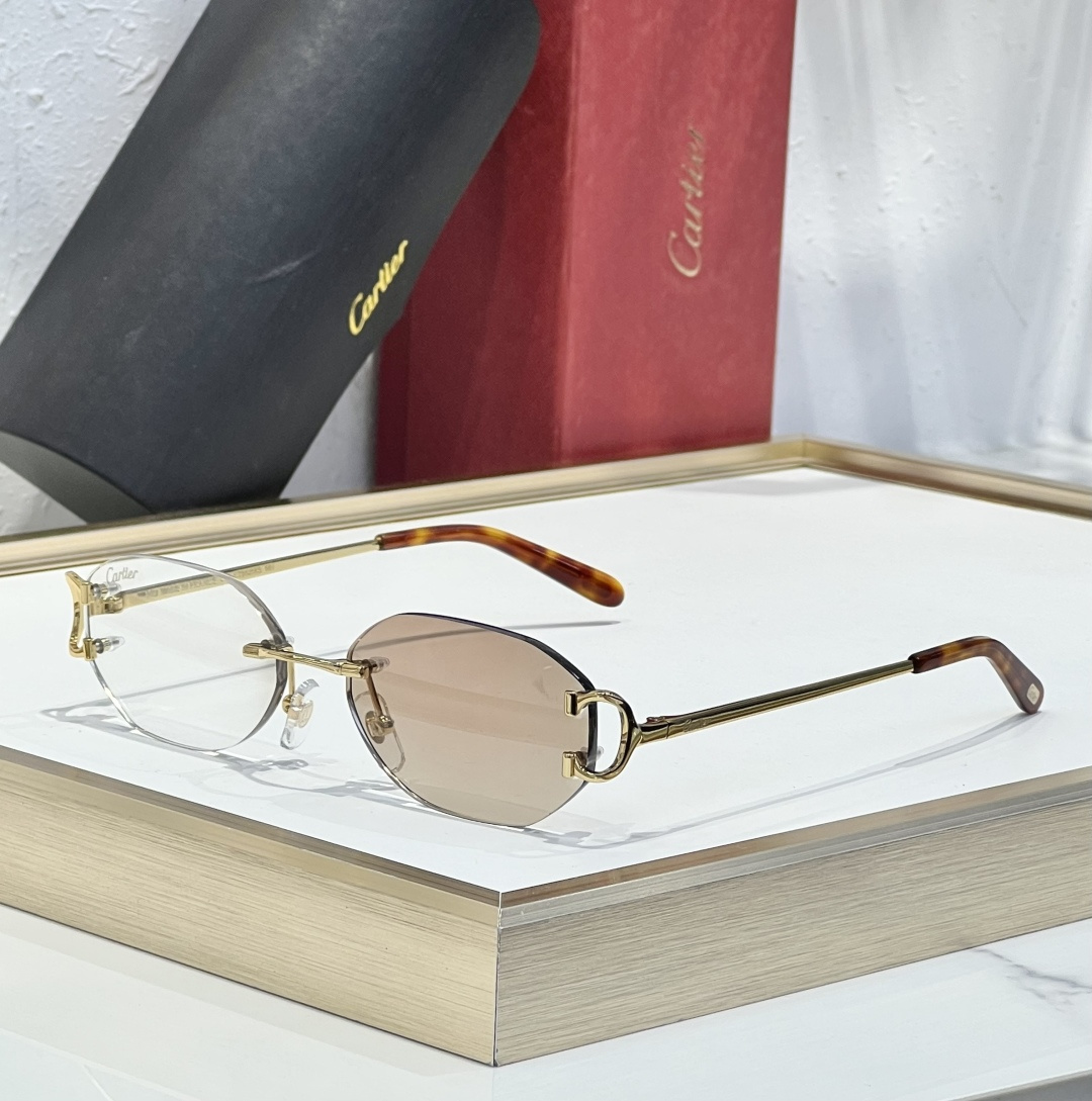 这款太阳眼镜是AAAAA 1:1 质量 (非常棒). 使用了和原版一模一样的材料. 商标部分也保持了和卡地亚/Cartier一样. 图片拍摄是实物太阳眼镜拍摄, 您所收到的实物保证和我们图片一模一样.