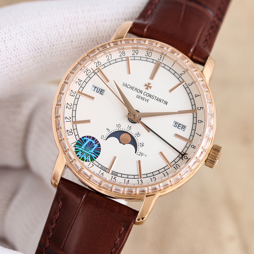 这款手表是AAAAA 1:1 质量 (非常棒). 使用了和原版一模一样的材料. 商标部分也保持了和百达翡丽/Patek Philippe一样. 图片拍摄是实物手表拍摄, 您所收到的实物保证和我们图片一模一样.