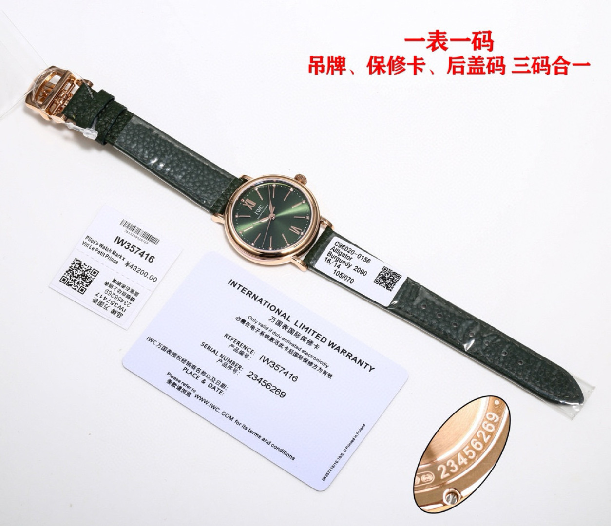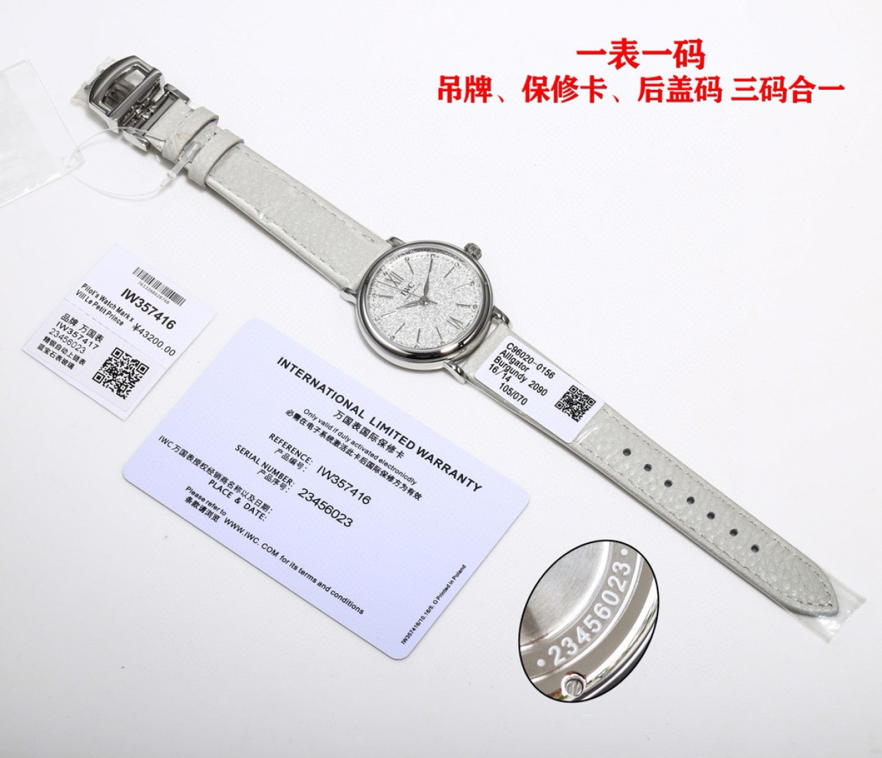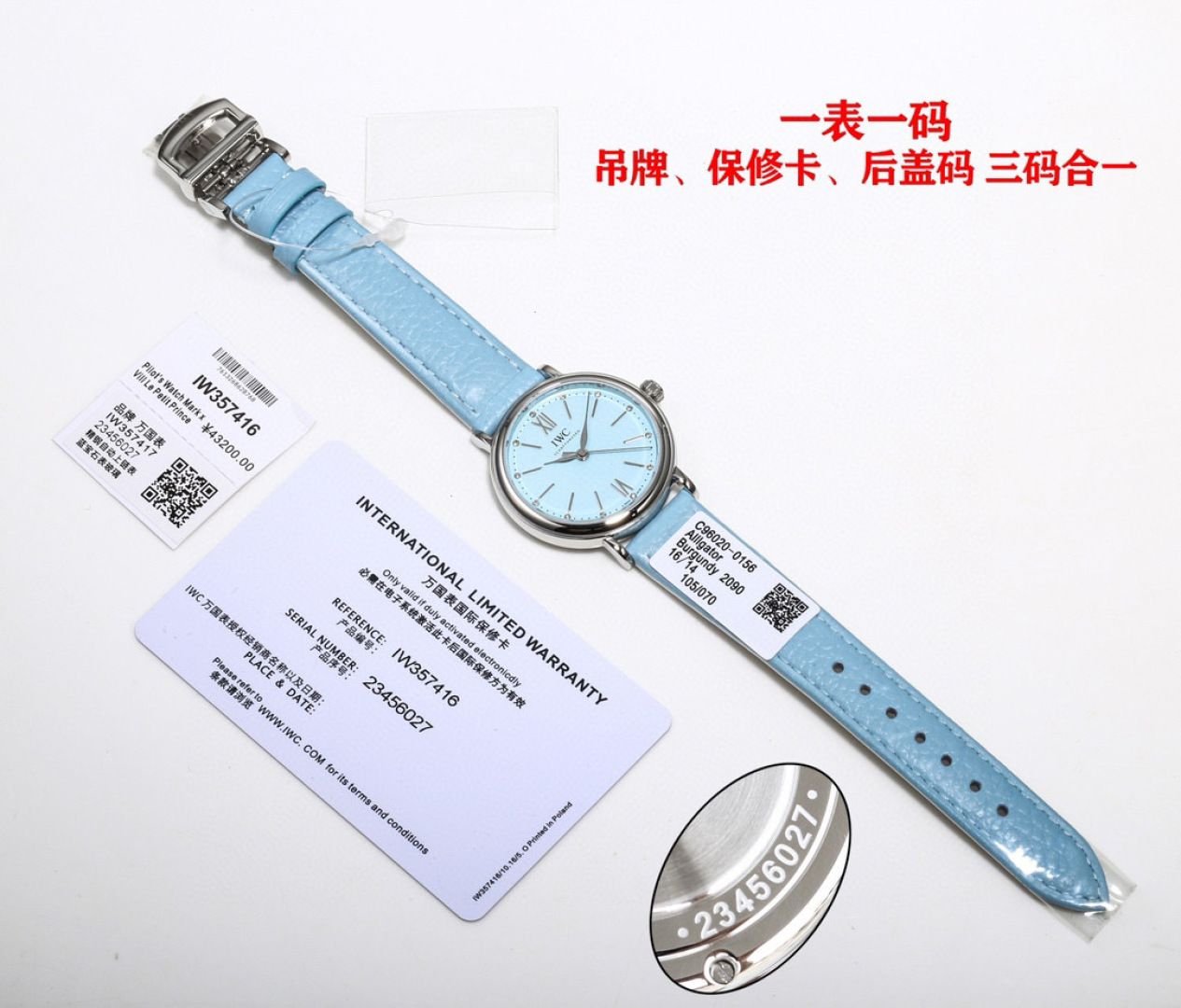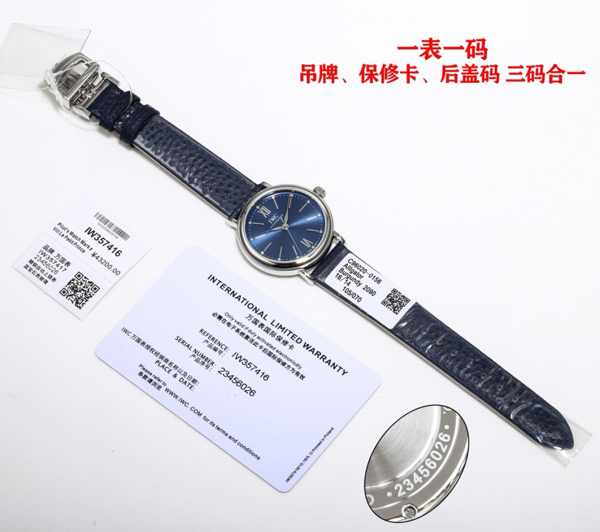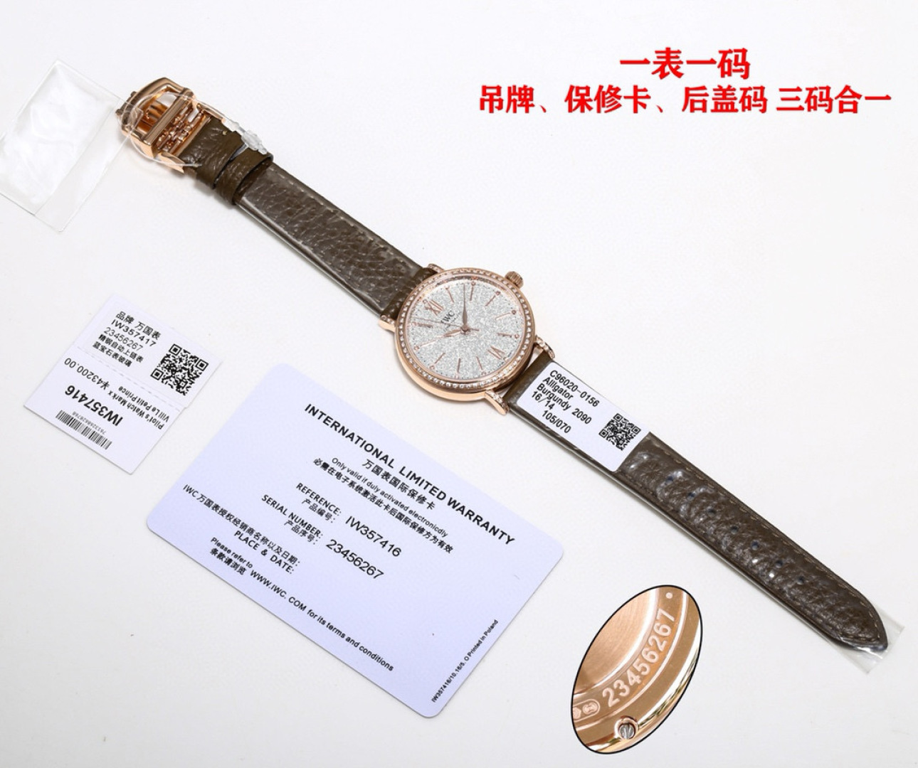 这款手表是AAAAA 1:1 质量 (非常棒). 使用了和原版一模一样的材料. 商标部分也保持了和万国表/IWC Schaffhausen一样. 图片拍摄是实物手表拍摄, 您所收到的实物保证和我们图片一模一样.