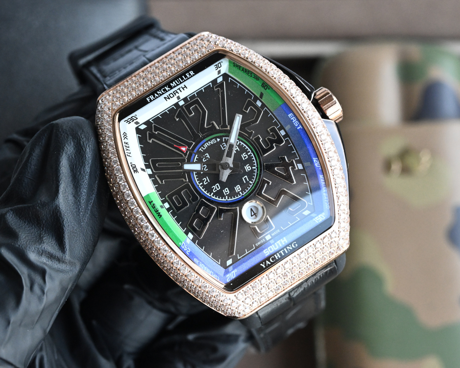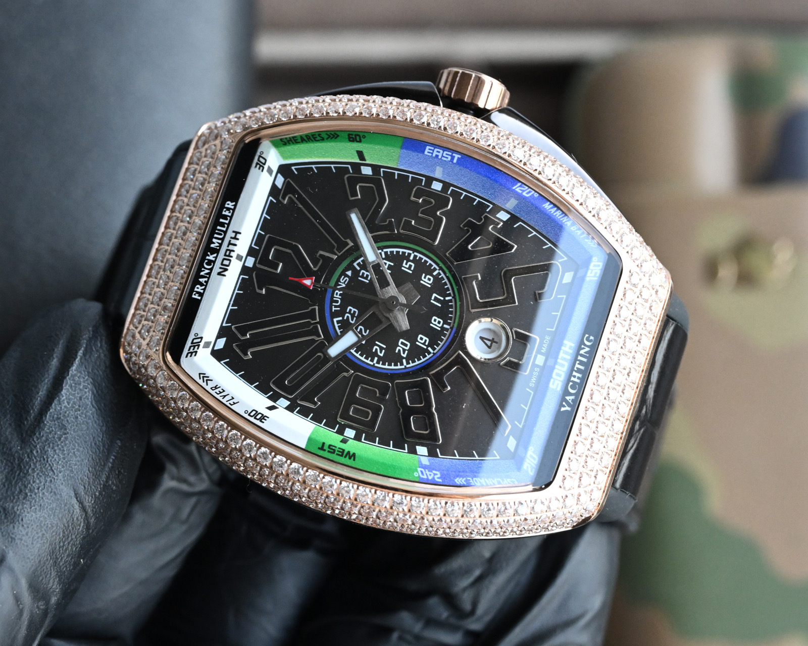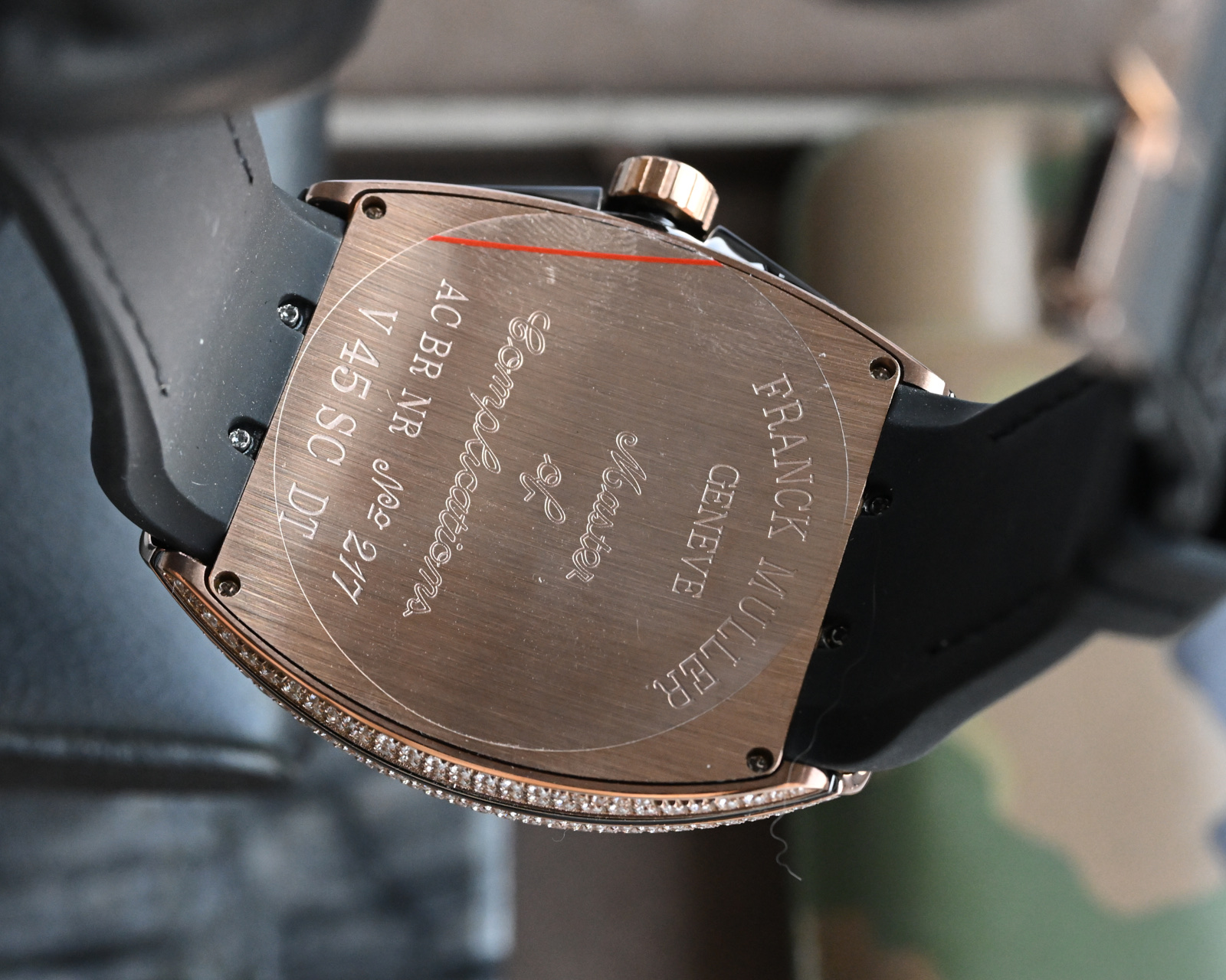 这款手表是AAAAA 1:1 质量 (非常棒). 使用了和原版一模一样的材料. 商标部分也保持了和Franck Mulle一样. 图片拍摄是实物手表拍摄, 您所收到的实物保证和我们图片一模一样.