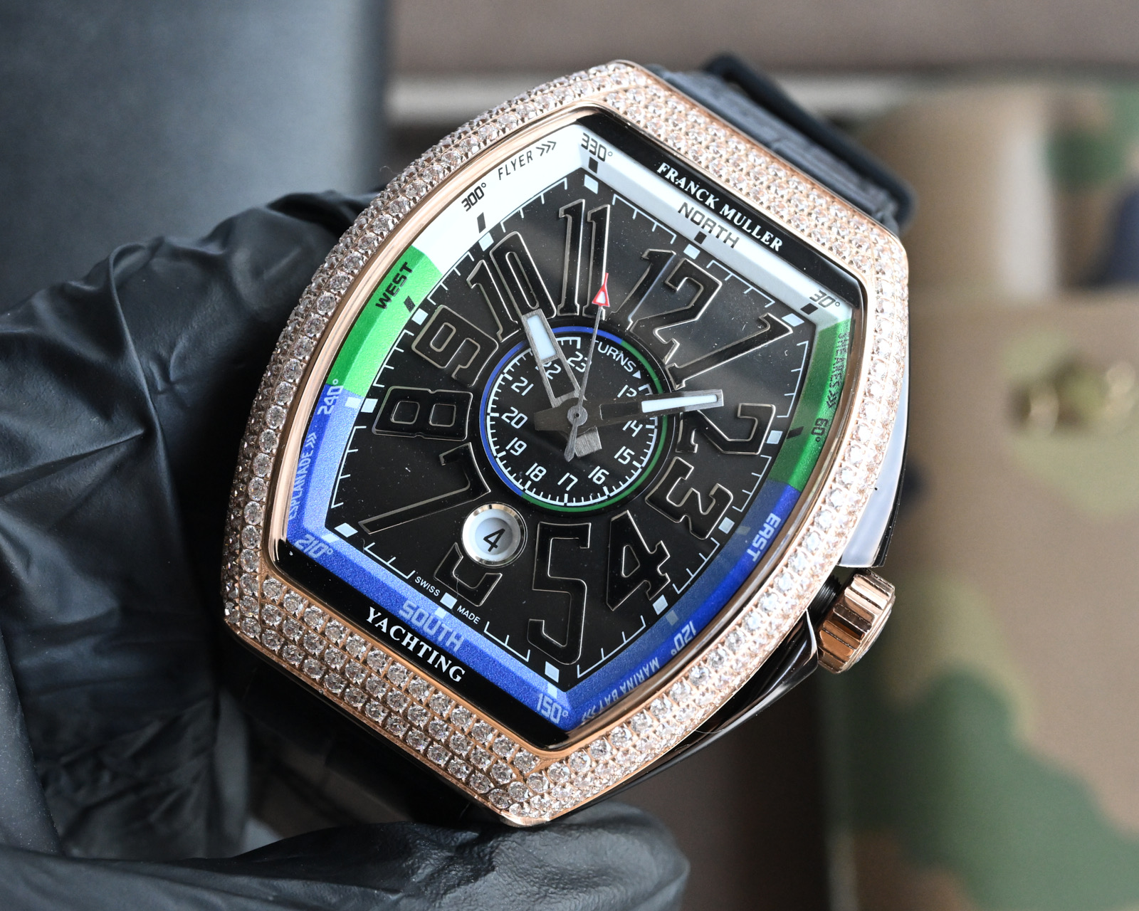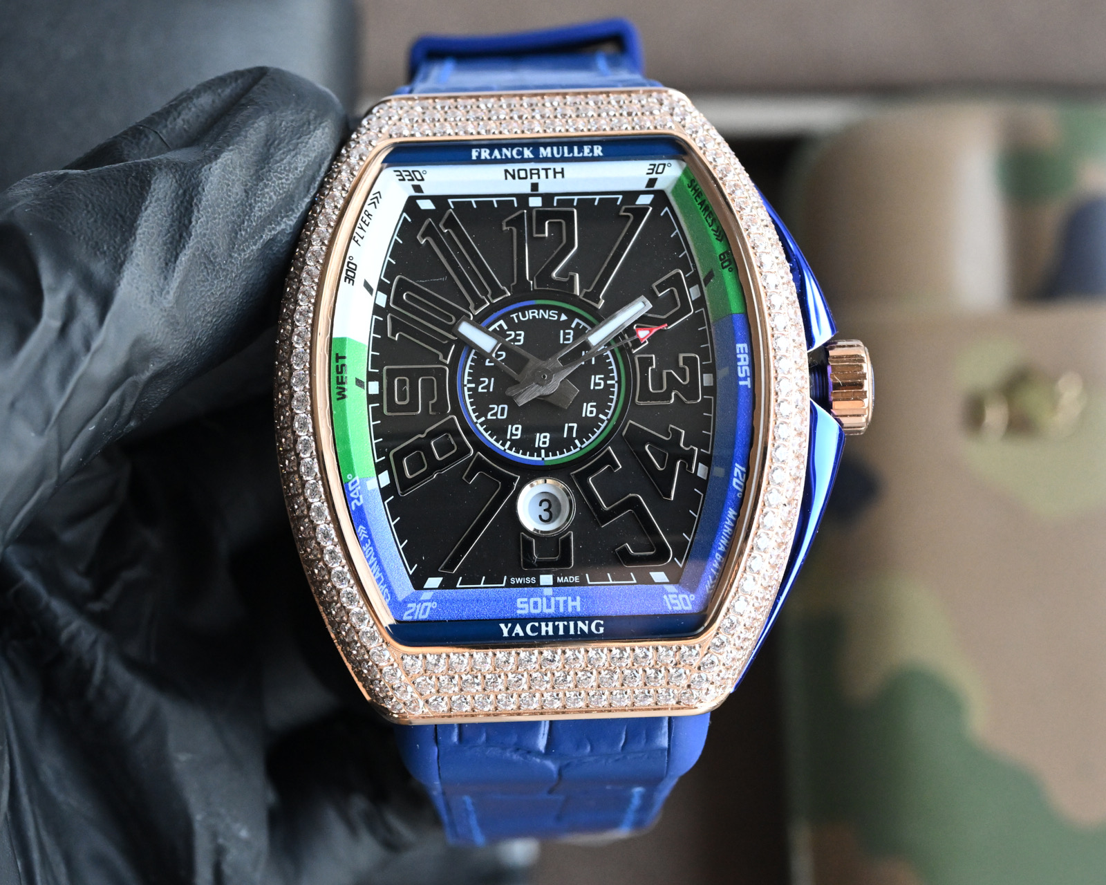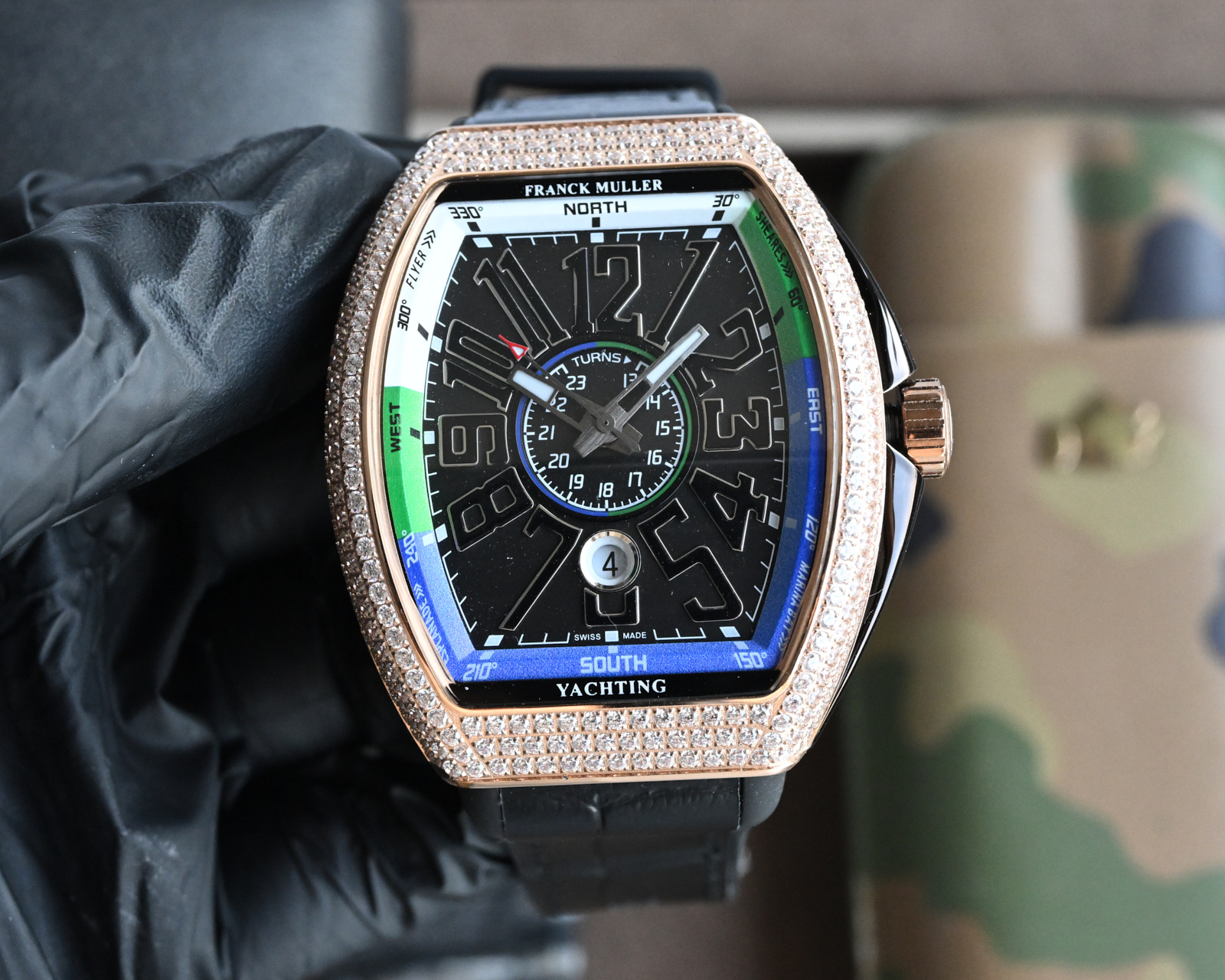 这款手表是AAAAA 1:1 质量 (非常棒). 使用了和原版一模一样的材料. 商标部分也保持了和Franck Mulle一样. 图片拍摄是实物手表拍摄, 您所收到的实物保证和我们图片一模一样.