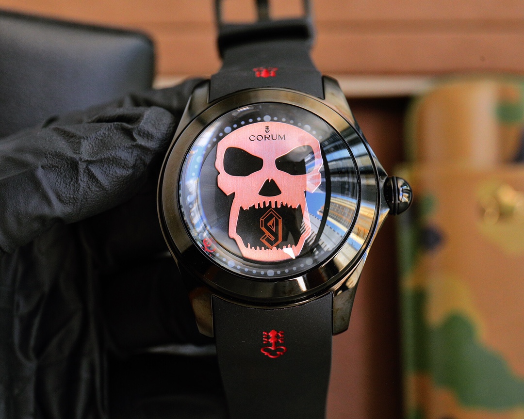 这款手表是AAAAA 1:1 质量 (非常棒). 使用了和原版一模一样的材料. 商标部分也保持了和Corum一样. 图片拍摄是实物手表拍摄, 您所收到的实物保证和我们图片一模一样.